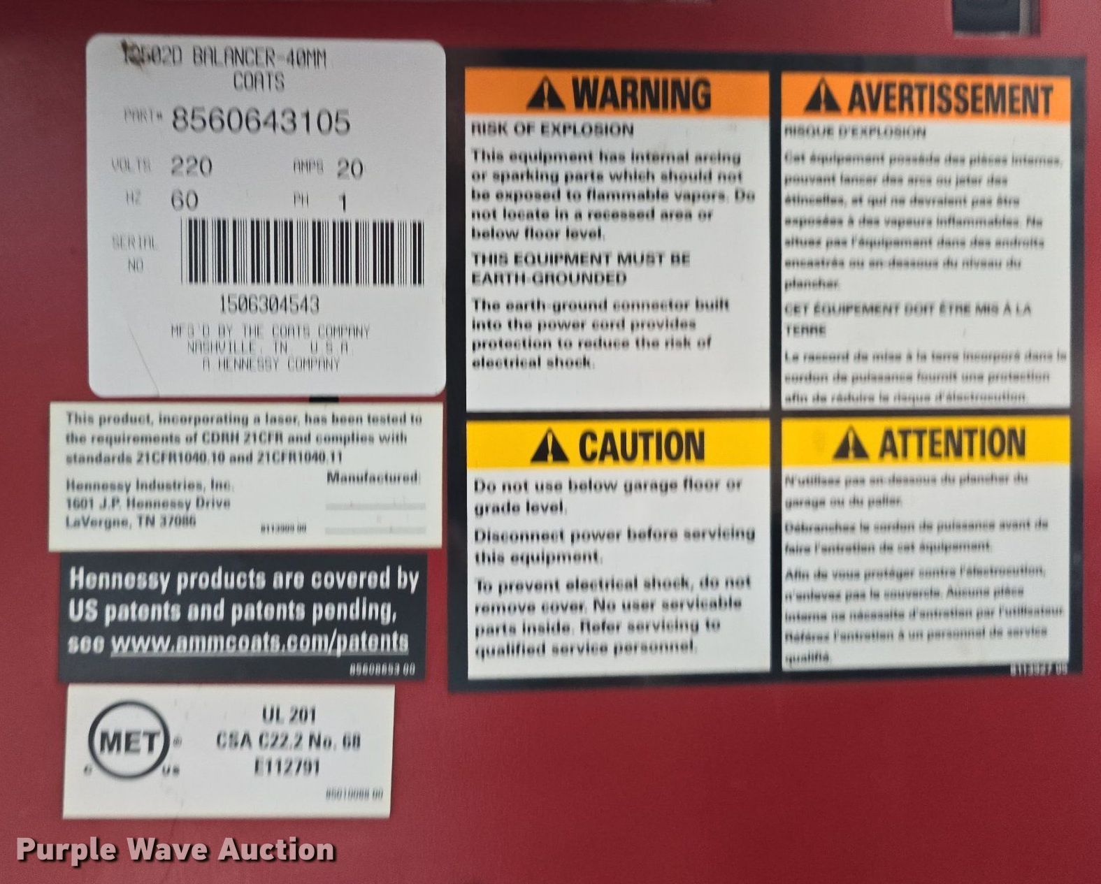 Purple Wave is selling a used Tools in Nebraska. This item is a Coats 1250 Direct Drive tire balancer with the following: Serial: 1506304543