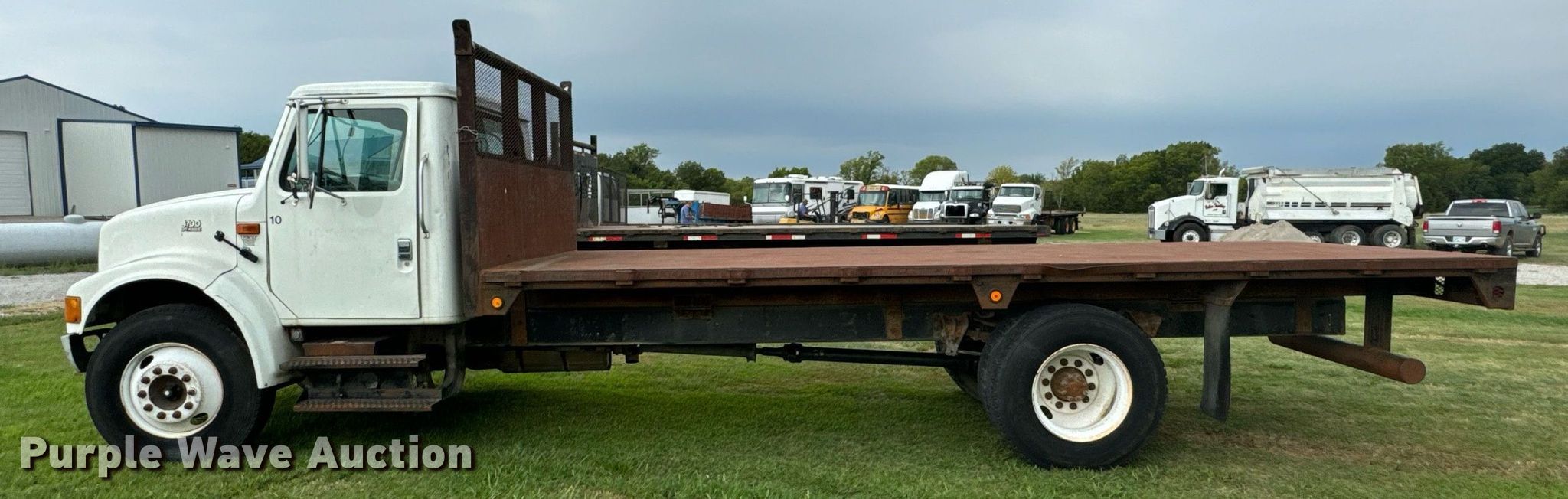 Purple Wave is selling a used Flat Bed Truck in Oklahoma. This item is a 2001 International 4700 flatbed truck with the following: Miles: 65,164 on odometer, Hours: 2,869 on meter, VIN: 1HTSCABM01H362485