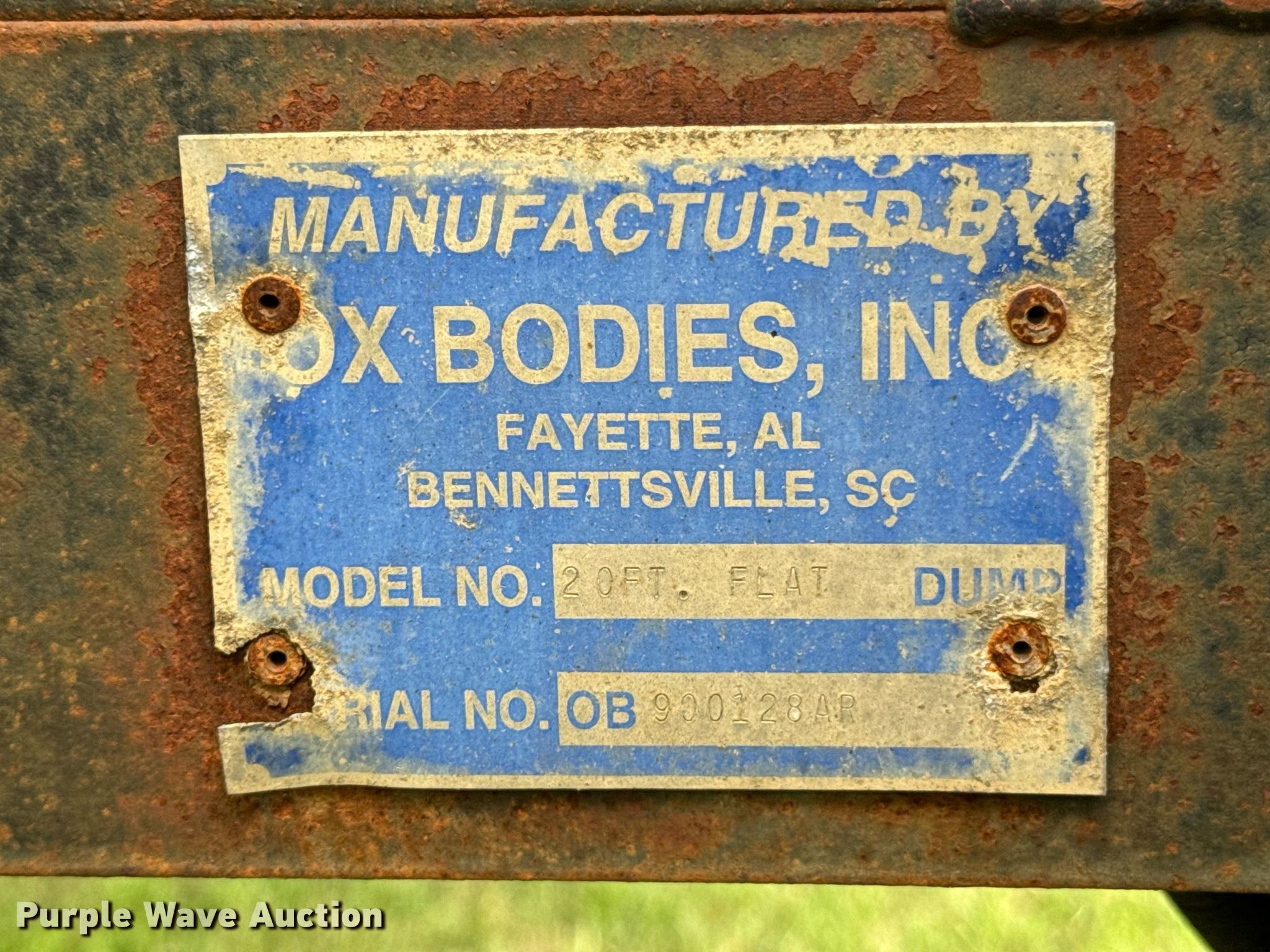 2001 International 4700 flatbed truck. Miles: 65,164 on odometer, Hours: 2,869 on meter, VIN: 1HTSCABM01H362485. Engine Displacement: 7.3L, Cylinders: 8, Fuel type: Diesel. Transmission International 6 Plus, Manual, Speed: 7. Chassis Axles: Single, Suspension: Spring, Brakes: Hydraulic, GVWR: 25,500 lbs, Wheelbase: 218". Interior AC, Heat, Cruise control. Features Flatbed Ox Bodies 20FT Flat, Serial: OB900128AR, 20' L x 96" W. Tires Size: 11R22.5. Notes Windshield chipped or cracked. Oklahoma title. Title distribution may be delayed up to 30 days from verification of funds. Talala, OK 74080