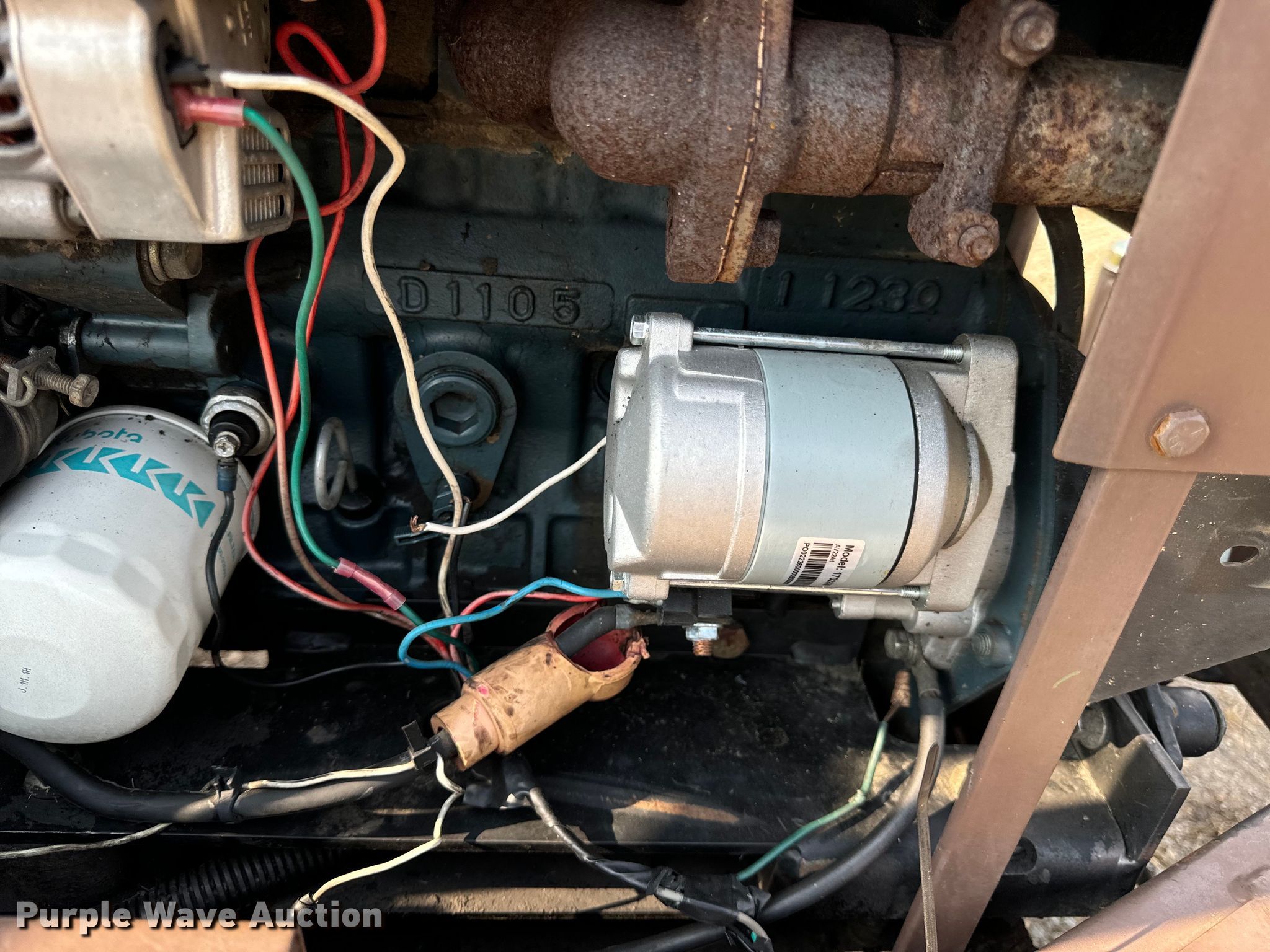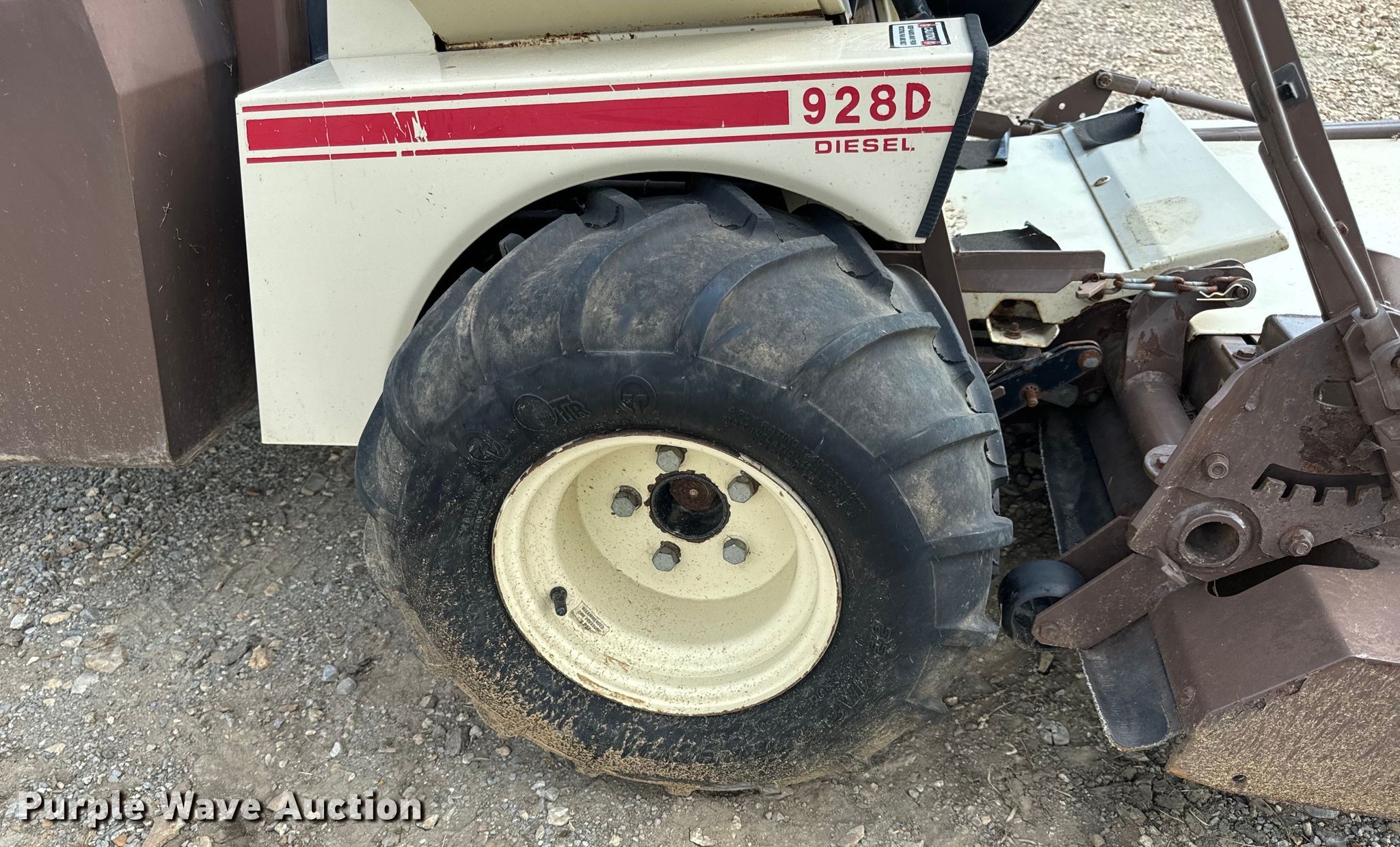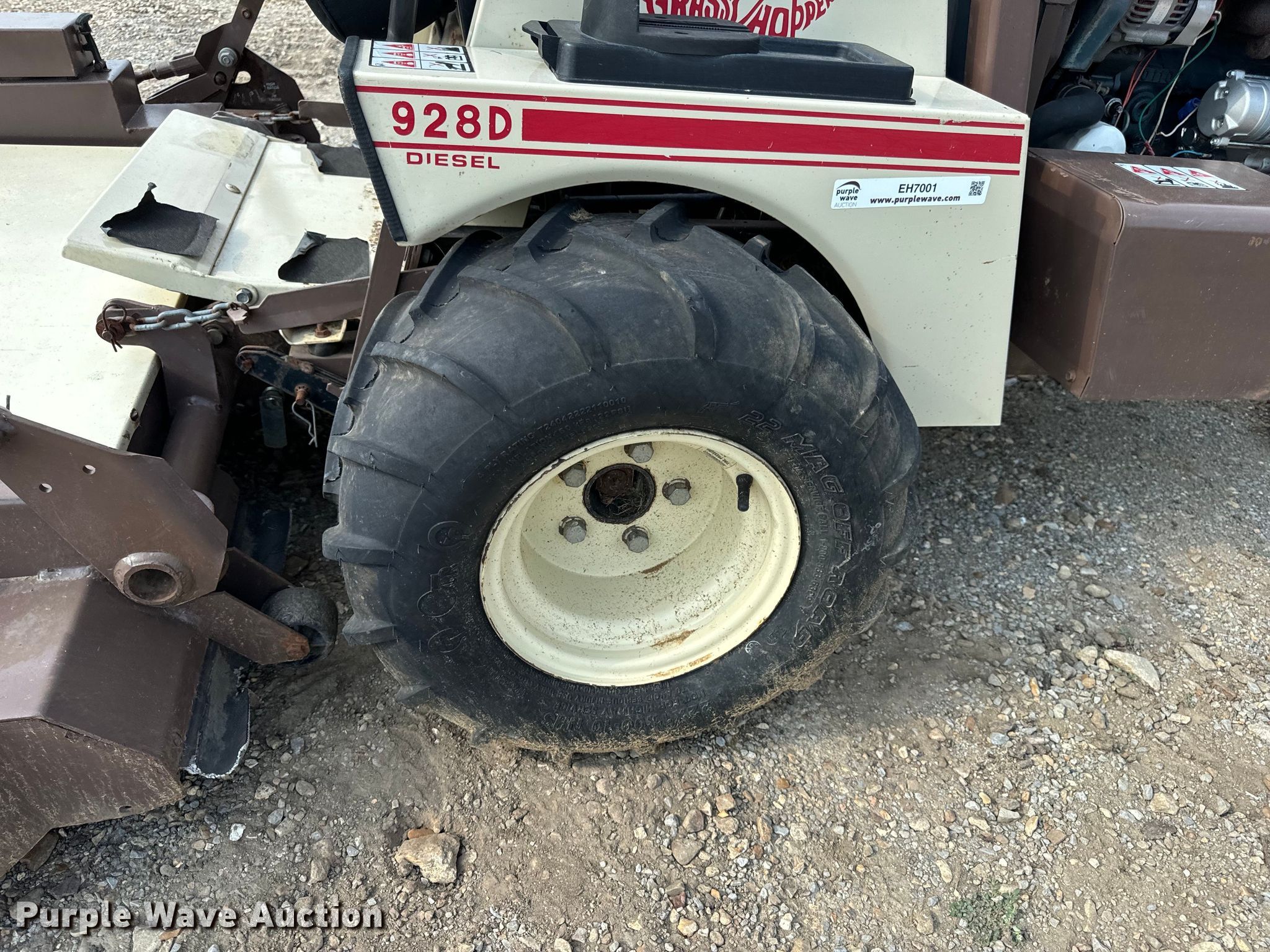 2002 Grasshopper 928D ZTR lawn mower. Hours: 1,238 on meter, Cutting width: 61", Serial: 5210234. Engine Kubota D1105, Serial: 1J7714, Cylinders: 3, Fuel type: Diesel. Transmission Hydrostatic. Operators station OROPS. Tires Front: 22X11.00-10, Rear: 13X6.50-6. Notes Engine issues, but cranks will not start , Non-operational unit. T&R Equipment. New Bloomfield, MO 65080