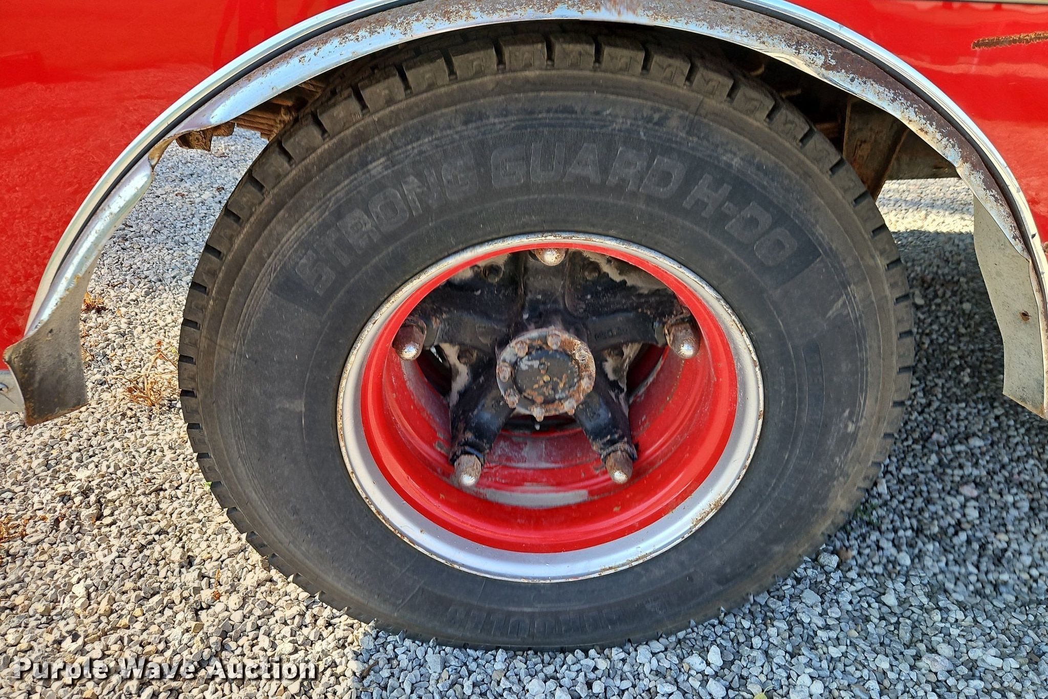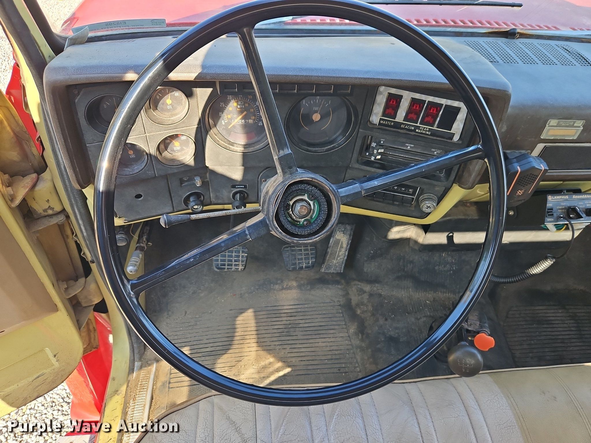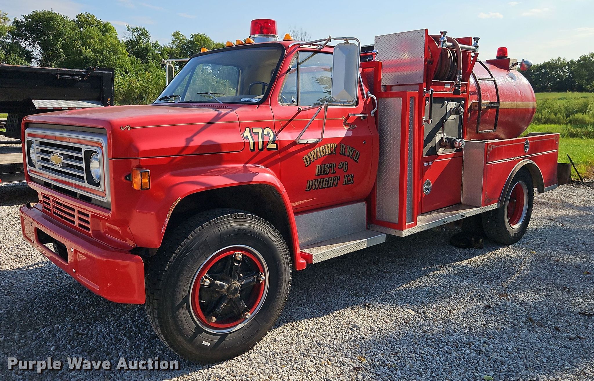 1982 GMC C7000 pumper fire truck. Miles: 15,068 on odometer, VIN: 1GDG7D1B5CV578163. Engine Displacement: 6.0L, Cylinders: 8, Fuel type: Gas. Transmission Manual, Speed: 5, plus 2. Chassis Axles: Single, Suspension: Spring, Brakes: Hydraulic, GVWR: 23,160 lbs. Interior Heat, Auxiliary controls. Features Fire truck body Tank Capacity: 1,000 gallons, Pump. Tires Size: 10R22.5. Kansas title. Title distribution may be delayed up to 14 days from verification of funds. La Cygne, KS 66040