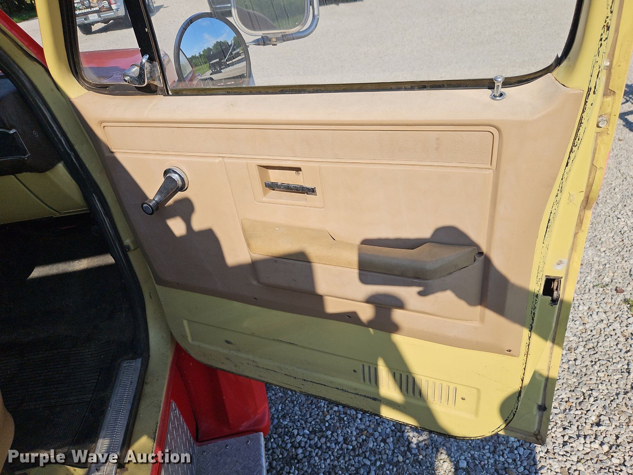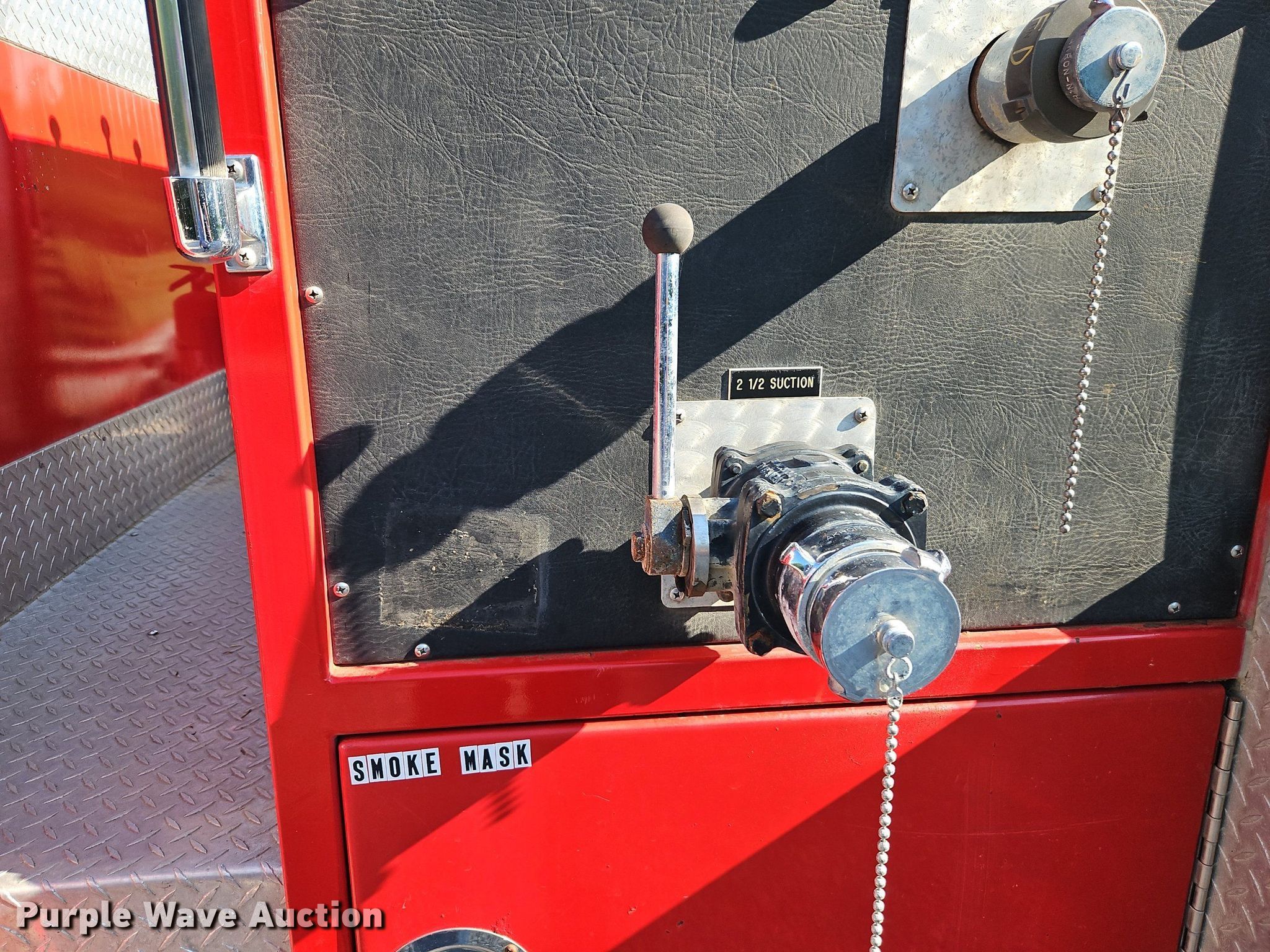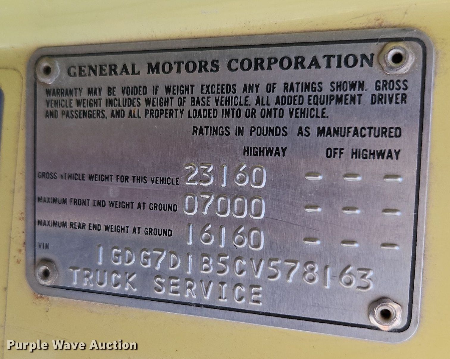 1982 GMC C7000 pumper fire truck. Miles: 15,068 on odometer, VIN: 1GDG7D1B5CV578163. Engine Displacement: 6.0L, Cylinders: 8, Fuel type: Gas. Transmission Manual, Speed: 5, plus 2. Chassis Axles: Single, Suspension: Spring, Brakes: Hydraulic, GVWR: 23,160 lbs. Interior Heat, Auxiliary controls. Features Fire truck body Tank Capacity: 1,000 gallons, Pump. Tires Size: 10R22.5. Kansas title. Title distribution may be delayed up to 14 days from verification of funds. La Cygne, KS 66040