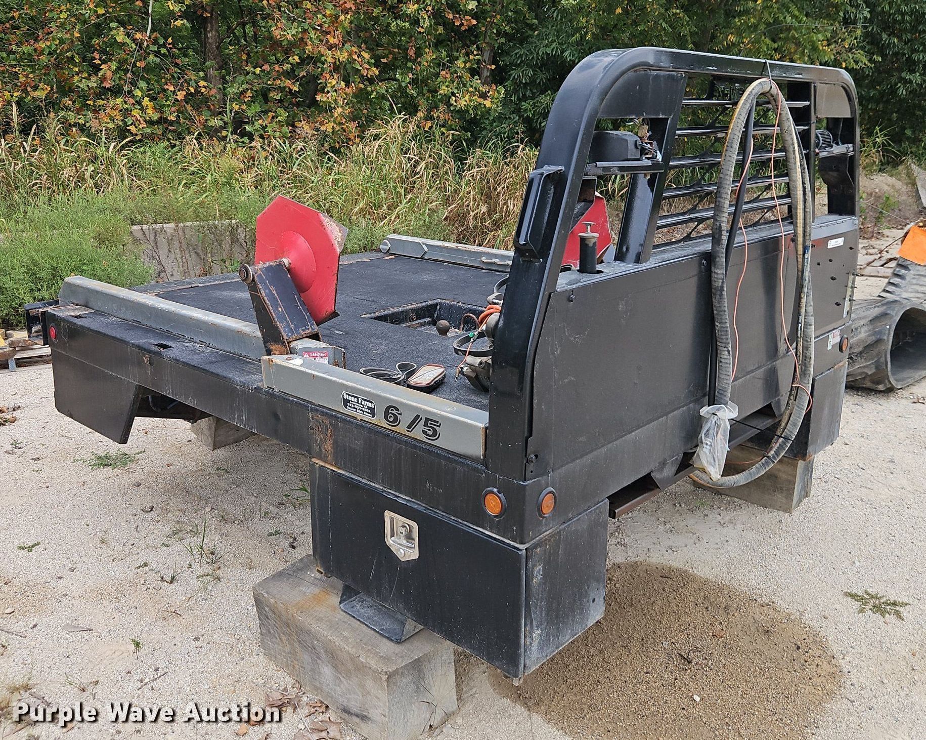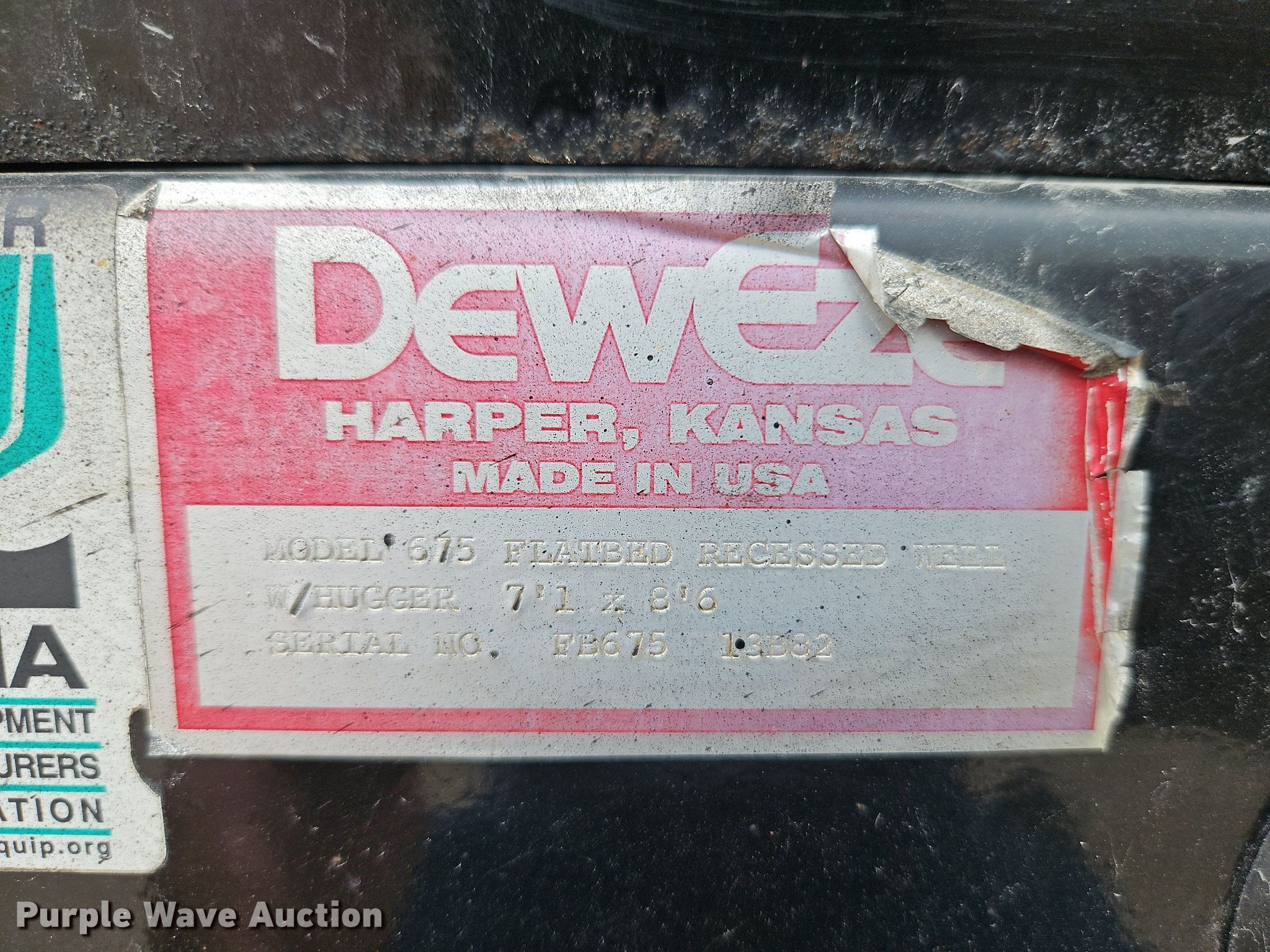 Purple Wave is selling a used Automotive Parts or Acces. in Kansas. This item is a DewEze 675 bale bed with the following: 8' 6" L x 86" W, Serial: FB675 13B82, Hitch: Gooseneck, Pump, Additional belts, Remote included