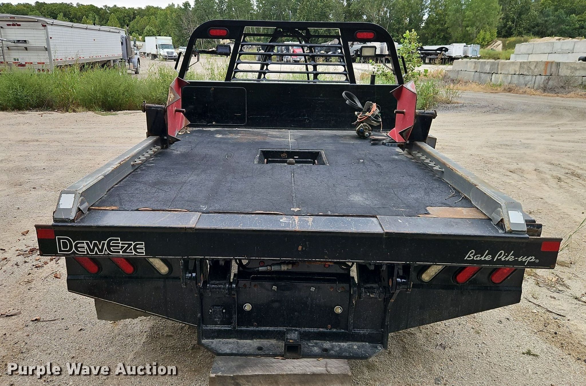 DewEze 675 bale bed. 8' 6" L x 86" W, Serial: FB675 13B82, Hitch: Gooseneck, Pump, Additional belts, Remote included. Bucyrus, KS 66013