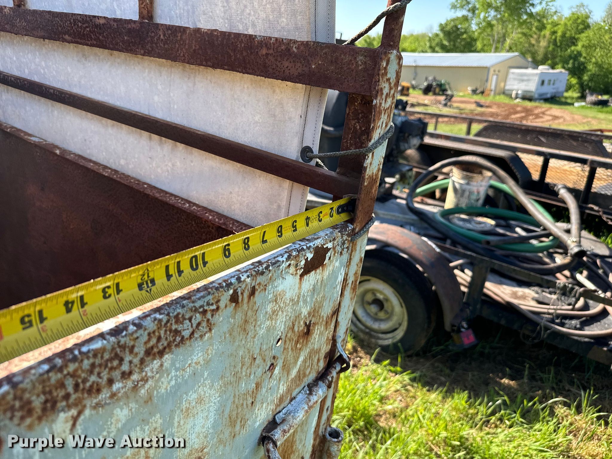 Purple Wave is selling a used Livestock Trailer in Oklahoma. This item is a Shop built livestock trailer with the following: Overall: 10' 6" L x 66" W, Body: 8' 6" L x 29" W