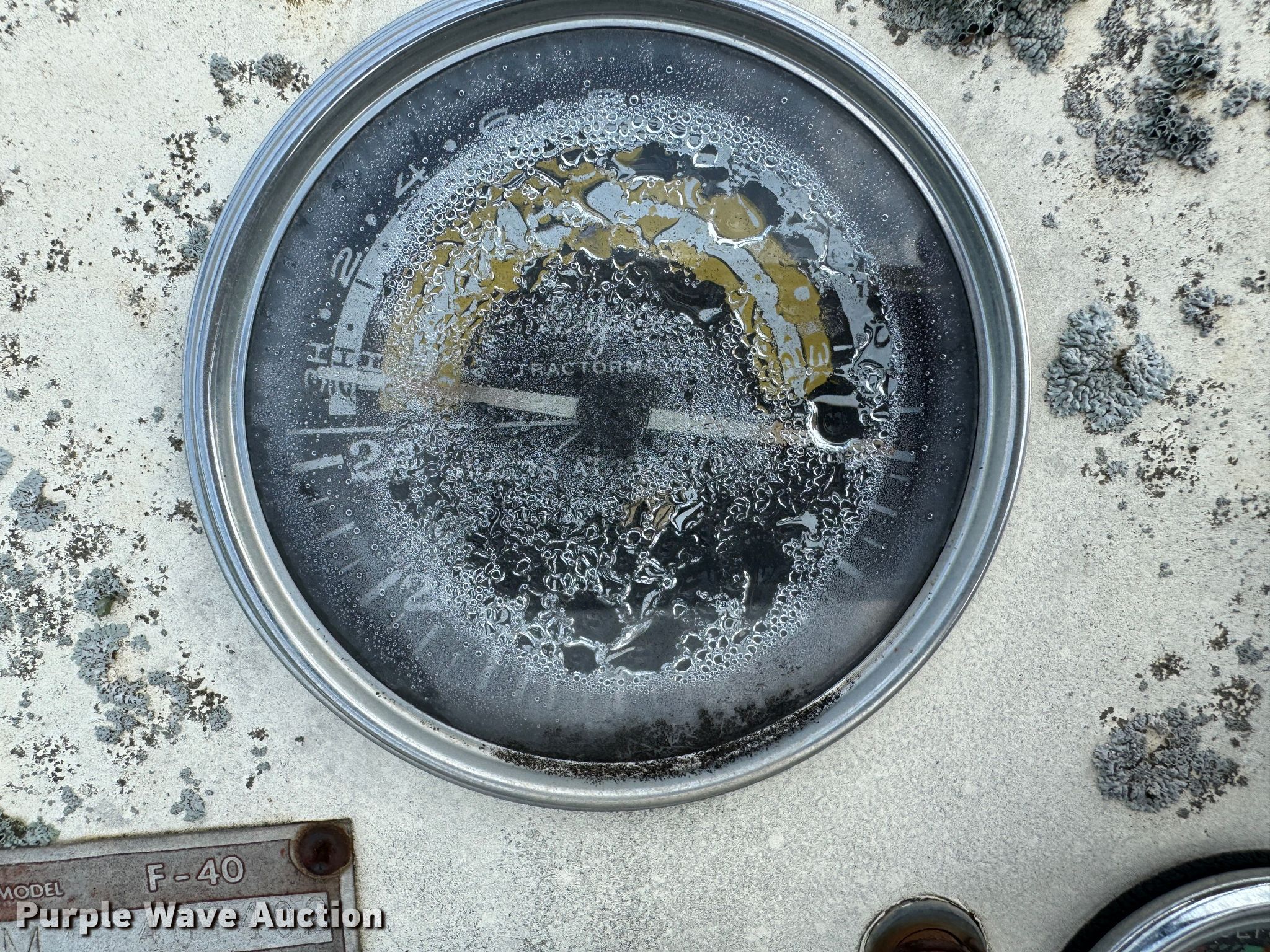 Massey Ferguson 40 tractor. Hours: Unknown. Engine Cylinders: 4, Fuel type: Gas. Transmission Manual, 6F - 1R. Features PTO: 540, Three point. Tires Rear: 12.4-28. Notes Non-operational unit. Ray's Lawn Maintenance. Ardmore, OK 73401