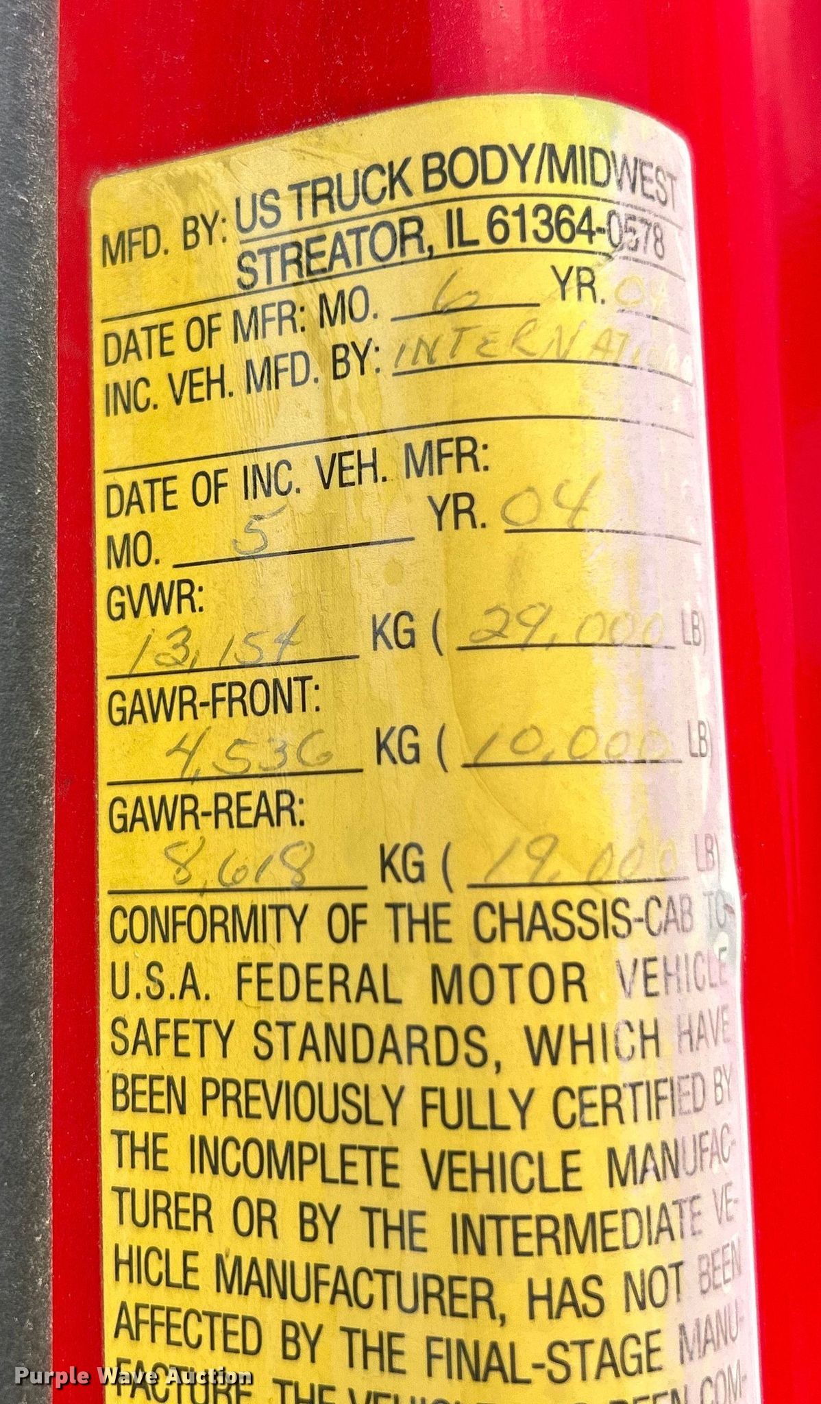 2005 International 4300 box truck. Miles: 94,202 on odometer, Hours: 5,794 on meter, VIN: 1HTMMAAP55H106530. Engine International, Displacement: 7.6L, Cylinders: 6, Fuel type: Diesel. Transmission Automatic. Chassis Axles: Single, Suspension: Spring, Brakes: Hydraulic, GVWR: 29,000 lbs. Interior AC, Heat, Cruise control. Features Box bed US Truck Body, 24' L x 90" W x 98" H, Floor: Wood, Slider ramp Width: 24".. Tires Size: 295/75R22.5. Illinois title. Seller is a licensed motor vehicle dealer. The buyer may be required to pay sales tax and/or registration fees to the dealer prior to taking possession. Title will be assigned and distributed by the dealer. Please contact the seller for distribution questions. Title distribution may be delayed up to 30 days from verification of funds. Northpoint Enterprises, LLC. Troy, MO 63379