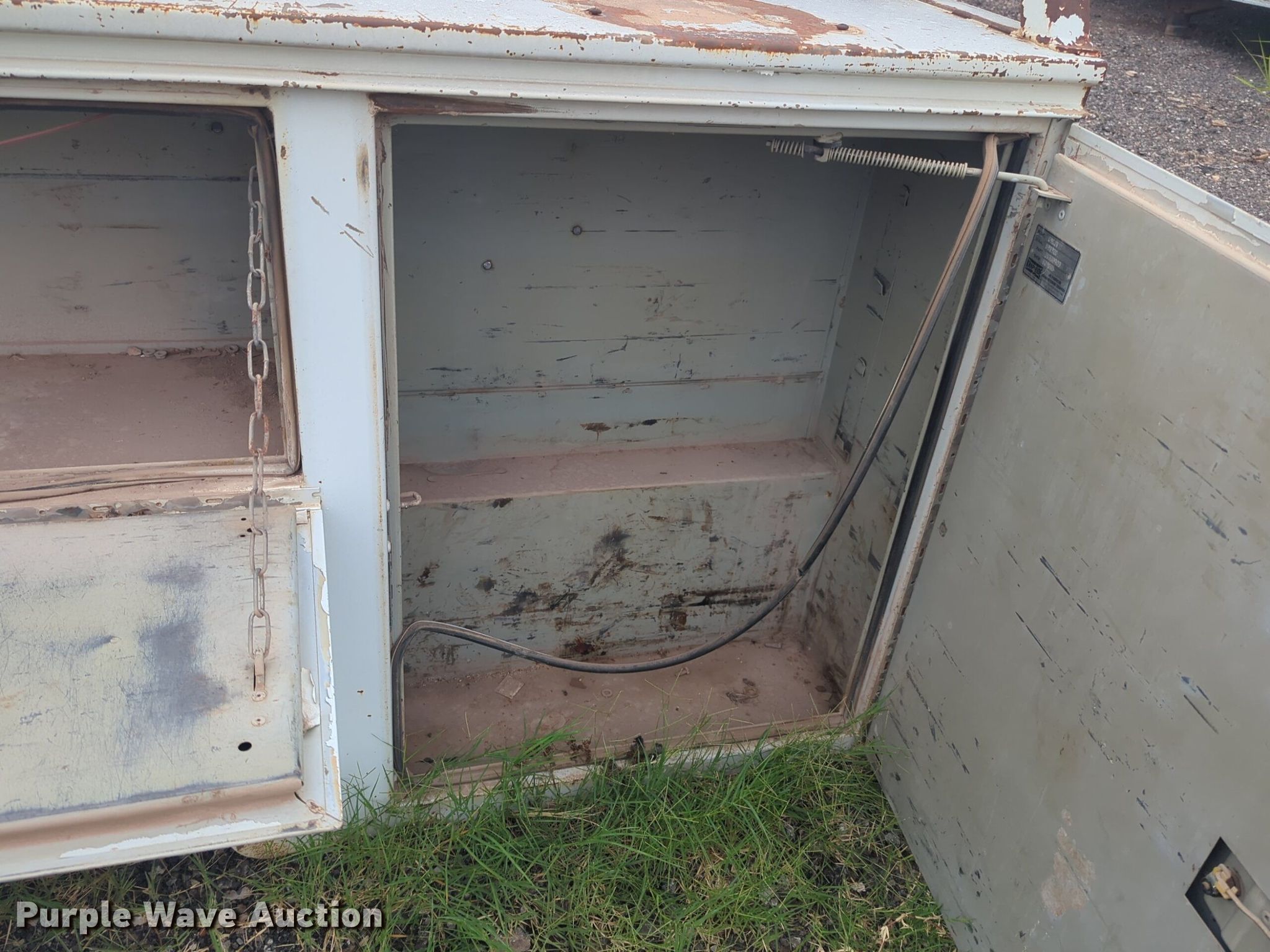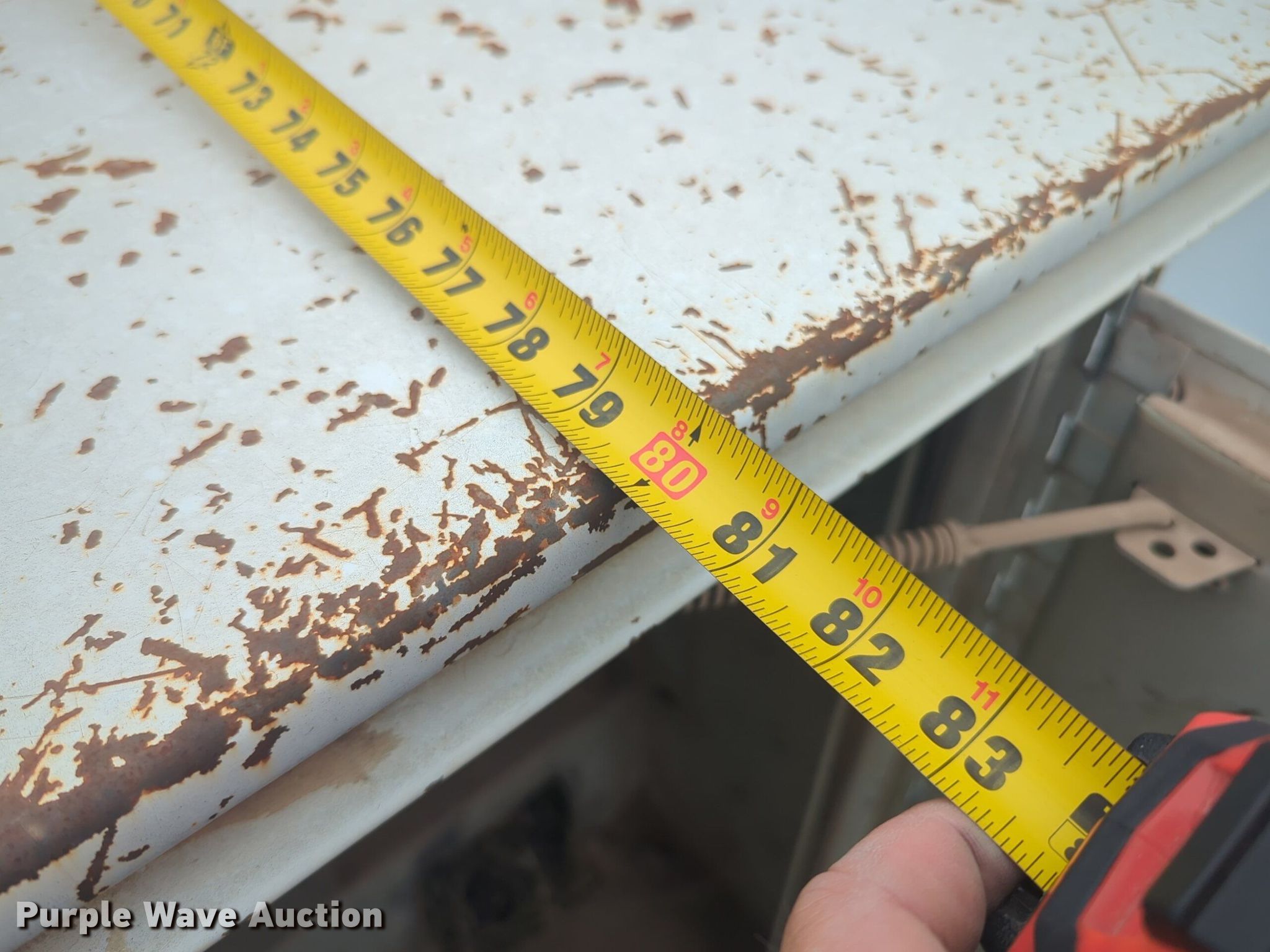 Knapheide 696J1 utility bed. Serial: 891920, 9' L x 80' W. Notes Right front door issues, will not shut, Contents not included. Rudy Construction Co.. 3101 NE 63rd St. Oklahoma City, OK 73121
