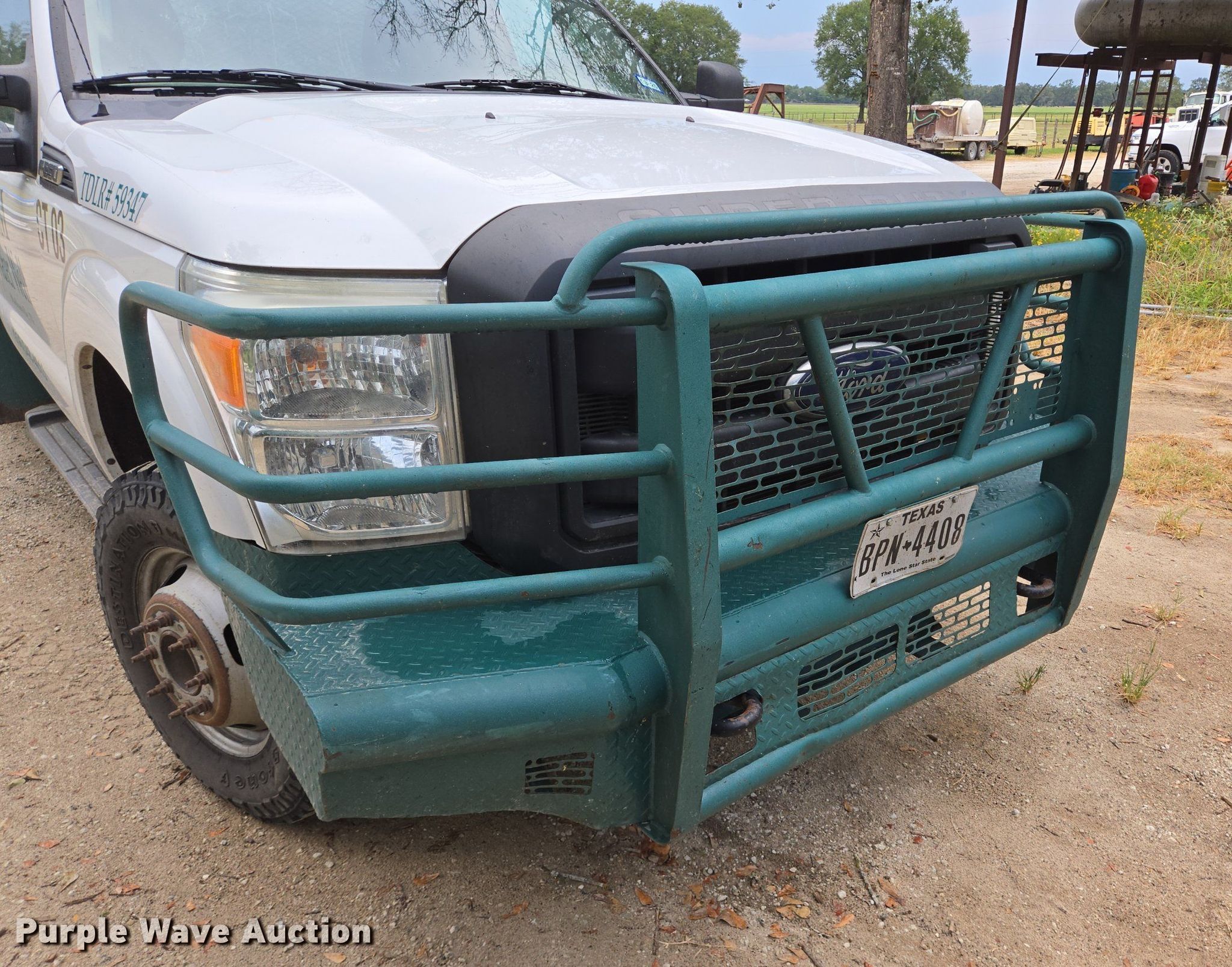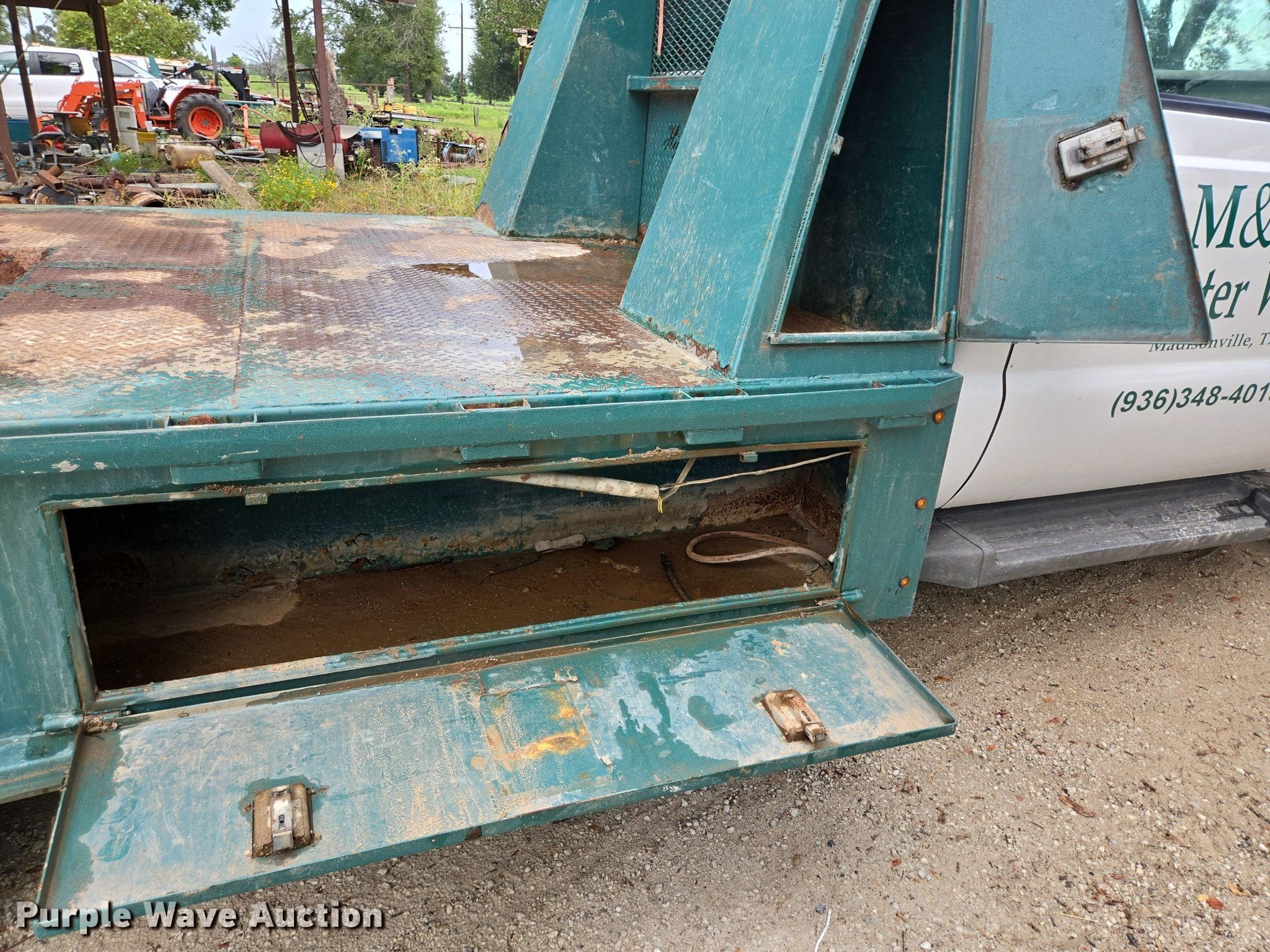 2012 Ford F350 Super Duty XL flatbed pickup truck. Miles: 214,175 on odometer, VIN: 1FDRF3H61CED16218, Unit #: CT03. Engine Displacement: 6.2L V8 OHV, Cylinders: 8, Fuel type: Gas. Transmission Automatic, Four wheel drive. Interior AC, Heat, Power windows, Power locks, Cruise control. Features Flatbed 10' 10" L x 86" W, Hitch: Gooseneck. Tires Size: LT245/75R17. Notes Dash warning indicator: Check engine. Texas title. M&M Water Well. Madisonville, TX 77864
