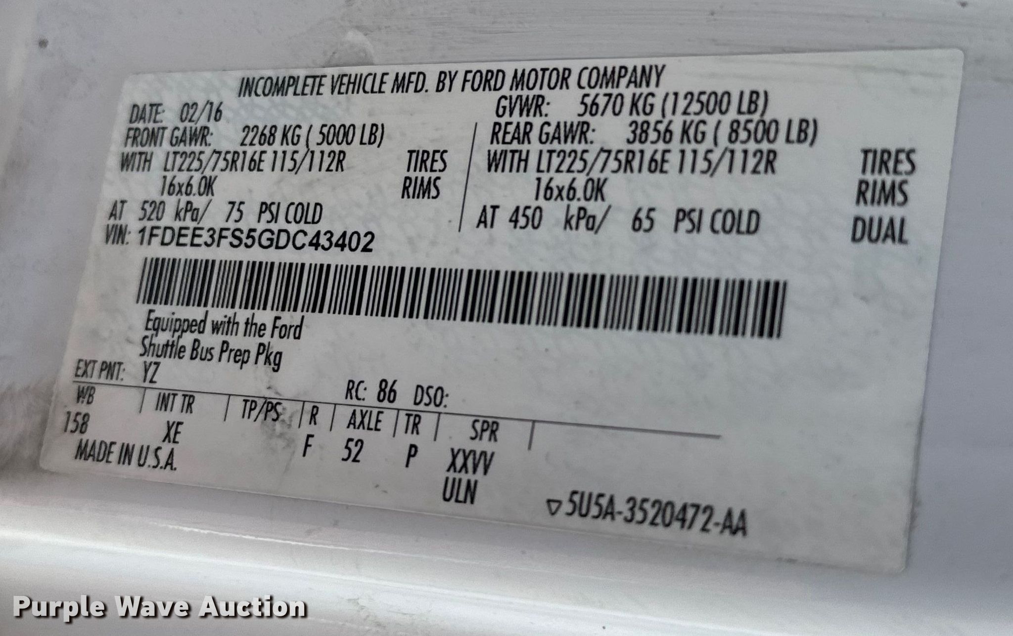 - VIN: 1FDEE3FS5GDC43402