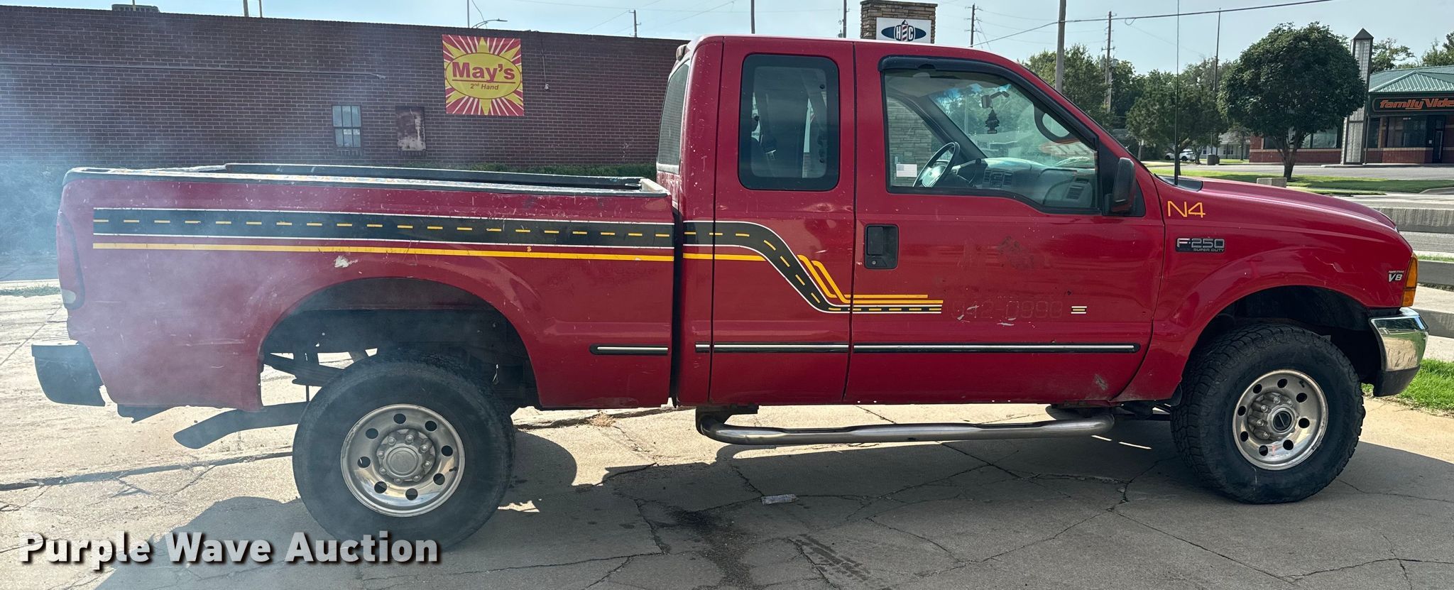 This 1999 Ford F250 Super Duty XLT SuperCab pickup truck will sell to the highest bidder regardless of price.