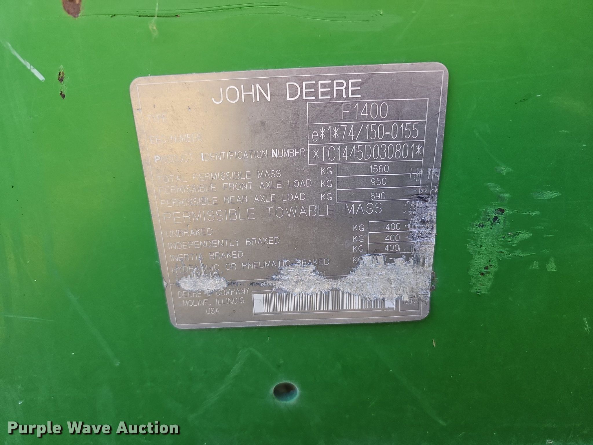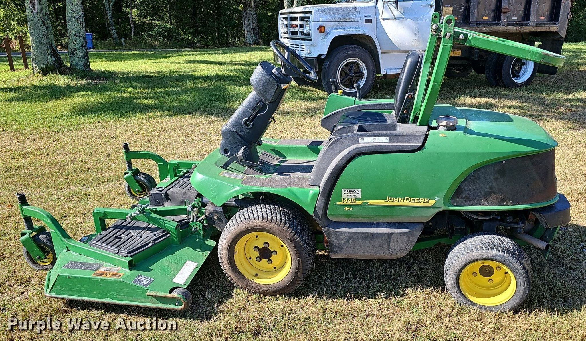 Purple Wave is selling a used Commercial Turf Mower in Missouri. This item is a 2003 John Deere 1445 lawn mower with the following: Hours: 2,516 on meter, Serial: TC1445D030801