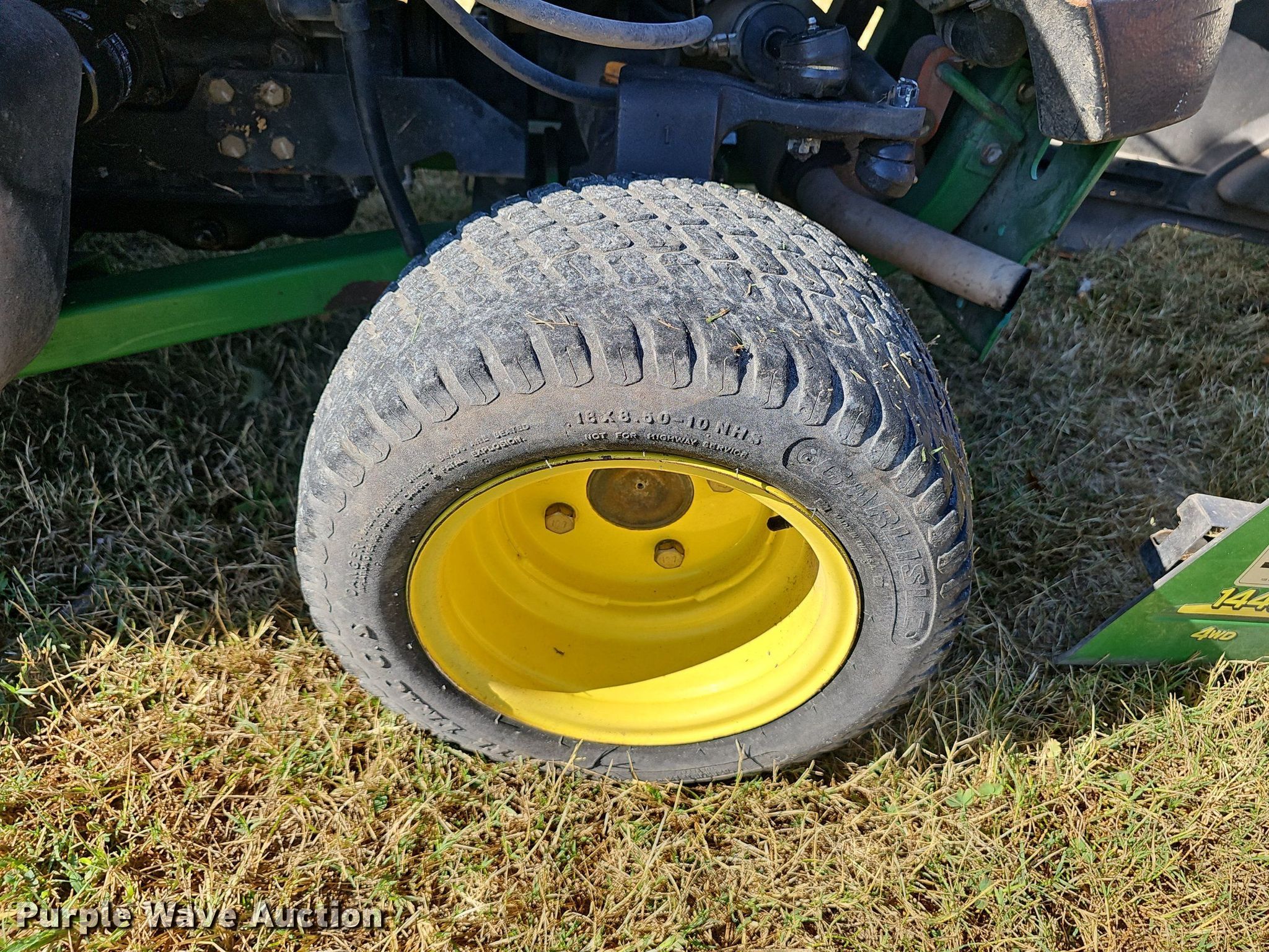 2003 John Deere 1445 lawn mower. Hours: 2,516 on meter, Serial: TC1445D030801. Engine John Deere, Cylinders: 3, Fuel type: Diesel. Transmission Hydrostatic. Chassis Four wheel drive, PTO. Operators station OROPS. Features Self- propelled, Mower deck Width: 72", John Deere, Hydraulic front deck lift. Tires Front: 23x10.50-12, Rear: 18x8.50x10. 2362 Ance Creek Road. Reeds Spring, MO 65737