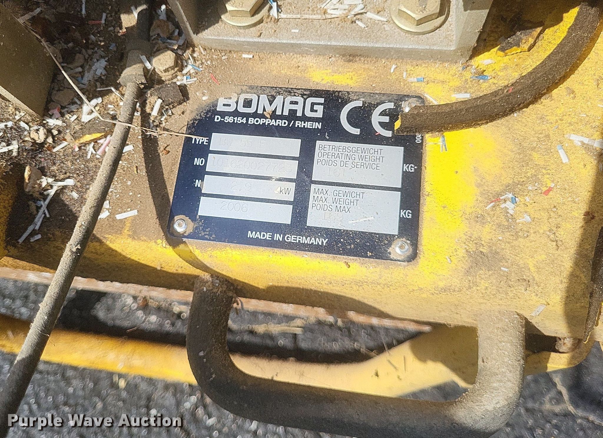 Purple Wave is selling a used Walk Behind Compactor in Missouri. This item is a 2006 Bomag BW 55 E single drum vibratory roller with the following: Hours: Unknown, Serial: 101320027723