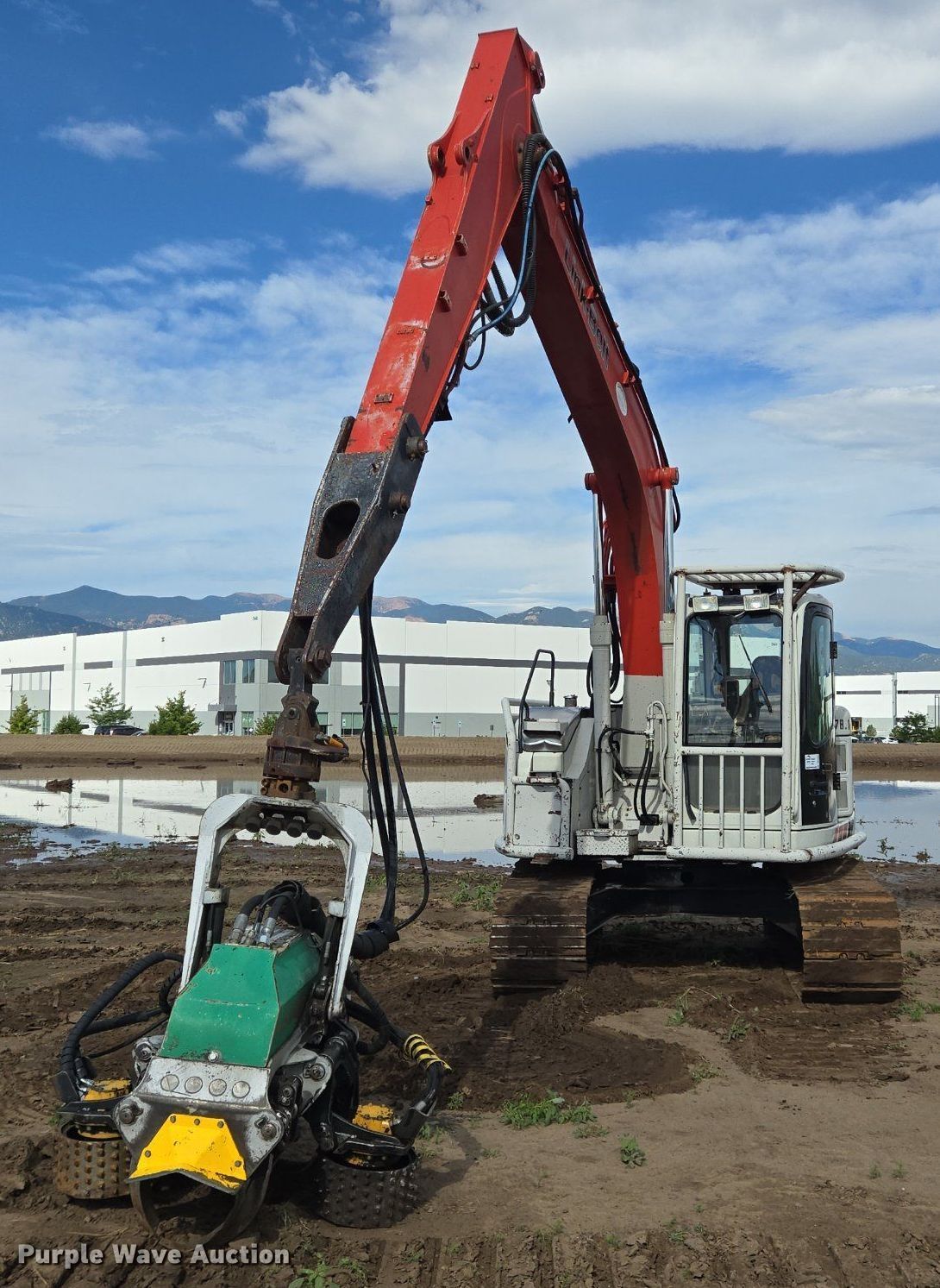 2006 Link Belt 135 excavator. Hours: 5,228 on meter, Serial: EBAJ0-1119. Engine Isuzu, Serial: BB-4BG1TRA-03, Cylinders: 4, Fuel type: Diesel. Transmission Hydrostatic, Two speed travel. Operators station Enclosed cab. Features Auxiliary hydraulics Two-way, Boom Standard, Stick Stick length: 114", Kesla 25RH log harvesting head. Tracks Width: 24", Steel, Grouser pads: Triple. Seedmasters Inc.. Colorado Springs, CO 80916