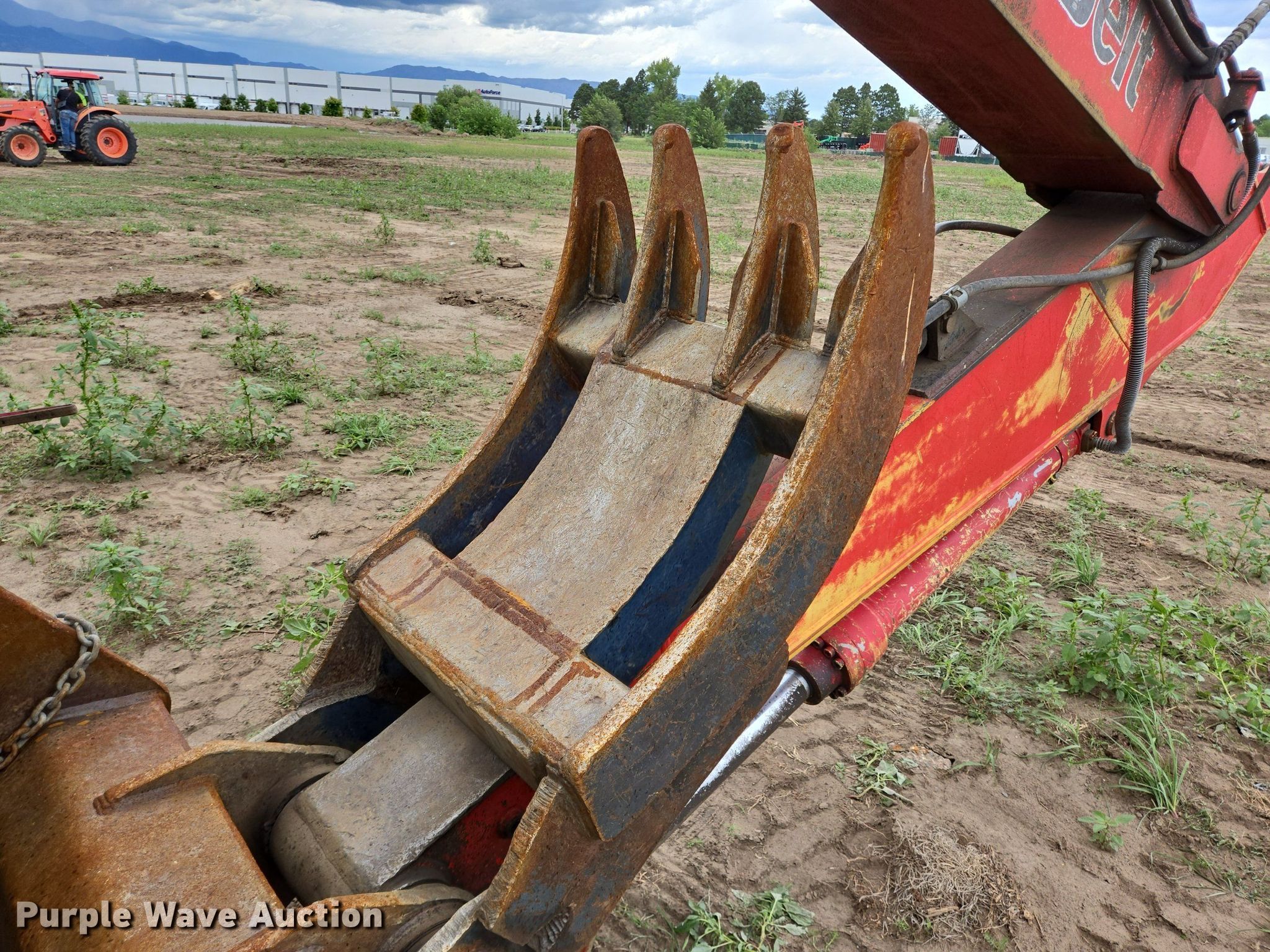 1995 Link-Belt 3400 Quantum excavator. Hours: Unknown, Serial: E7I52793. Engine Isuzu, Cylinders: 6, Fuel type: Diesel. Transmission Hydrostatic. Operators station Enclosed cab. Features Counter weights, Boom Standard, Stick Stick length: 10', Thumb: Hydraulic, Bucket Esco, Width: 42", Teeth: 5. Tracks Width: 31.5", Steel, Grouser pads: Triple. Notes Fire damage, Non-operational unit. Seedmasters Inc.. Colorado Springs, CO 80916