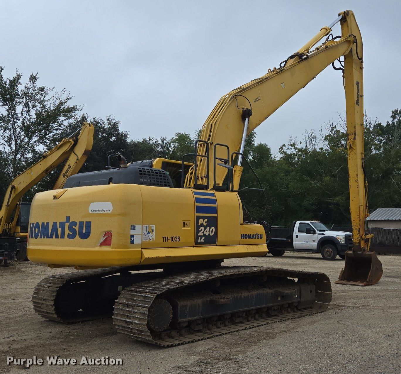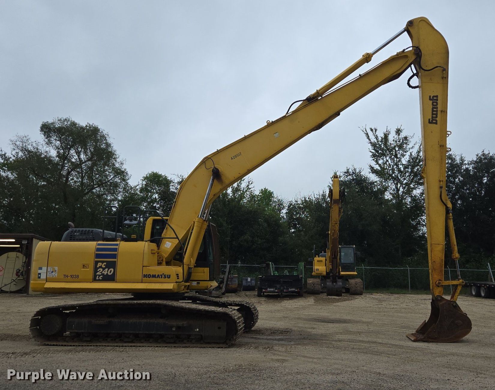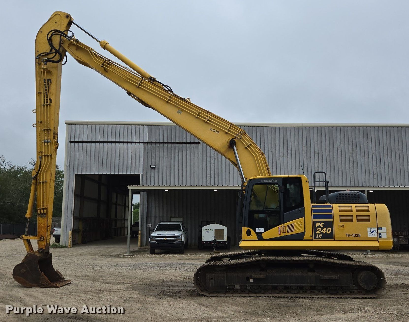 Purple Wave is selling a used Hydraulic Excavator in Texas. This item is a 2015 Komatsu PC240LC-10 long reach excavator with the following: Hours: 7,930 on meter, Serial: A20517, Unit #: TH-1038