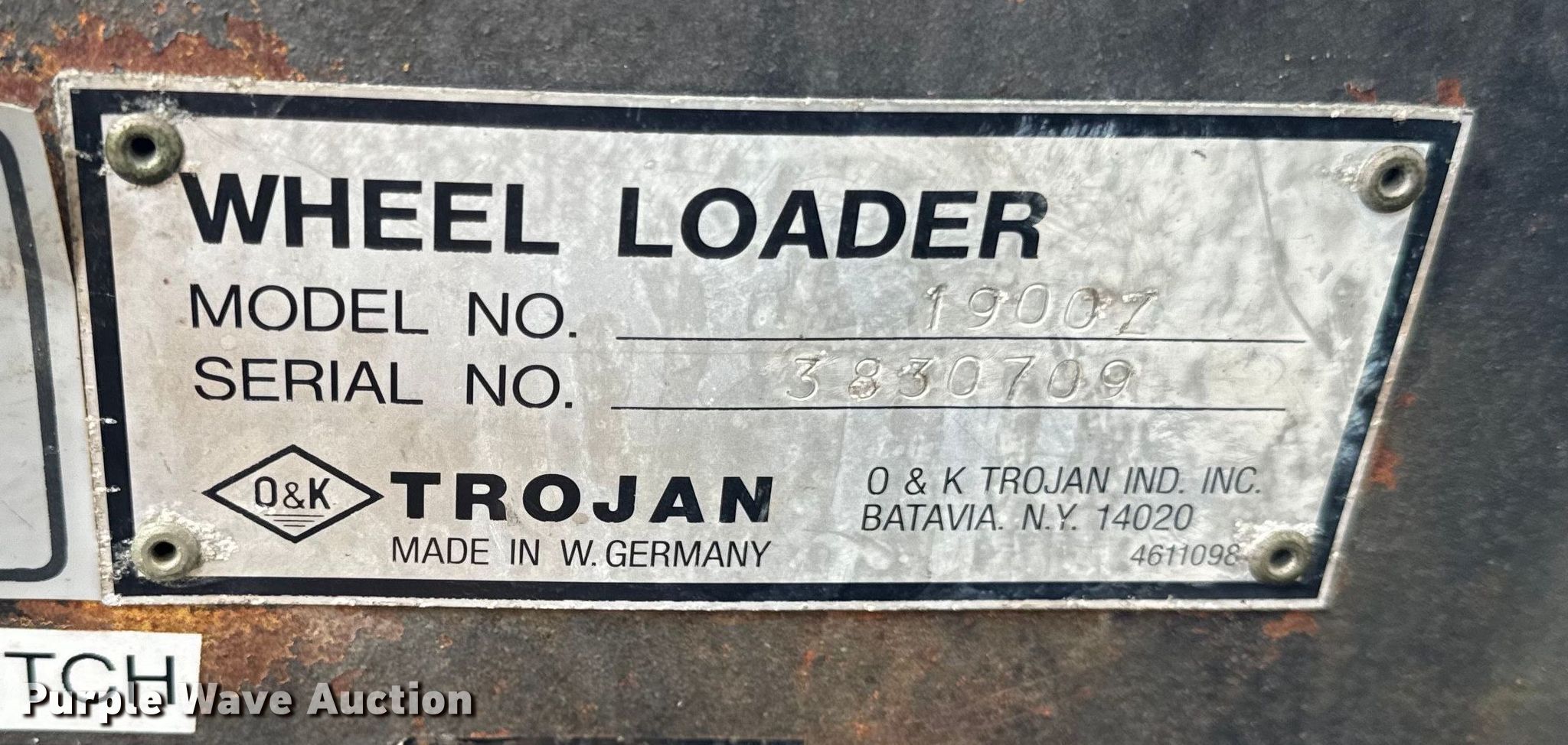 Purple Wave is selling a used Wheel Loader in Illinois. This item is a 1987 Trojan 1900Z wheel loader with the following: Hours: 5,730 on meter, Serial: 3830709, Unit #: T117