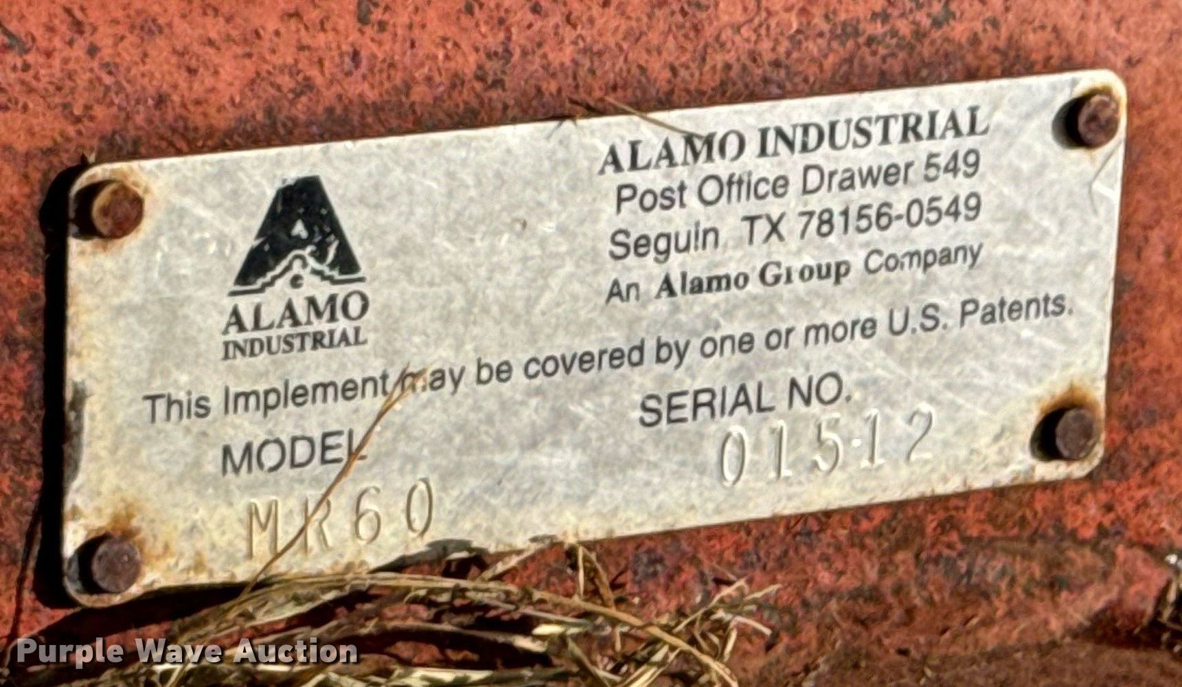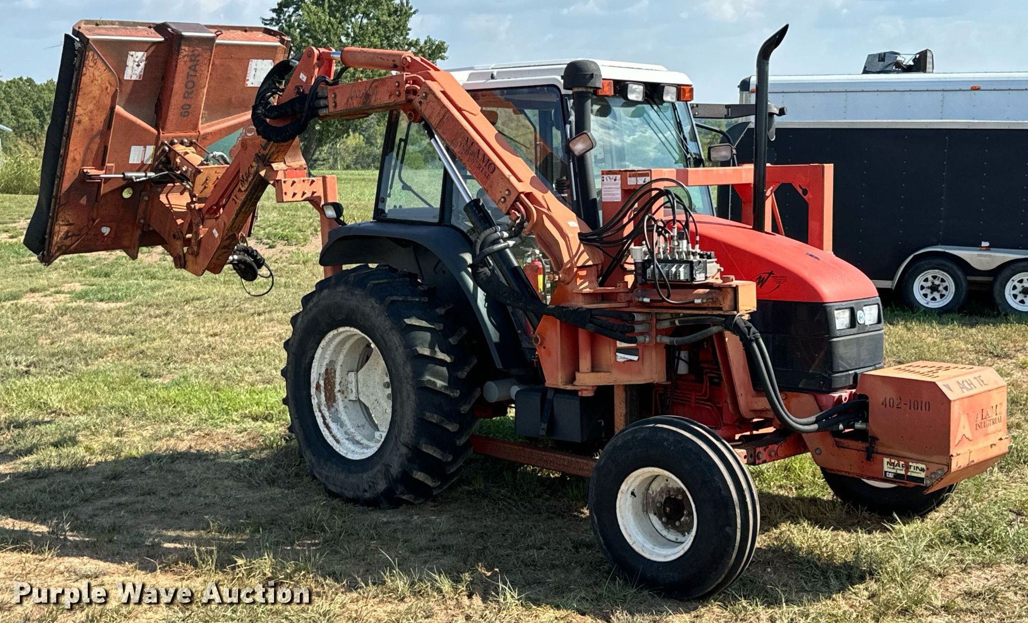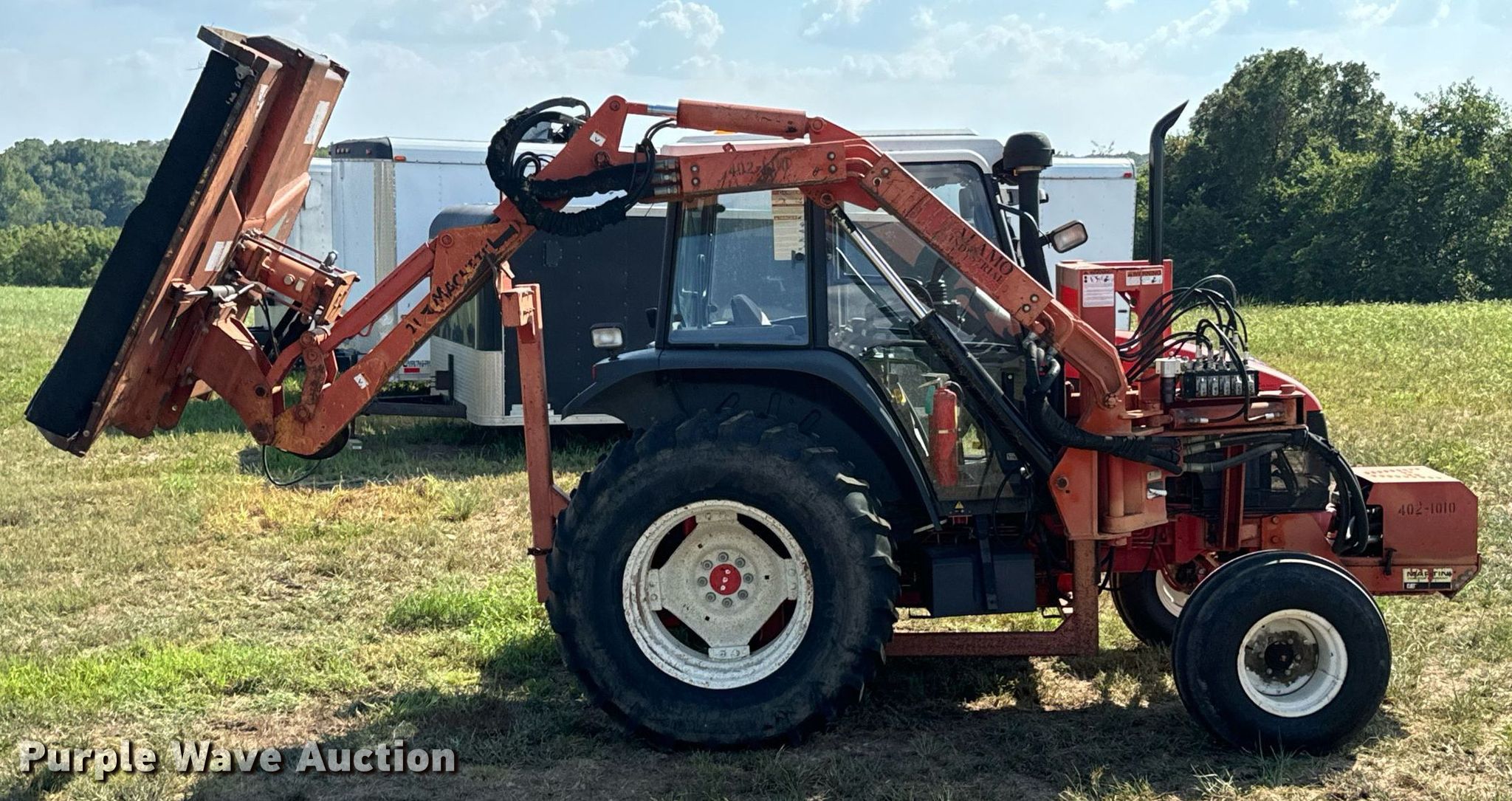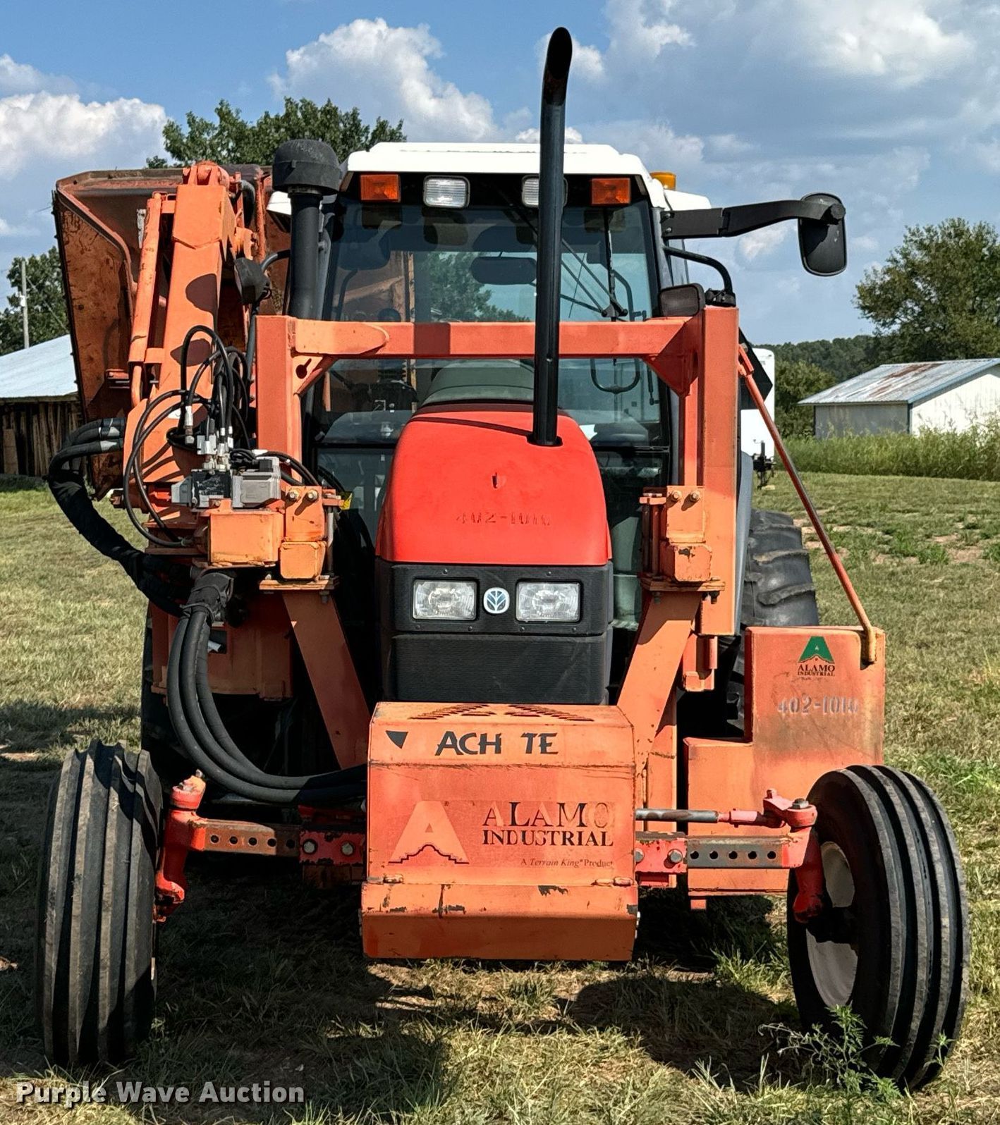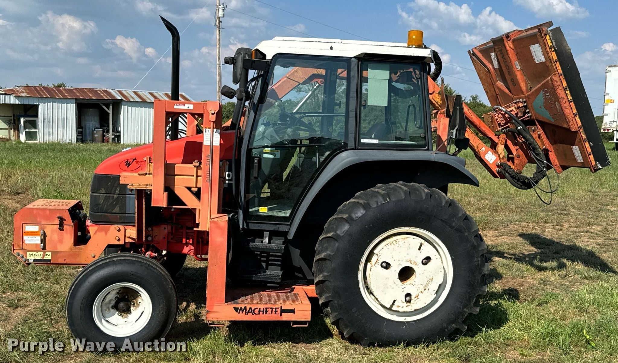 2001 New Holland TS100 tractor. Hours: 3,295 on meter, Miles or hours may vary, unit still in use, Serial: 155887B. Engine Cylinders: 4, Fuel type: Diesel. Transmission Dual power, 12F - 12R, Differential lock. Operators station AC, Heat. Features Seven pin outlet, Hydraulic remote sets Rear: 4, Alamo MR60 side boom mower Width: 66". Tires Front: 10.00-16, Rear: 18.4-30, Wheel weights: 1. OMNI Land Management LLC. Neosho, MO 64850