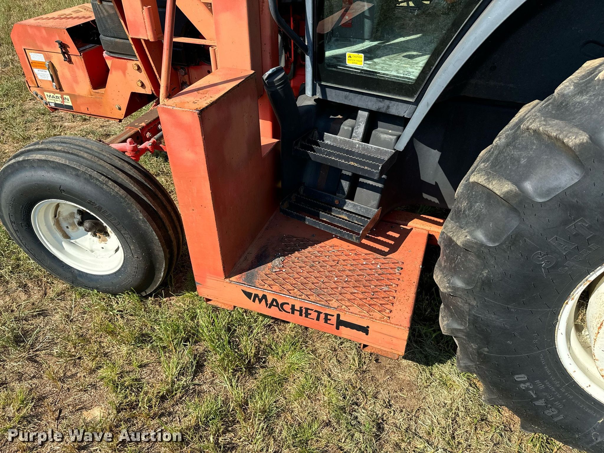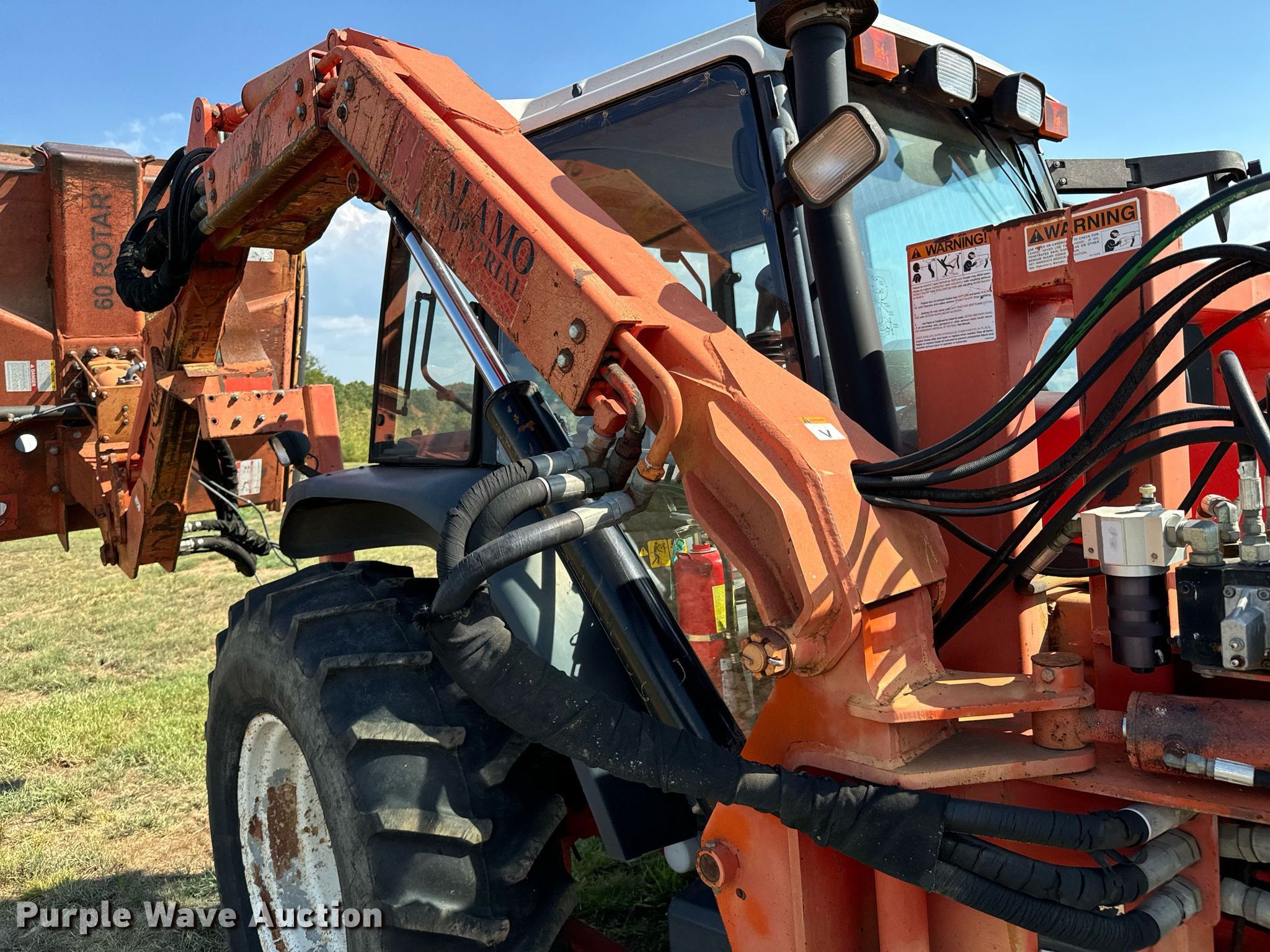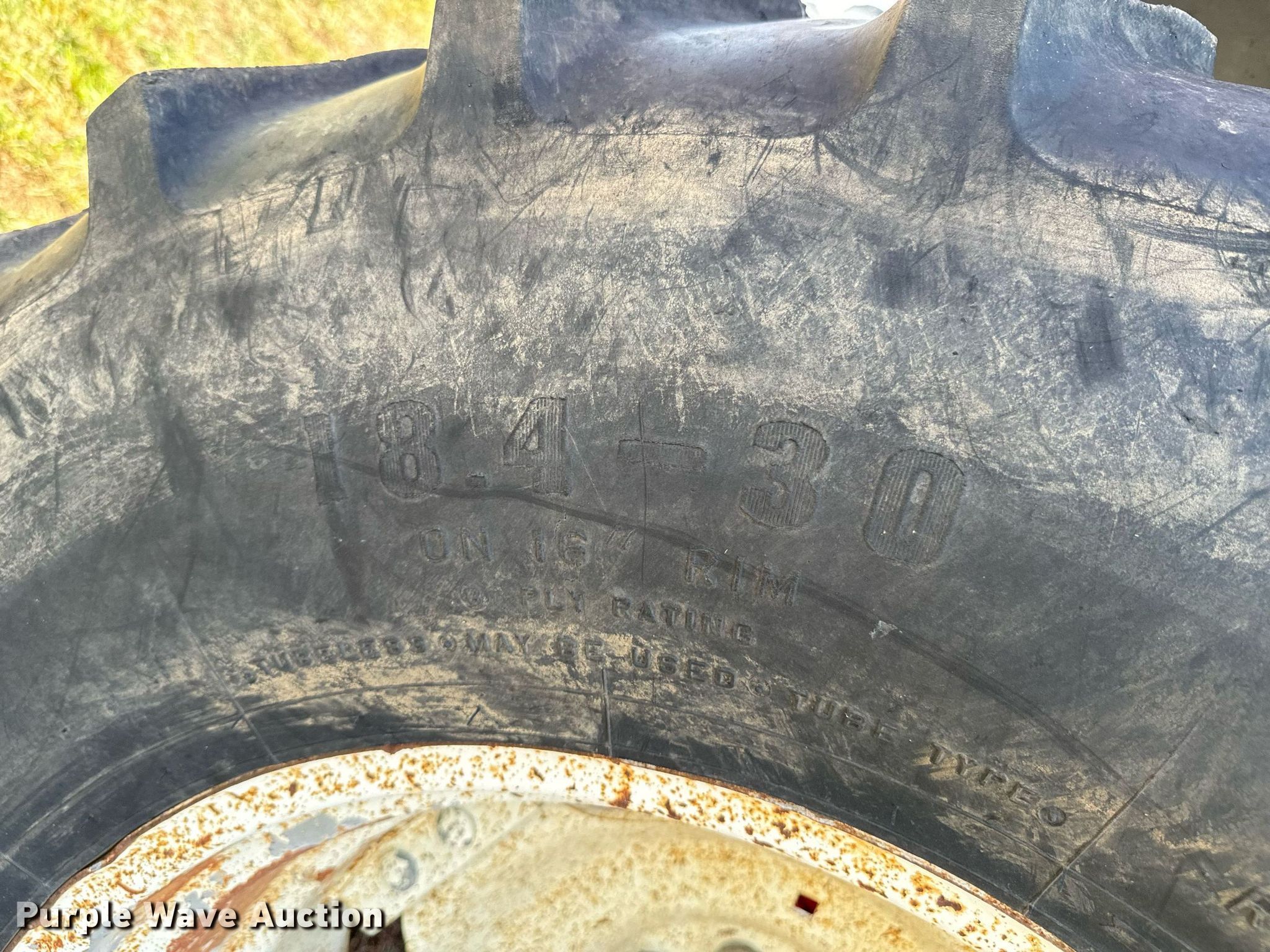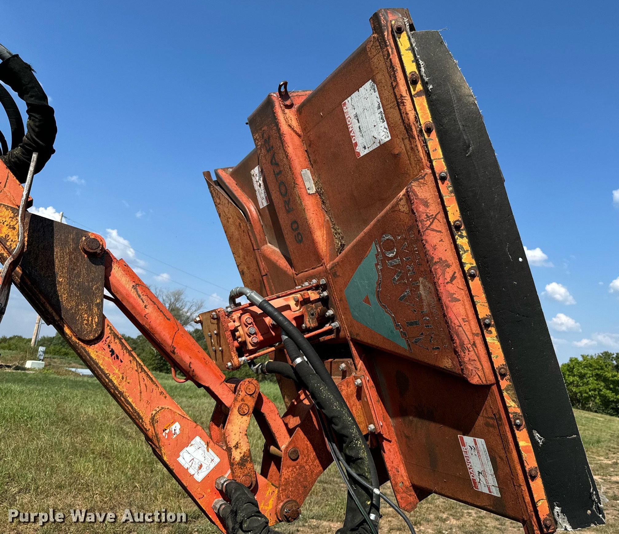 2001 New Holland TS100 tractor. Hours: 3,295 on meter, Miles or hours may vary, unit still in use, Serial: 155887B. Engine Cylinders: 4, Fuel type: Diesel. Transmission Dual power, 12F - 12R, Differential lock. Operators station AC, Heat. Features Seven pin outlet, Hydraulic remote sets Rear: 4, Alamo MR60 side boom mower Width: 66". Tires Front: 10.00-16, Rear: 18.4-30, Wheel weights: 1. OMNI Land Management LLC. Neosho, MO 64850
