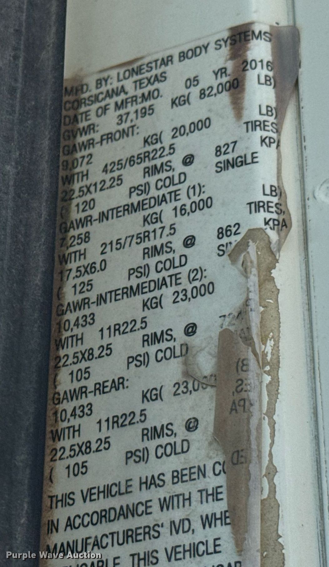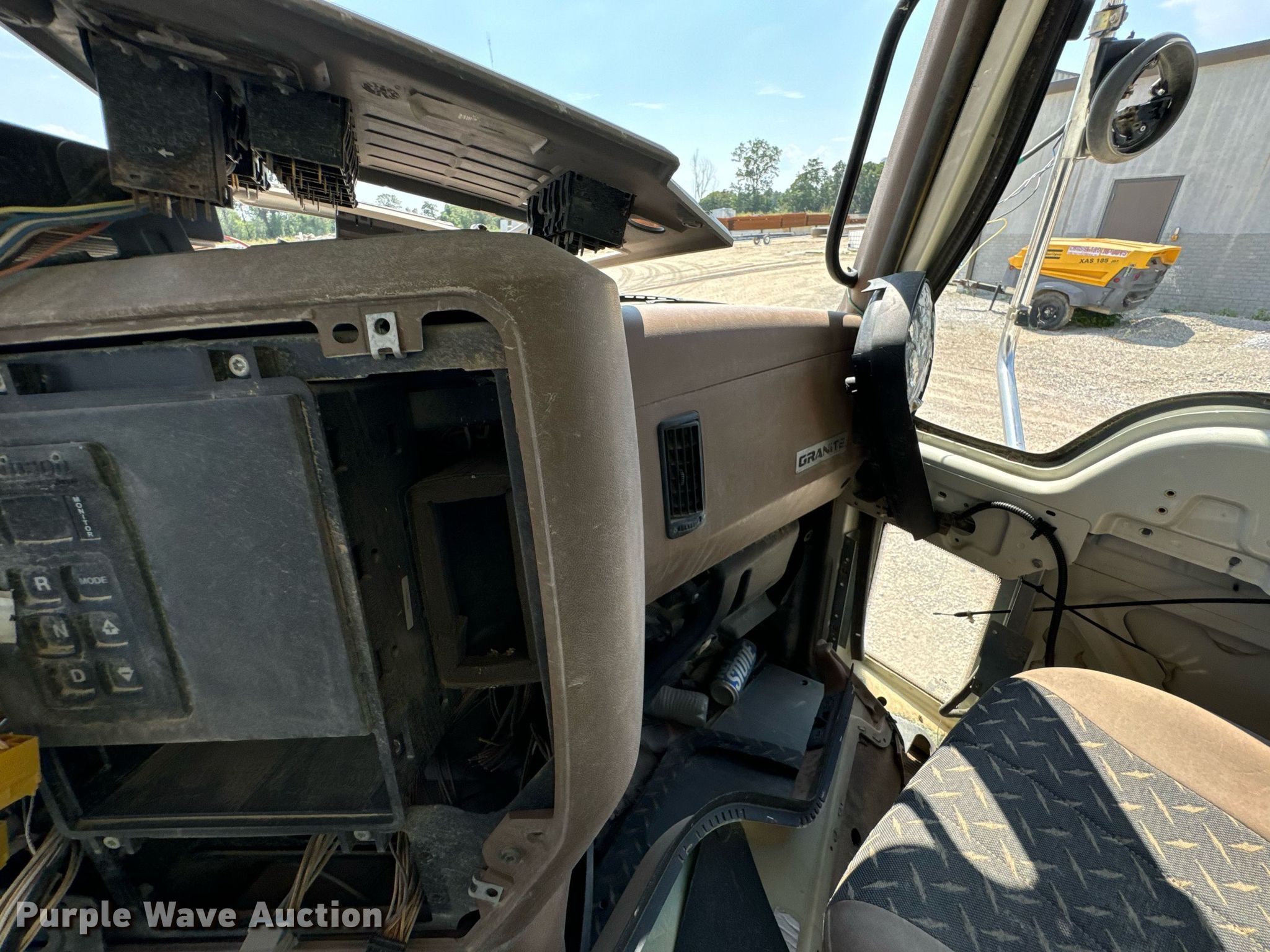 2017 Mack GU713 dump truck. Miles: Unknown, VIN: 1M2AX04C5HM034844. Engine Mack, Displacement: 10.8L, Cylinders: 6, Fuel type: Diesel. Transmission Allison, Automatic. Chassis Axles: Tandem, Suspension: Spring, Brakes: Air, PTO, GVWR: 82,000 lbs FAWR: 20,000 lbs, IAWR: 16,000 lbs, RAWR: 23,000 lbs. Features Dump bed Ox Bodies, 18' L x 96" W, Side height: 41", Side board height: 6", Bed type: Barrel, Ram: Single. Tires Front: 425/65R22.5, Rear: 11R22.5. Notes Contents in bed will be removed prior to auction, Parts missing, Parts only, Dashboard panels removed, but included, Non-operational unit. Oklahoma title. Title distribution may be delayed up to 14 days from verification of funds. Crossland Heavy Contractors Inc.. Columbus, KS 66725