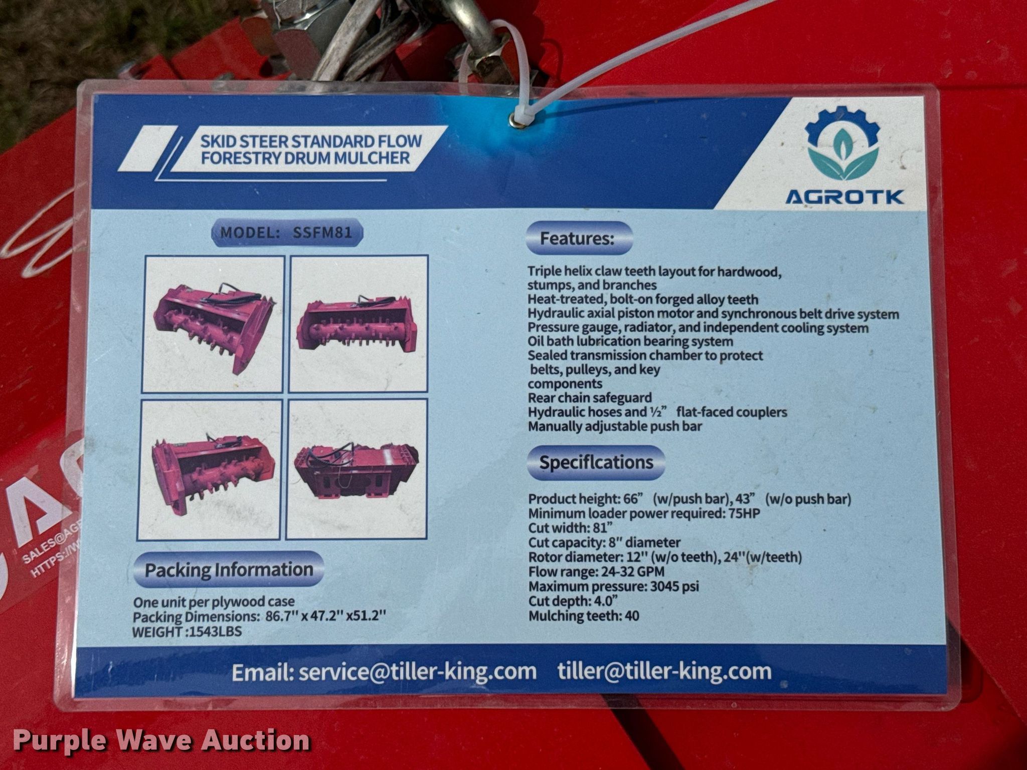Purple Wave is selling a used Skid Steer Attach. in Kansas. This item is a 2024 TopCat SSFM81 skid steer mulcher with the following: Serial: SSFM8124062001F, Width: 60"