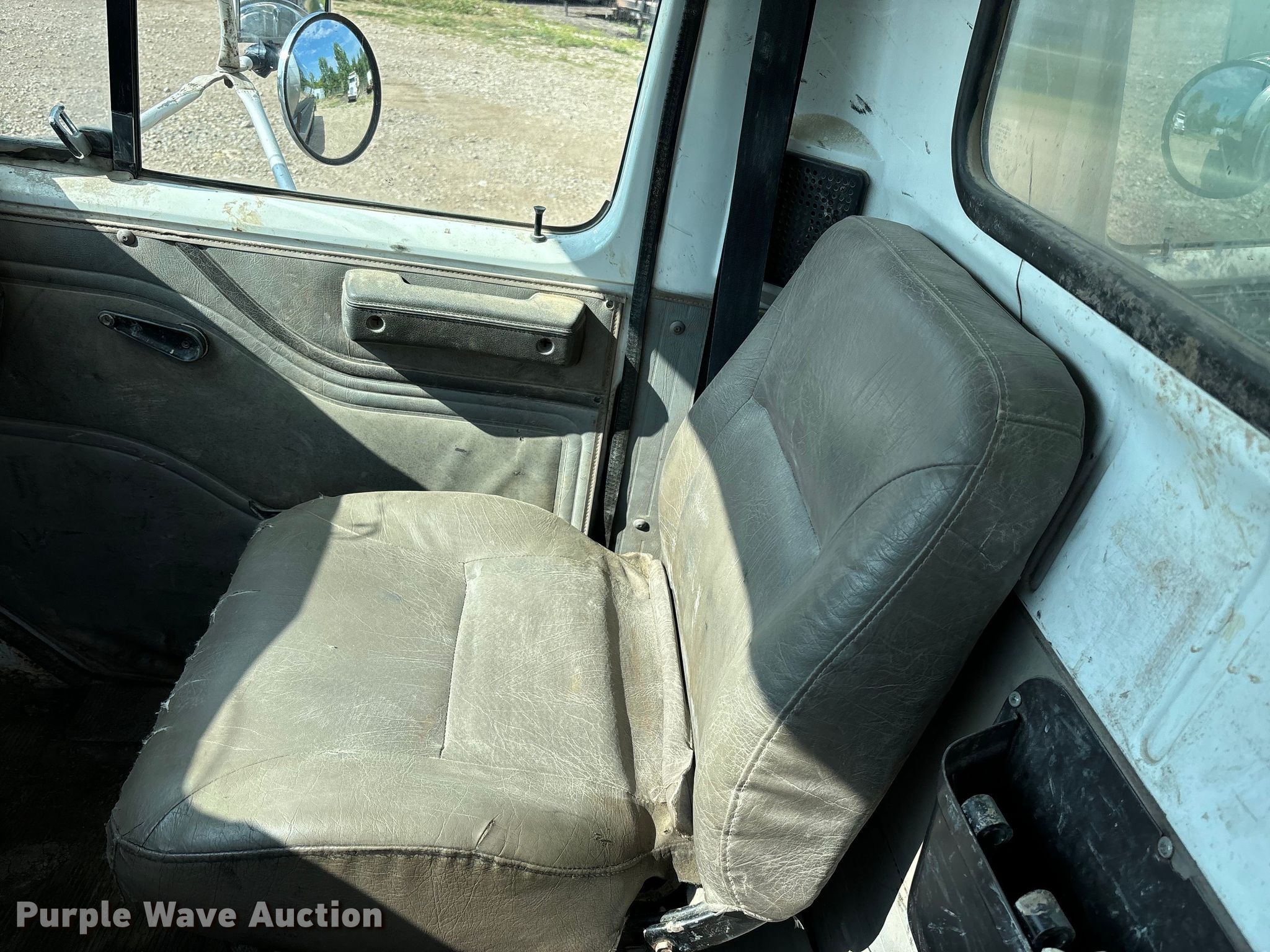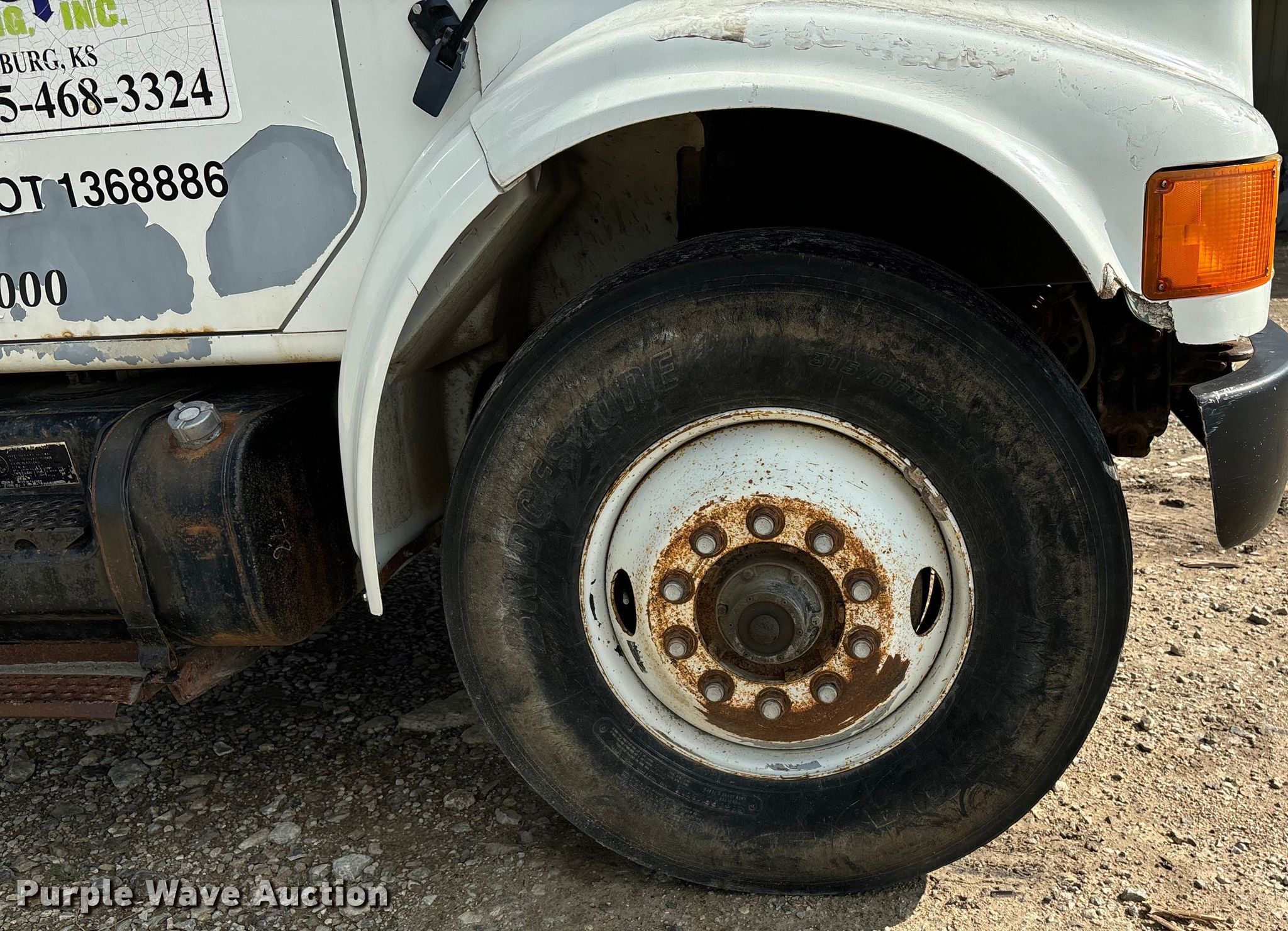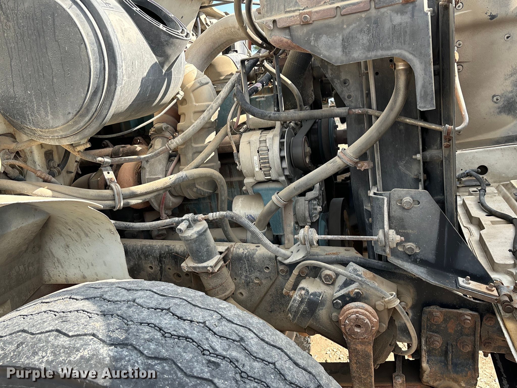 1995 International 4900 tank truck. Miles: 593,866 on odometer, VIN: 1HTSHAAR9SH688155. Engine International DT466, Displacement: 466 C.I.D., Cylinders: 6, Fuel type: Diesel. Transmission Manual, Speed: 7. Chassis Axles: Tandem, Differential lock: Inter-axle, Suspension: Spring over walking beam, Brakes: Air. Interior AC, Heat, Heated mirrors, Brake controller. Features Bed / tank 19' L x 96" W, Top fill, Rear outlet: 4", Double frame. Tires Front: 315/80R22.5, Rear: 11R22.5. Notes Water tank leaks. Kansas title. Associated Drilling, Inc. Olsburg, KS 66520