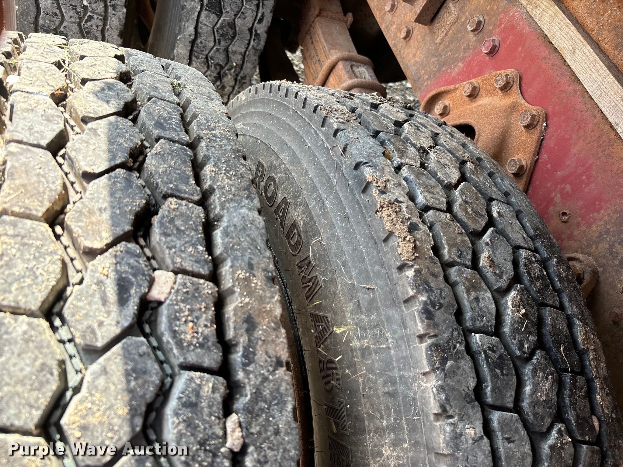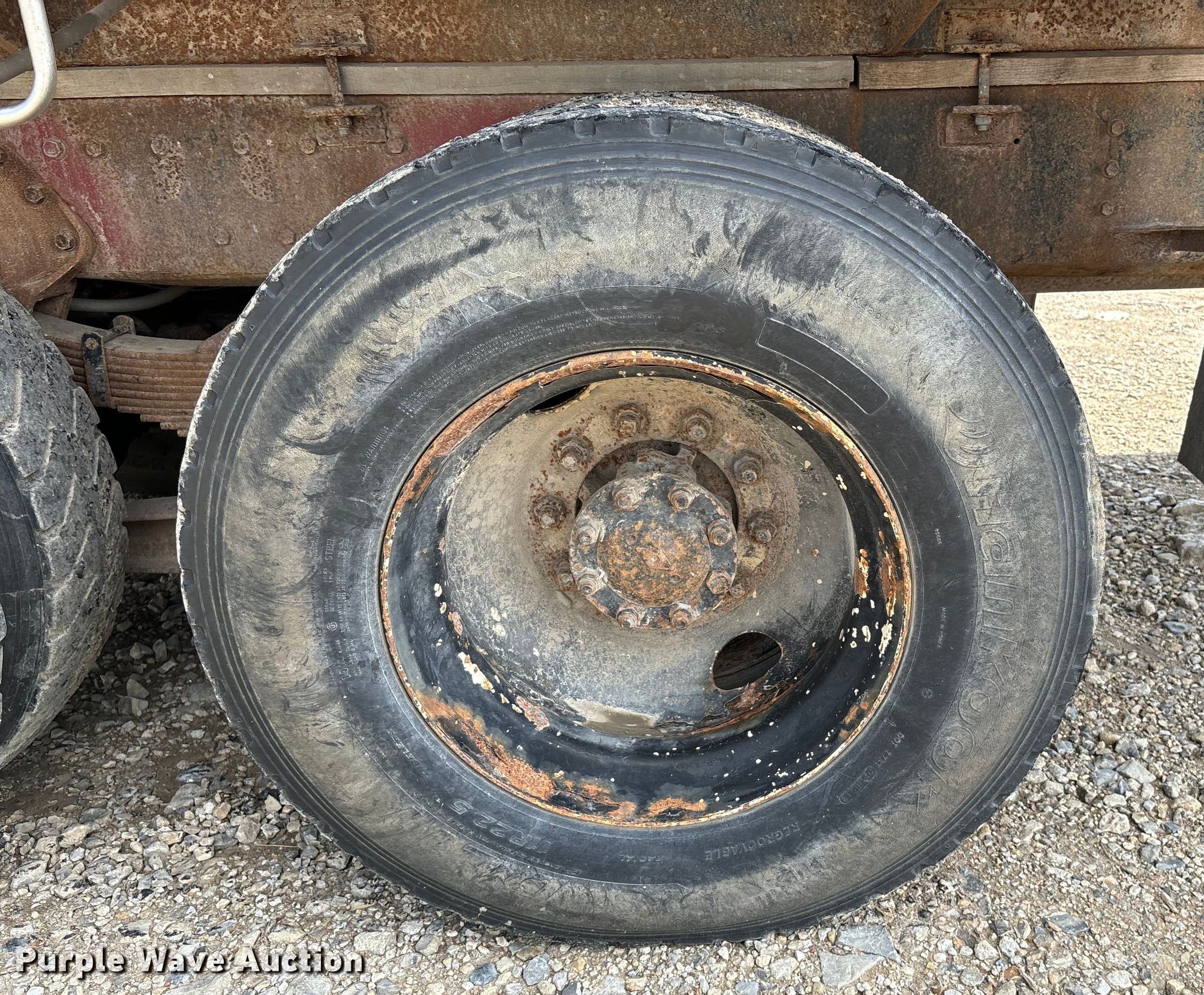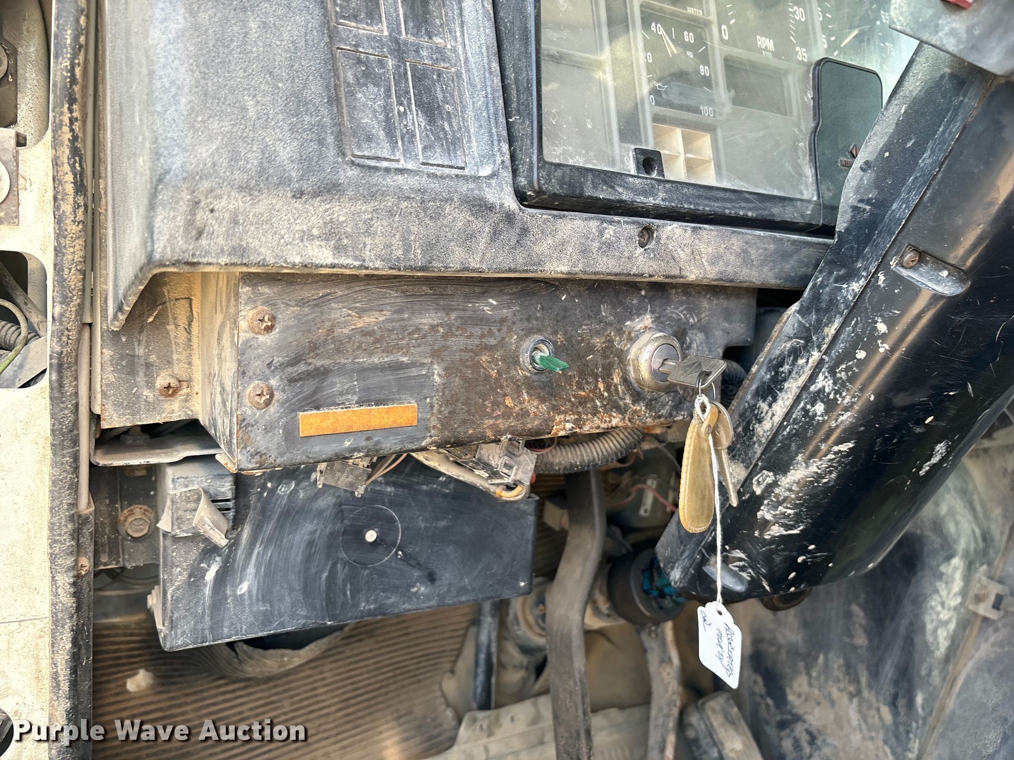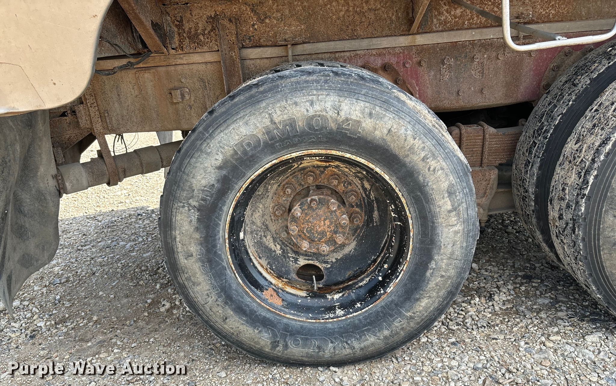 1995 International 4900 tank truck. Miles: 593,866 on odometer, VIN: 1HTSHAAR9SH688155. Engine International DT466, Displacement: 466 C.I.D., Cylinders: 6, Fuel type: Diesel. Transmission Manual, Speed: 7. Chassis Axles: Tandem, Differential lock: Inter-axle, Suspension: Spring over walking beam, Brakes: Air. Interior AC, Heat, Heated mirrors, Brake controller. Features Bed / tank 19' L x 96" W, Top fill, Rear outlet: 4", Double frame. Tires Front: 315/80R22.5, Rear: 11R22.5. Notes Water tank leaks. Kansas title. Associated Drilling, Inc. Olsburg, KS 66520