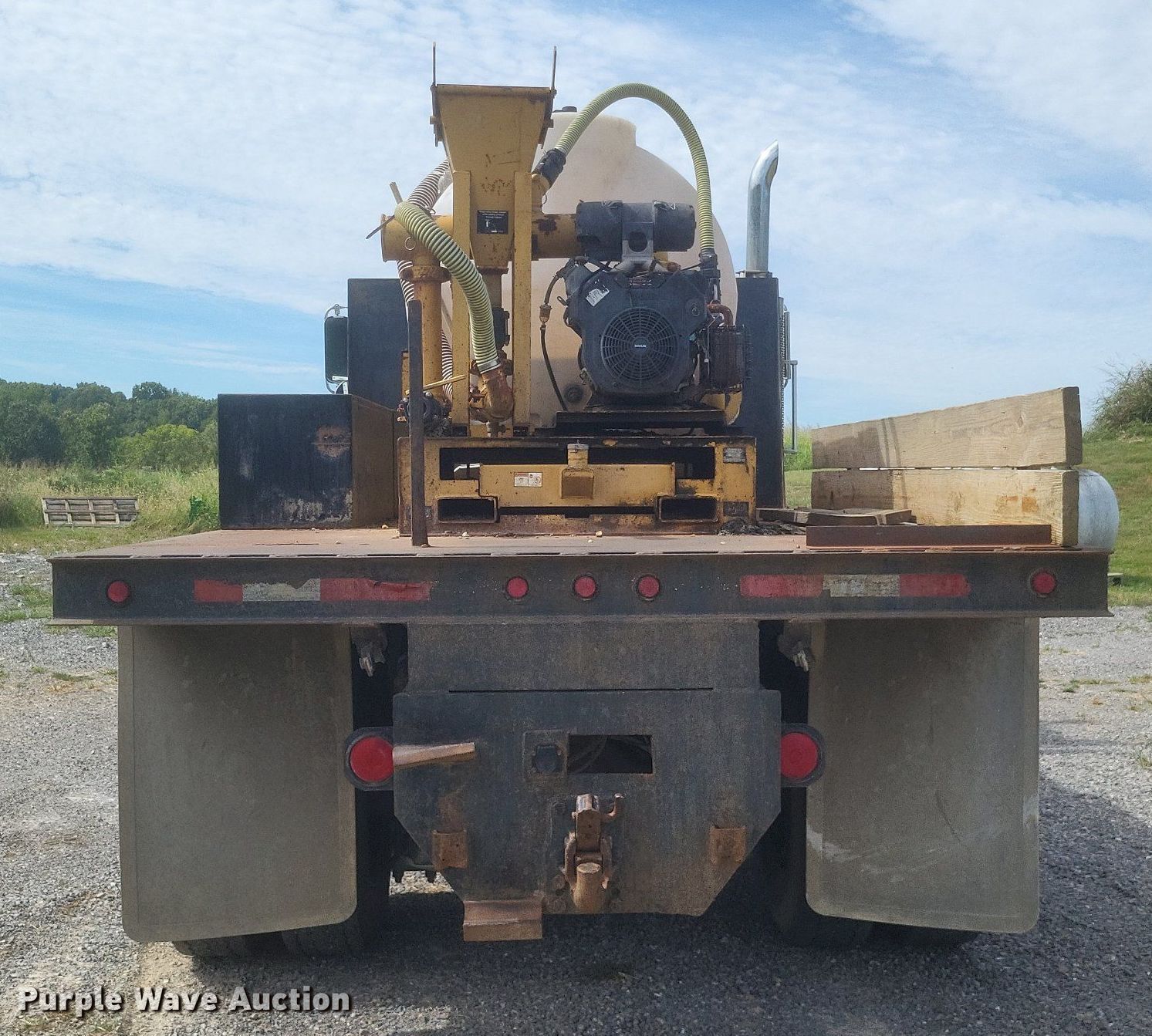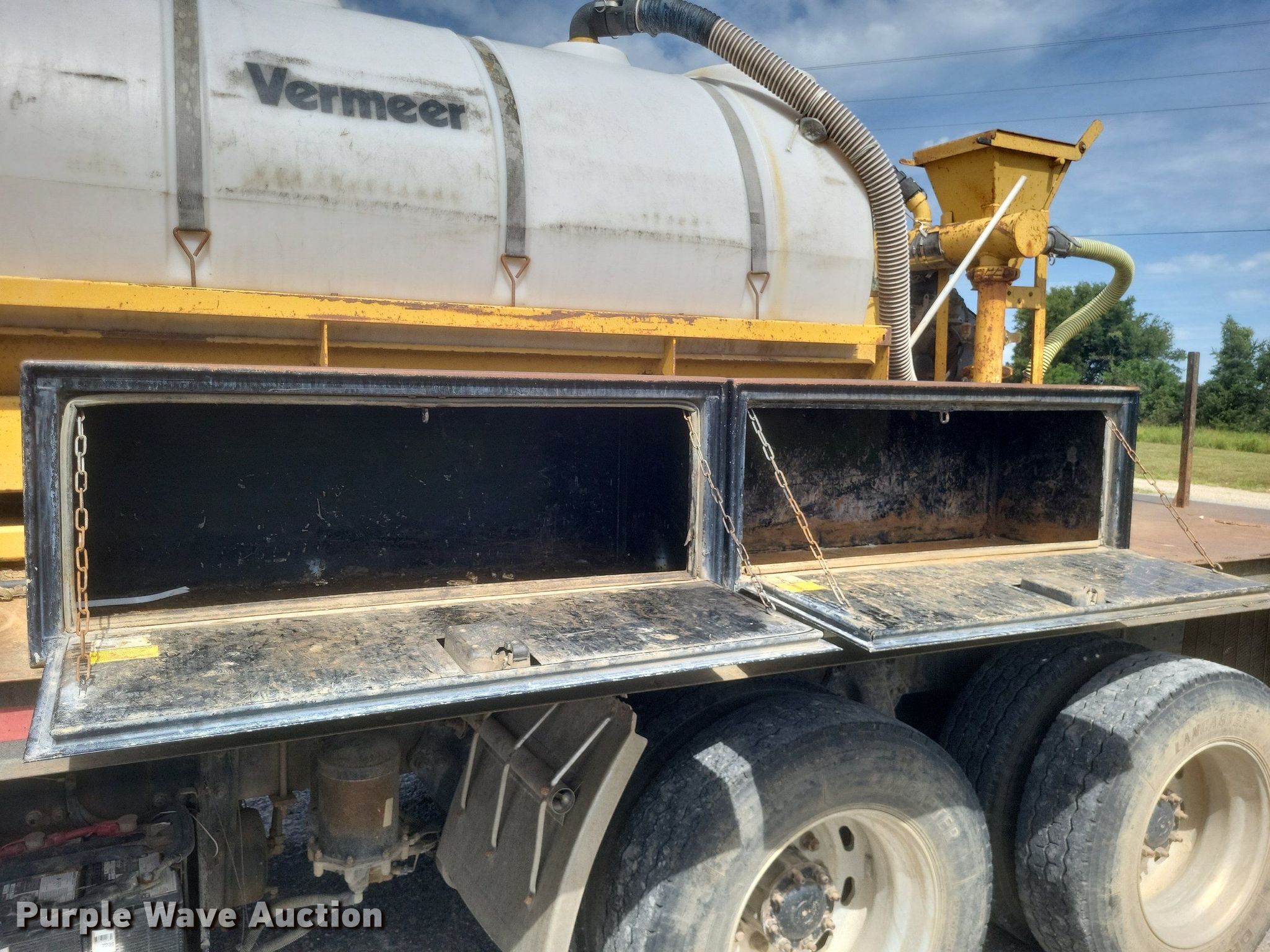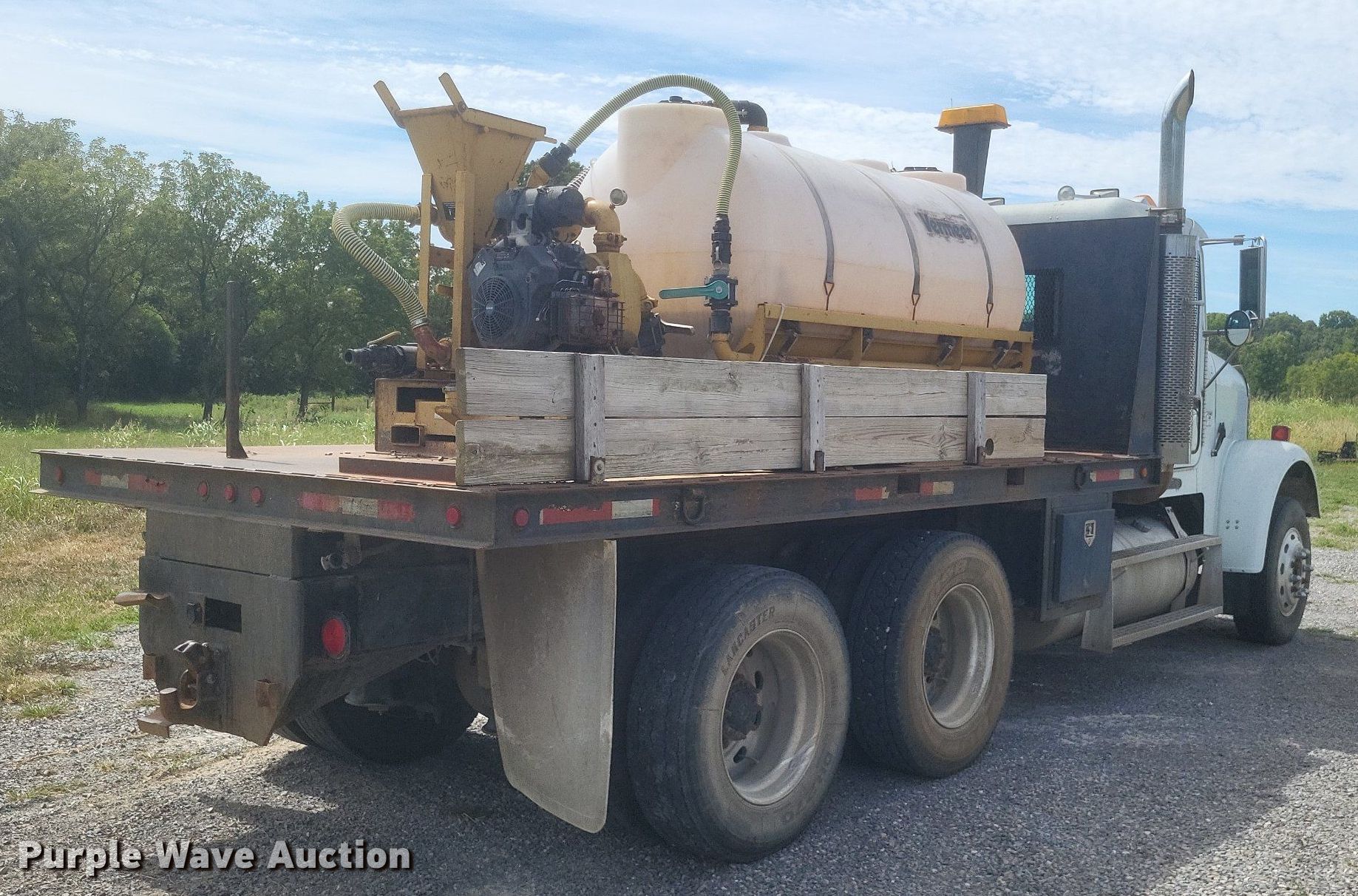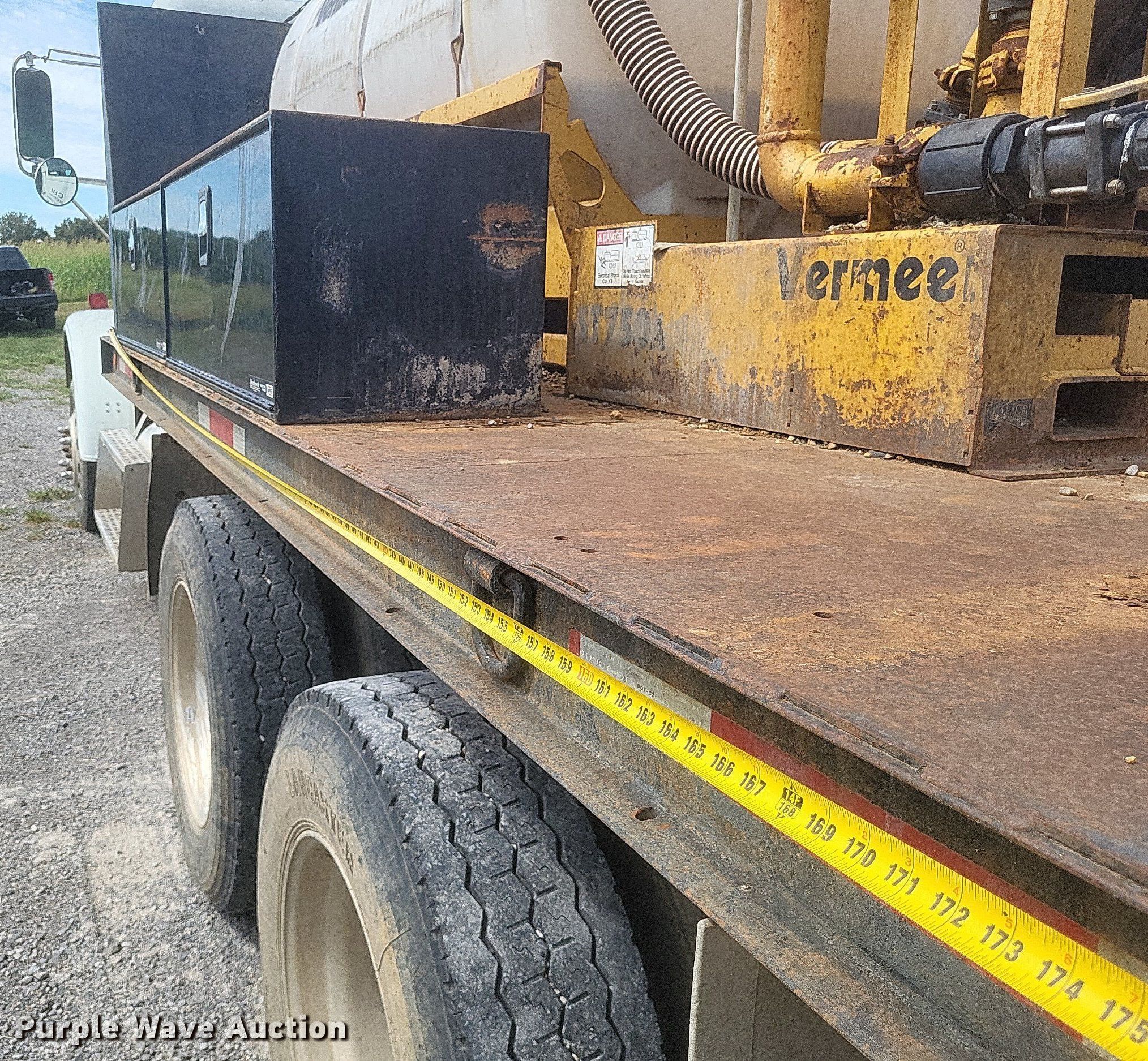 1996 Freightliner FLD flatbed truck. Miles: 552,052 on odometer, VIN: 1FUPFEDB0TP810710, Unit #: 2. Engine Caterpillar 3176, Displacement: 10.3L, Cylinders: 6, Fuel type: Diesel. Transmission Eaton Fuller, Manual, Speed: 10. Chassis Axles: Tandem, Differential: Inter-axle, Suspension: Air, Brakes: Air, GVWR: 52,000 lbs. Interior AC, Heat, Power windows, Cruise control, Brake controller. Features Flatbed 185" L x 8' W, Removable sides, Dump valve, Mixing fluid system. Tires Size: 295/75R22.5. Vermeer ST750A mud tank VIN: 1VRT1106441001169, Unit #: E783, Skid mounted. Engine Kohler, Fuel type: Gas. Features Fuel tank, Poly tank Capacity: Approx. 750 gallons, 2" outlet. Notes Windshield chipped or cracked, Driver door lock missing, Mud tank engine issues, cranks but won't start. Missouri title. Mileage has not been verified. Exempt will be written in the odometer disclosure on the title. Title distribution may be delayed up to 14 days from verification of funds. Coastal Bay Inc.. Bloomfield, MO 63825