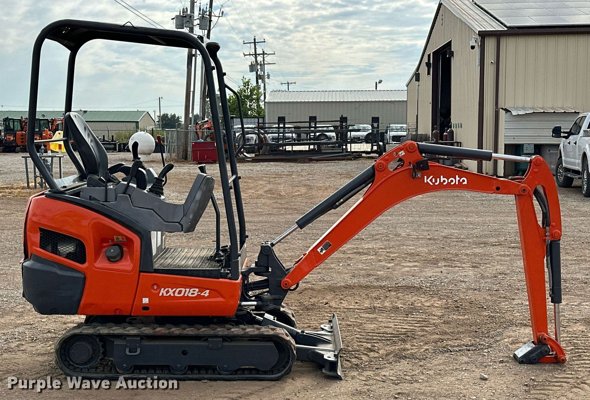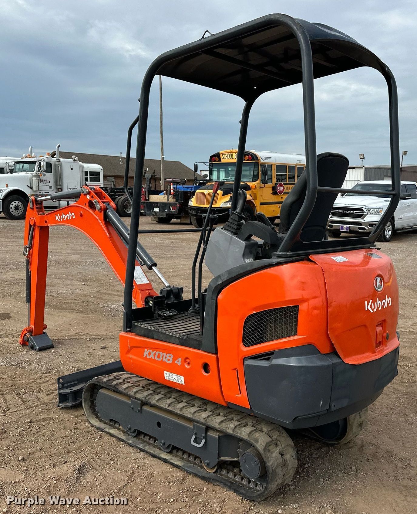 Purple Wave is selling a used Mini Excavator in Oklahoma. This item is a 2014 Kubota KX018-4 mini excavator with the following: Hours: 1,743 on meter, Serial: 41240