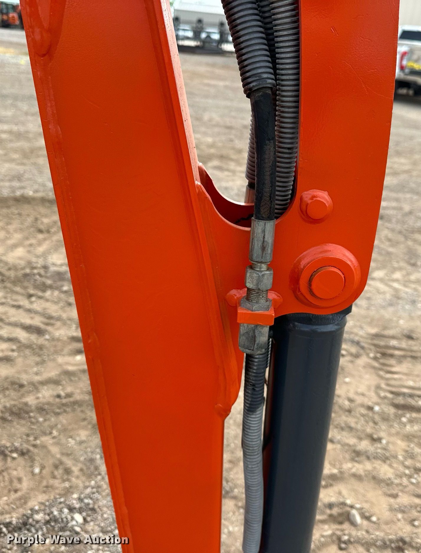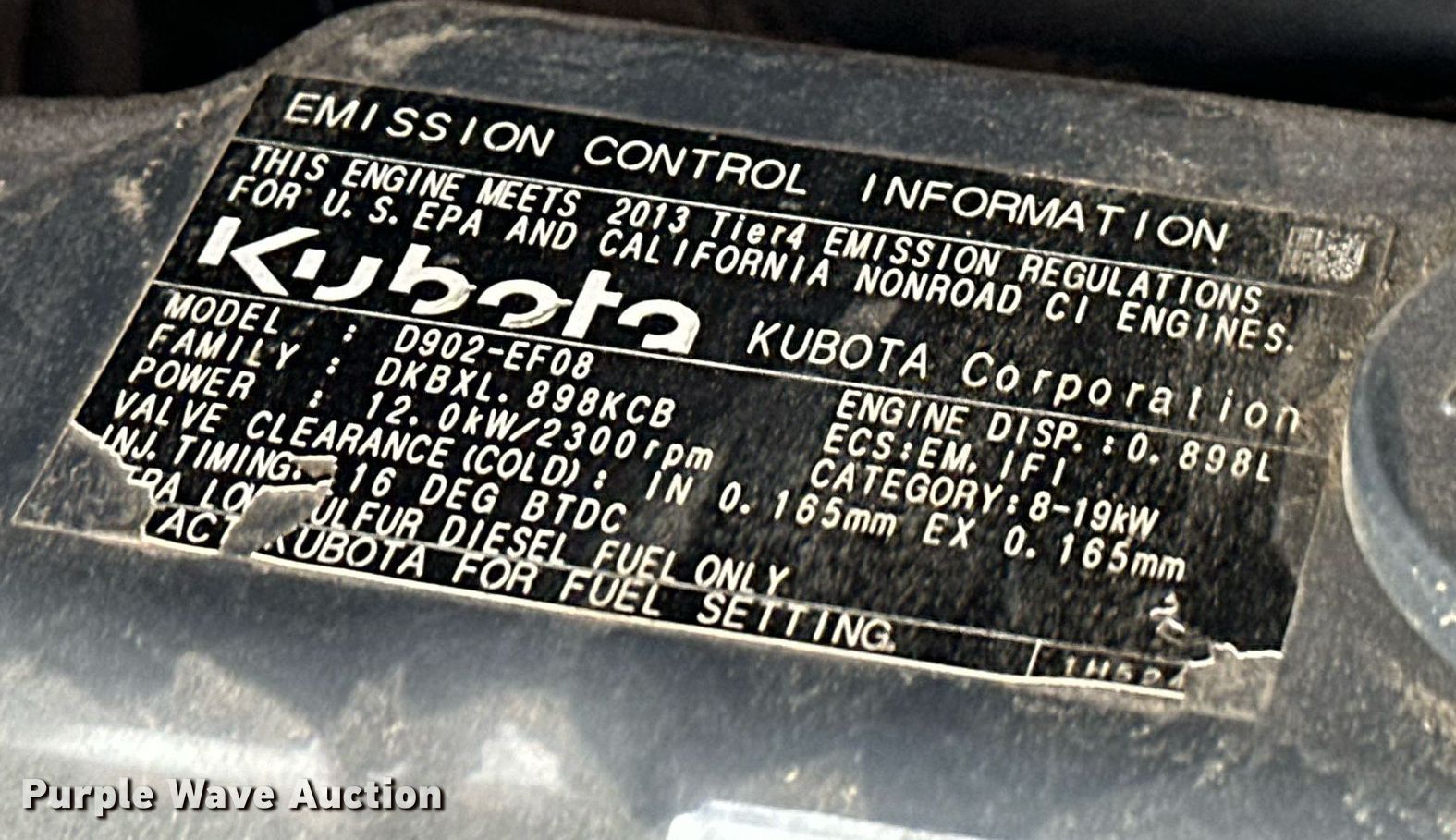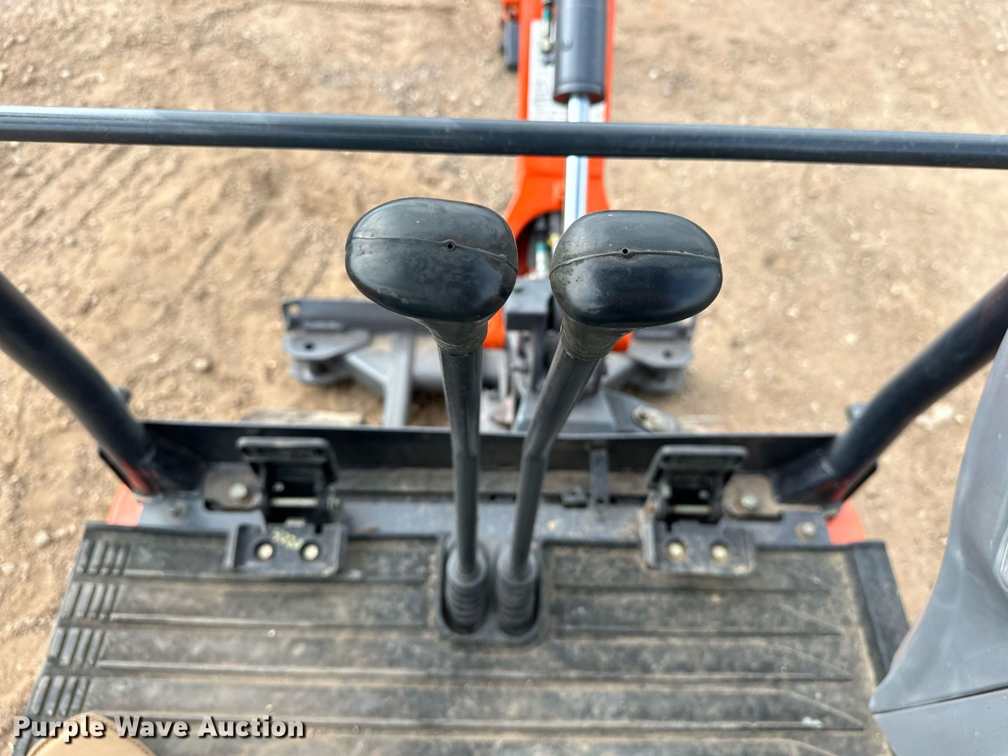 2014 Kubota KX018-4 mini excavator. Hours: 1,743 on meter, Serial: 41240. Engine Kubota D902, Serial: 4DY9832, Displacement: 0.898L, Cylinders: 3, Fuel type: Diesel. Transmission Hydrostatic, Two speed travel. Operators station OROPS, Pattern changer. Features Auxiliary hydraulics Standard, Two-way, Counter weights, Backfill blade Width: 39", Boom Swing, Stick Stick length: 3' 6". Tracks Width: 9", Rubber. Norman, OK 73072