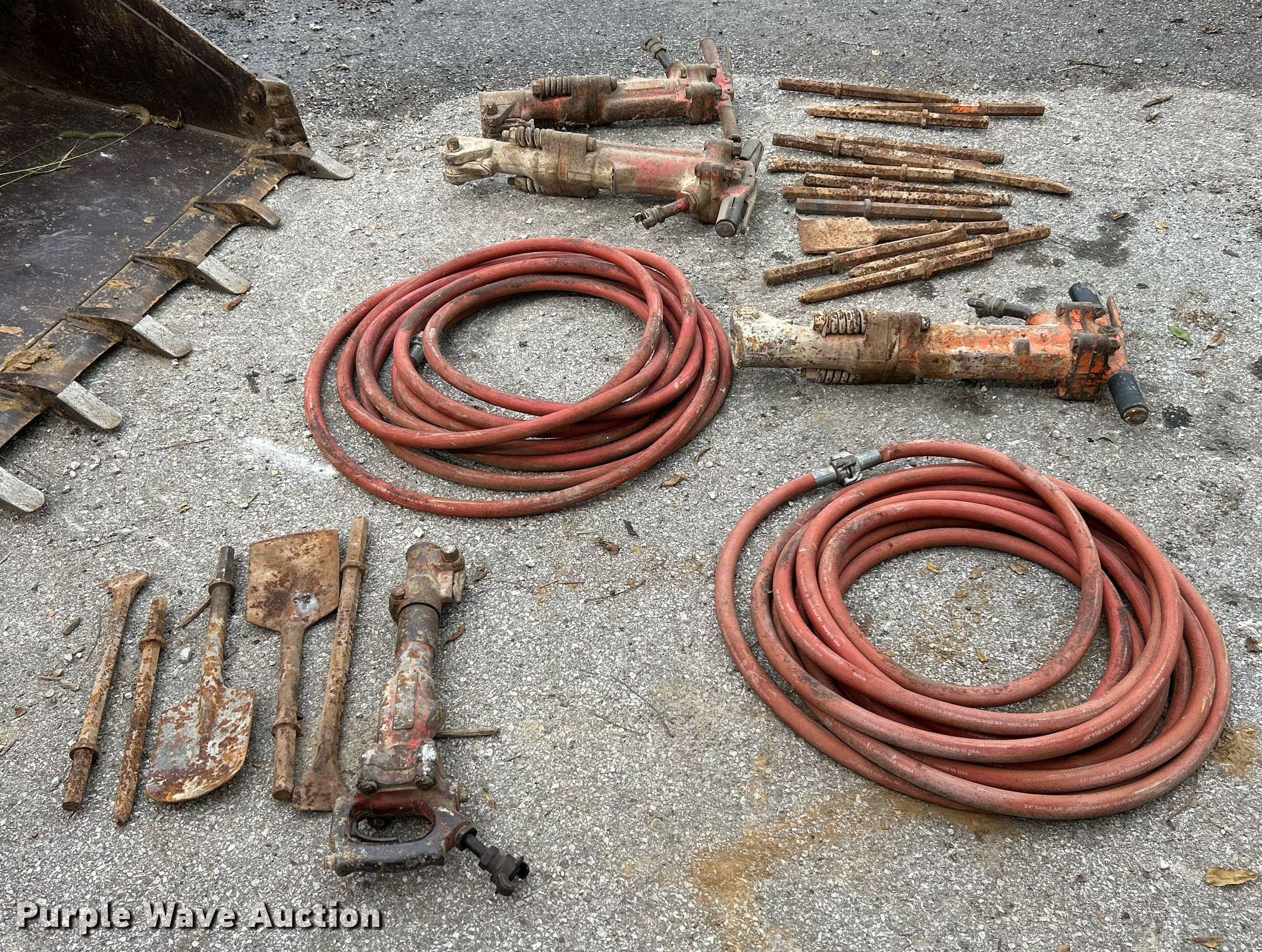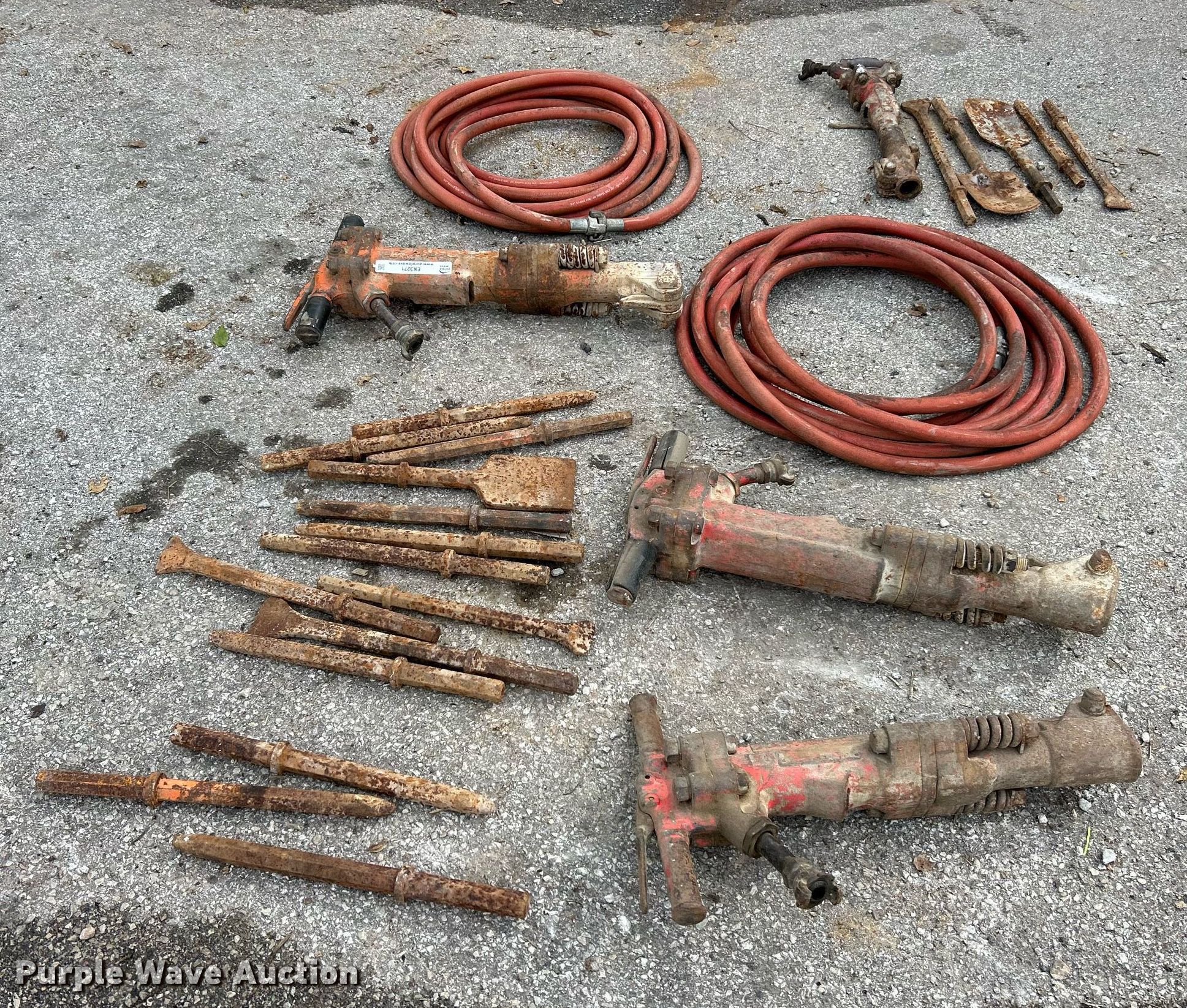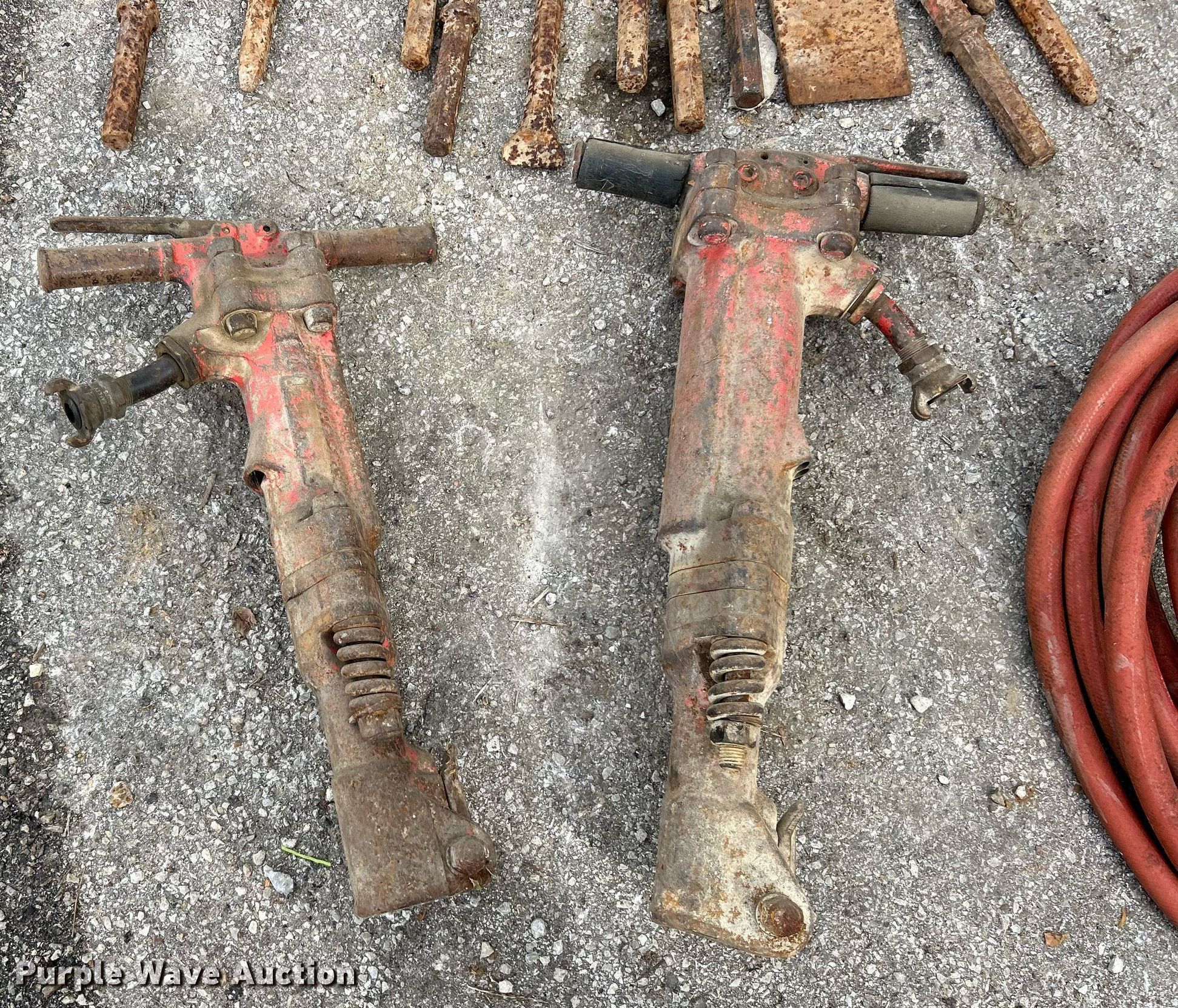 Purple Wave is selling a used Tools in Missouri. This item is a Tools with the following: (2) pneumatic breakers, Air spade, Breaker bits, (2) air hoses 3/4" diameter, Unknown operating condition