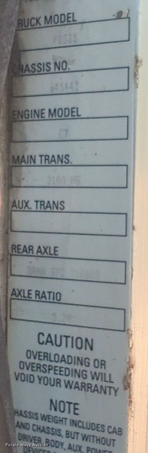 2006 Peterbilt 335 dump truck. Miles: 256,852 on odometer, Hours: 13,812 on meter, VIN: 2NPLHD6X56M645443. Engine Caterpillar, Displacement: 7.2L, Cylinders: 6, Fuel type: Diesel. Transmission Automatic. Chassis Axles: Single, Suspension: Spring, Brakes: Air, PTO, GVWR: 26,000 lbs FAWR: 10,000 lbs, RAWR: 20,000 lbs. Interior AC, Heat, Heated mirrors, Cruise control. Features Dump bed 10' L x 96" W, Side height: 34", Side board height: 10", Bed type: Steel, Roll tarp, Ram: Single, End gate: Air operated. Tires Front: 295/75R22.5, Rear: 11R22.5. Oklahoma title. Title distribution may be delayed up to 30 days from verification of funds. SWH Construction. Norman, OK 73072