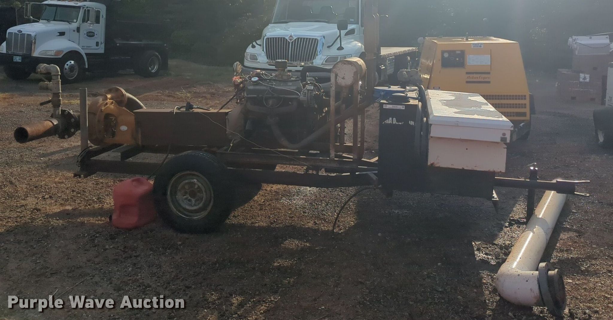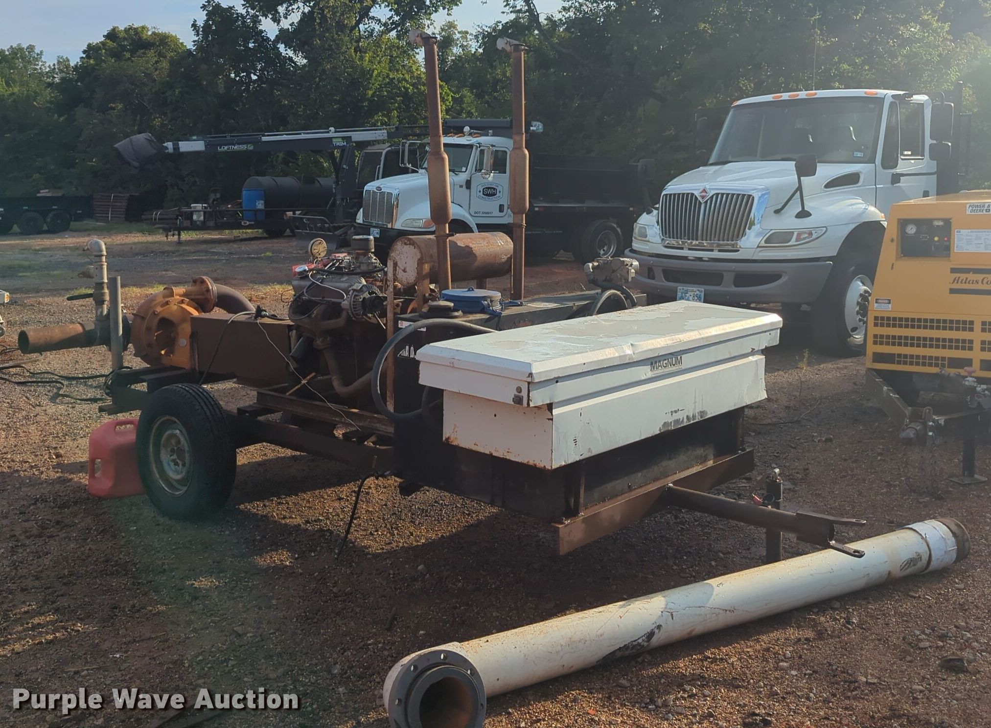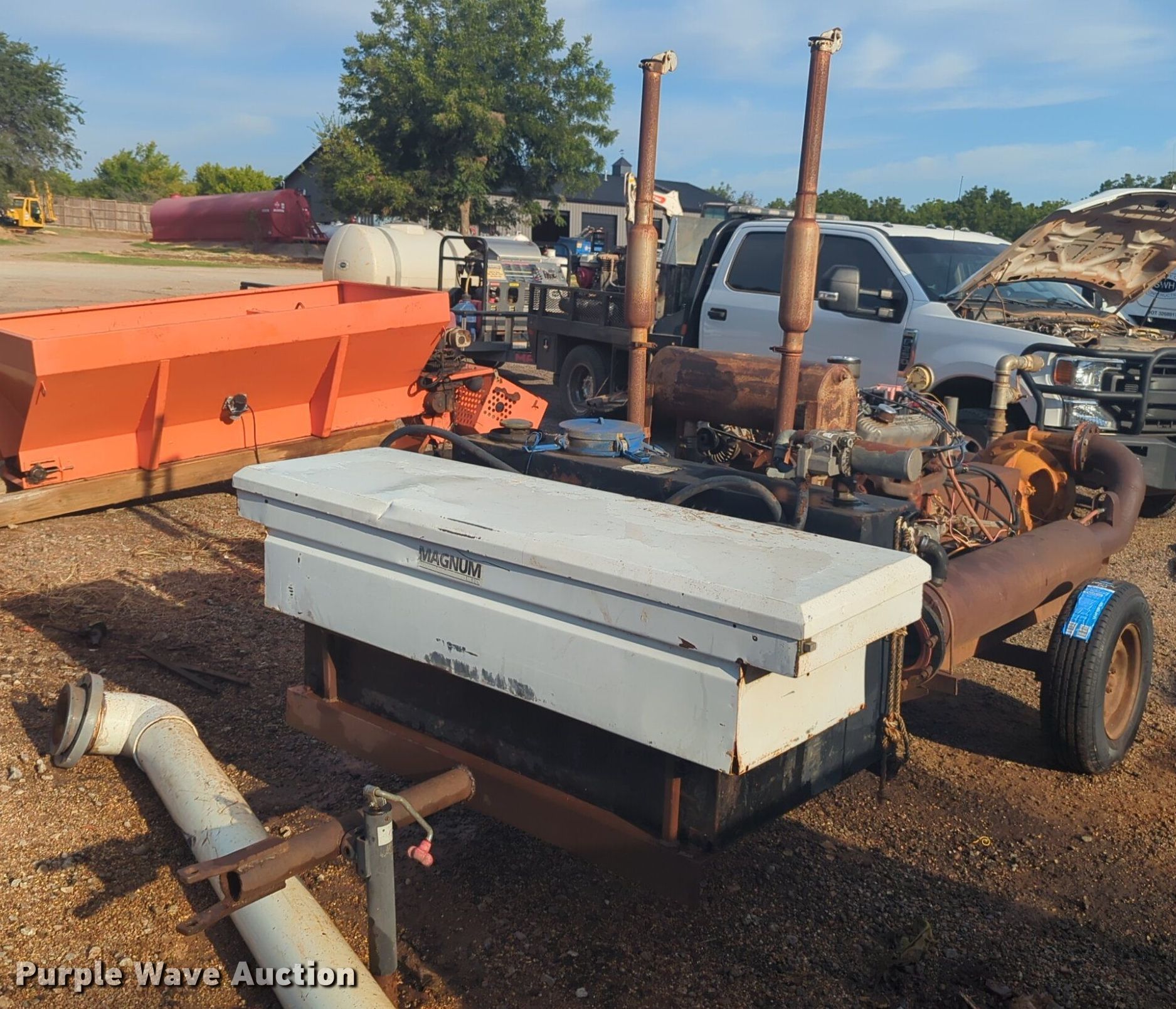 Berkley 840 irrigation pump. Overall dimensions: 16' x 60", Serial: 7270143. Engine Chrysler LH/318/496, Serial: E018003, Cylinders: 8, Fuel type: Gas. Features Outlet: 5". Tires Size: 205/75R14. This is worksite support equipment and will not come with a title. Transfer of ownership documentation will be a bill of sale. SWH Construction. Norman, OK 73072