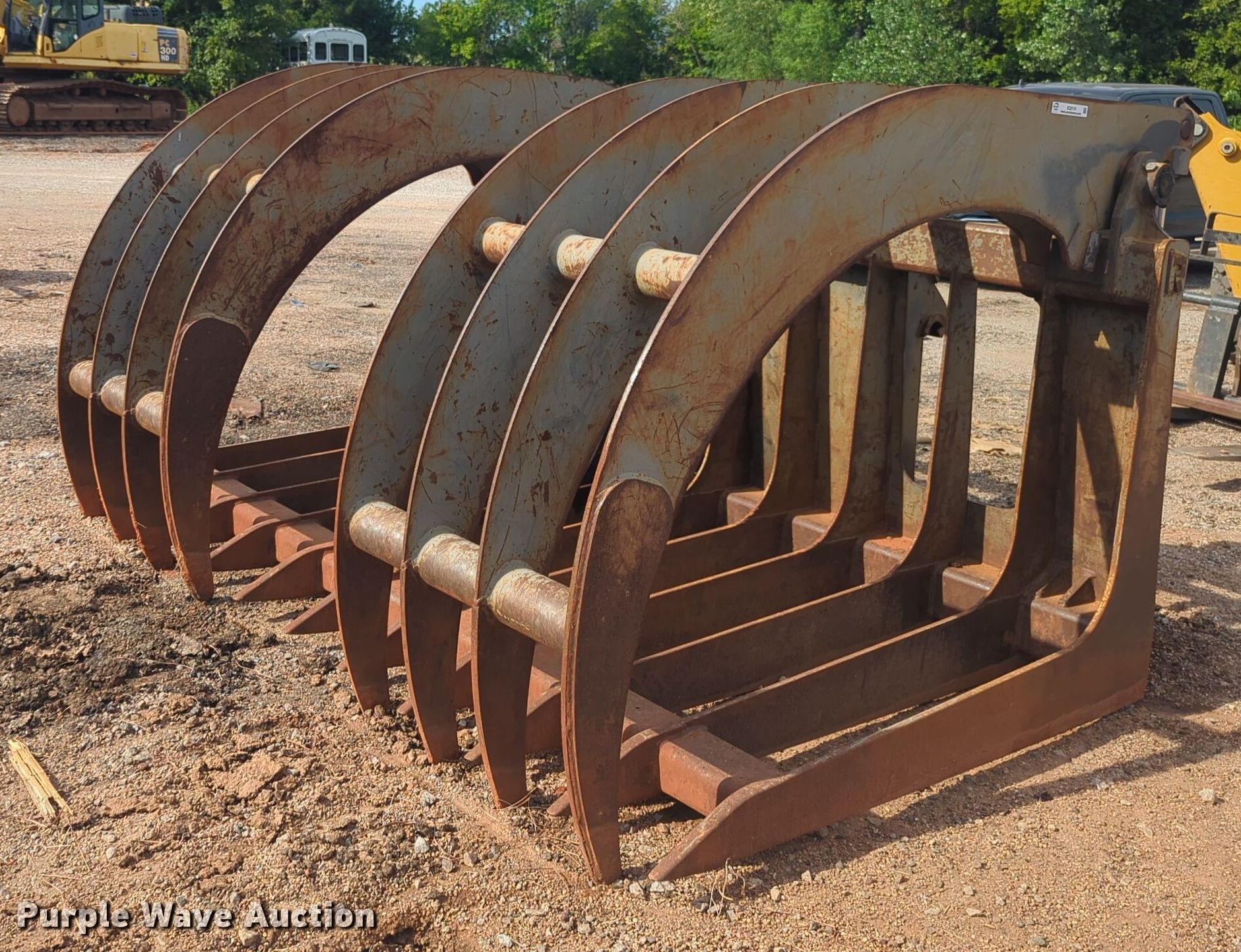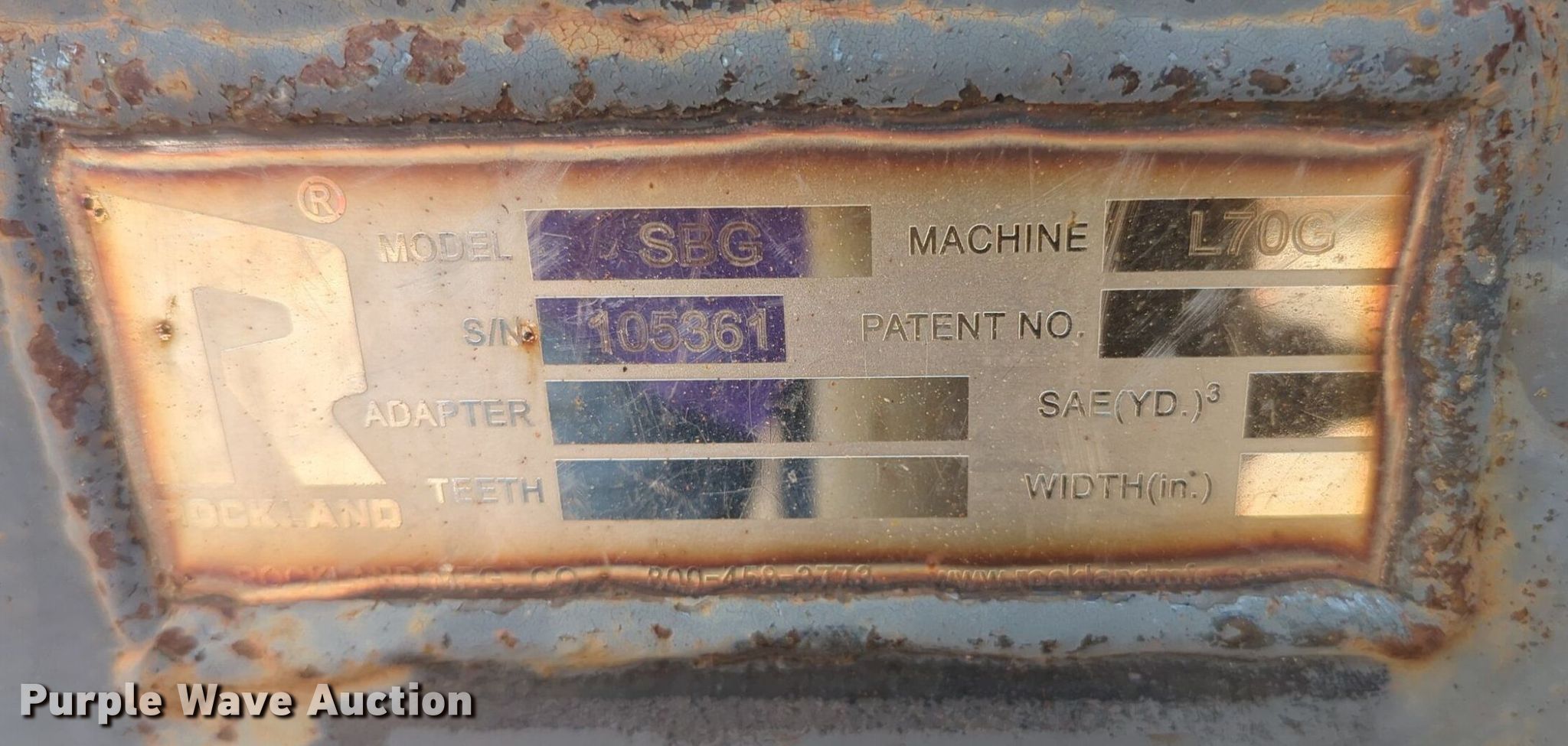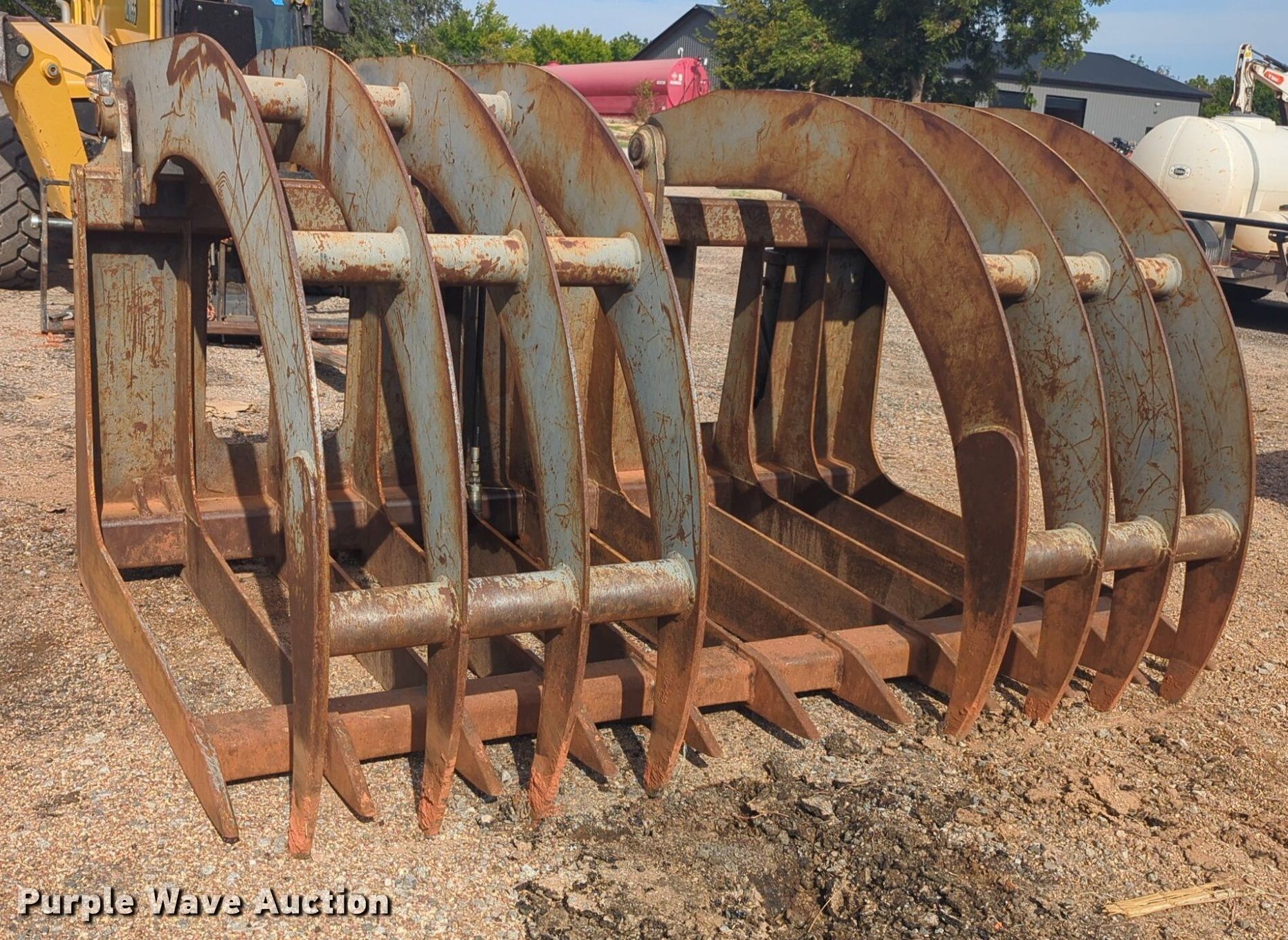 Purple Wave is selling a used Wheel Loader Attach. in Oklahoma. This item is a Rockland SBG wheel loader grapple bucket with the following: Serial: 105361, Width: 9'