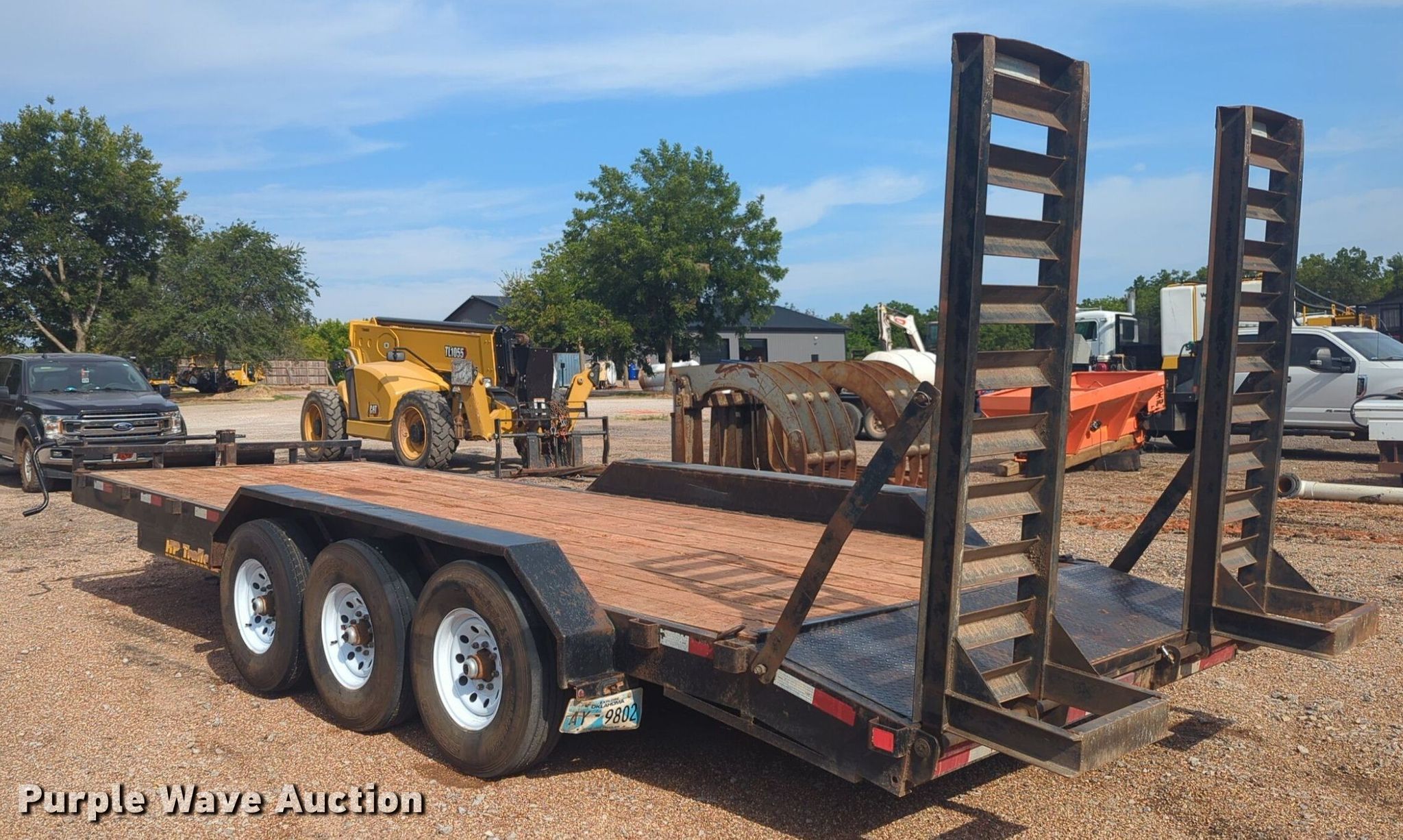 Hull Porter Trailers Inc. utility trailer. VIN: 50JTH2232LB012083. Dimensions Overall: 26' L x 102" W, Deck: 20' L x 84" W, Tail length: 2', Ramps: Manual Length: 72". Features Deck type: Wood. Chassis Ball hitch: 2 5/16", Landing gear: Single, Suspension: Spring, Brakes: Electric, Axles: Triple, GVWR: 21,000 lbs, GAWR: 7,000 lbs. Tires Steel wheels, Size: 235/85R16. Transfer of ownership documentation will be a bill of sale. SWH Construction. Norman, OK 73072