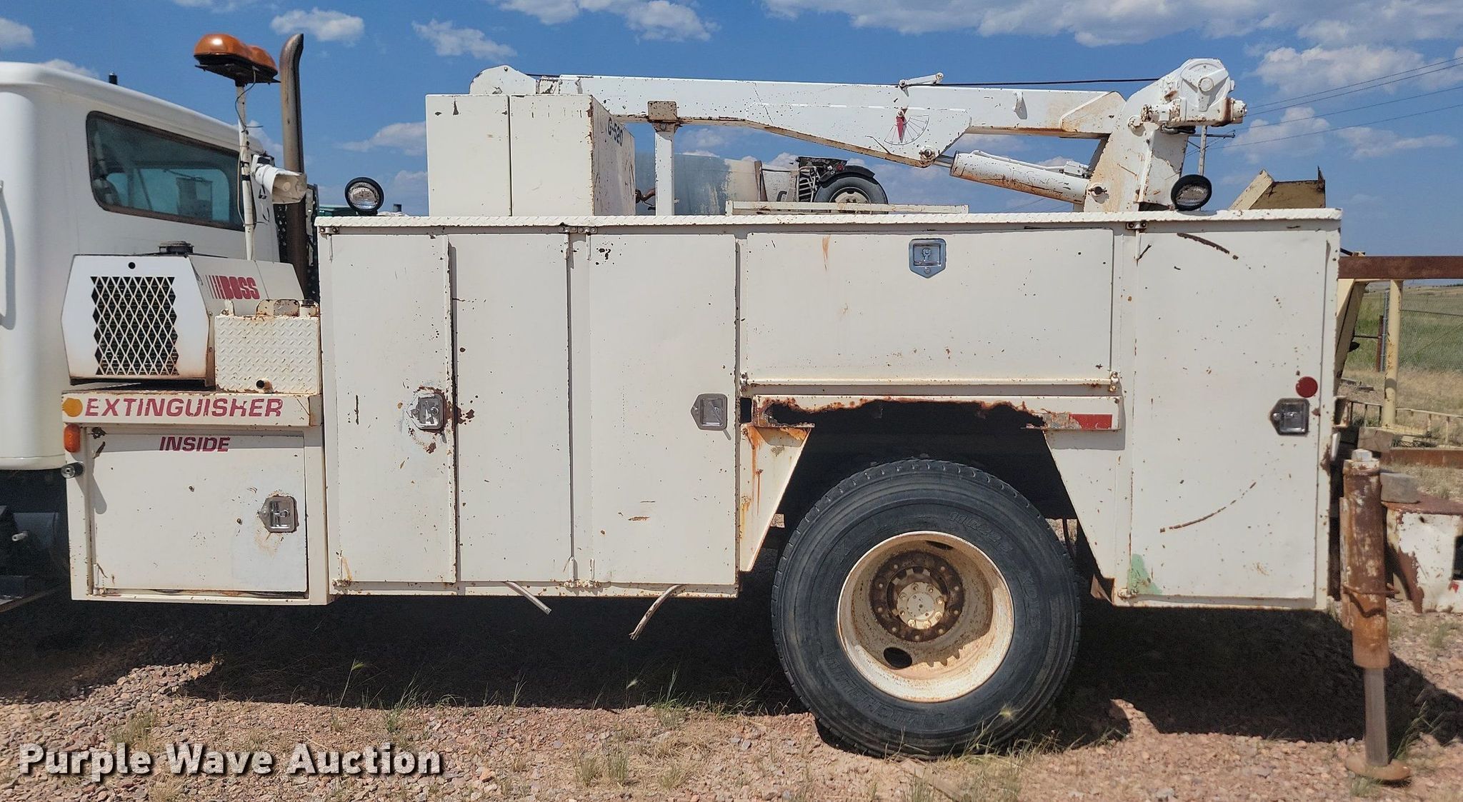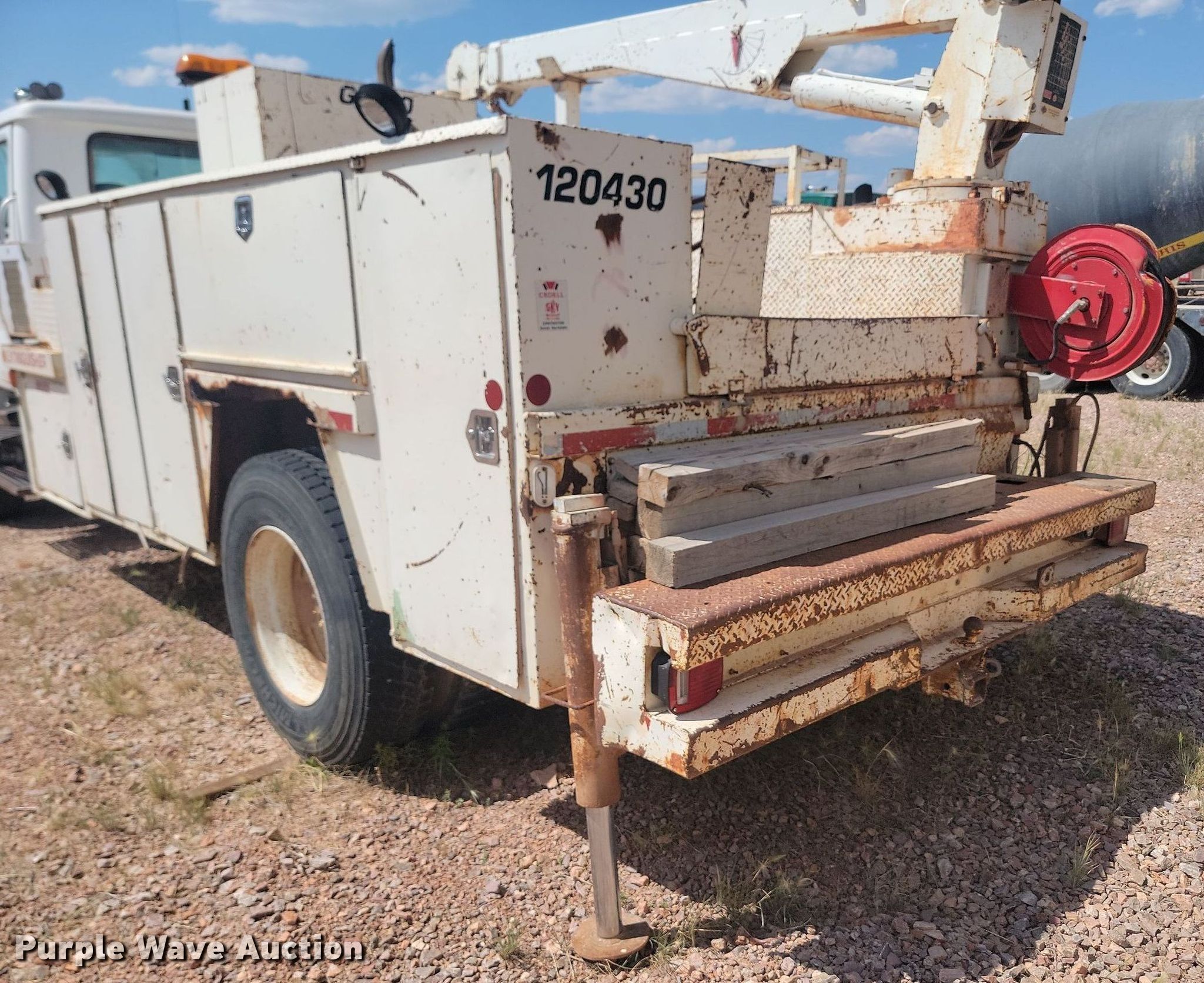 1996 International 4300 utility / service truck. Miles: 111,870 on odometer, Hours: 6,121 on meter. Engine International, Cylinders: 6, Fuel type: Diesel. Transmission Manual. Chassis Axles: Single, Brakes: Air. Interior Heat. Features Bed 11' 2" L, Oil/lube system Reservoirs Used oil, Crane IMT 315A, Maximum boom length: 21' Maximum lift capacity: 6,200 lbs.. Tires Size: 11R22.5. Notes Dead battery, Non-operational unit. Iowa title. Title distribution may be delayed up to 14 days from verification of funds. Croell Redi-Mix. Sundance, WY 82729