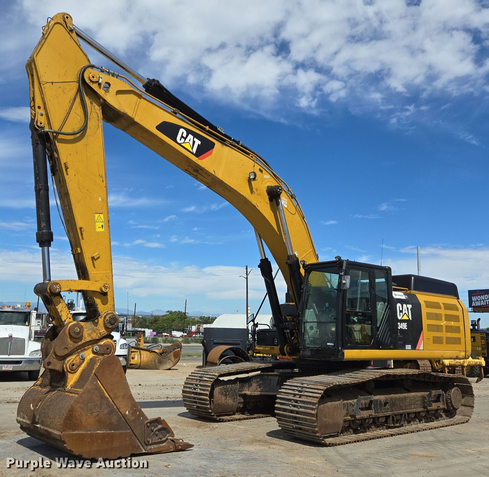 Purple Wave is selling a used Hydraulic Excavator in Colorado. This item is a 2013 Caterpillar 349EL excavator with the following: Hours: 11,384 on meter, Serial: CAT0349ELTFG00722