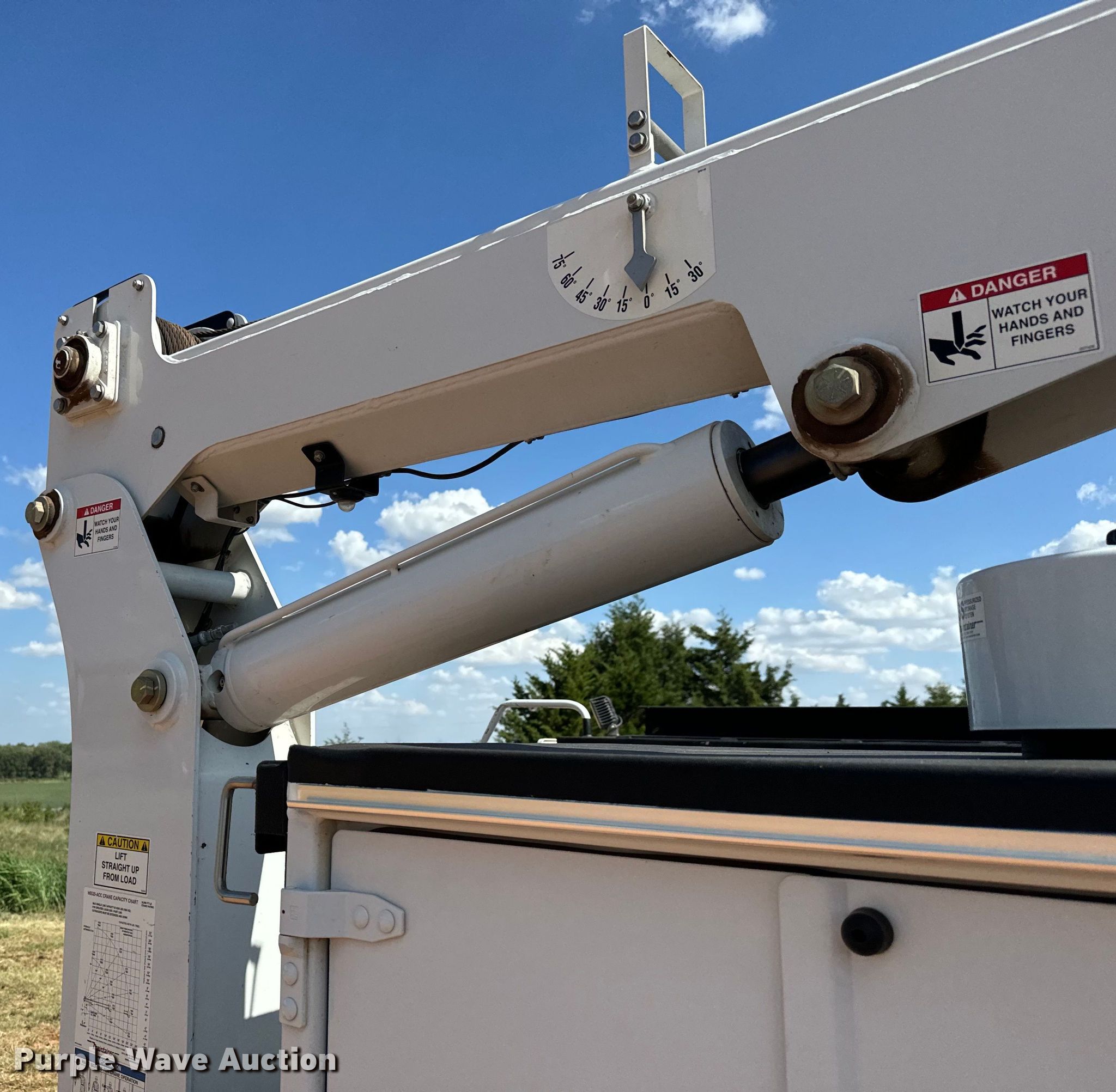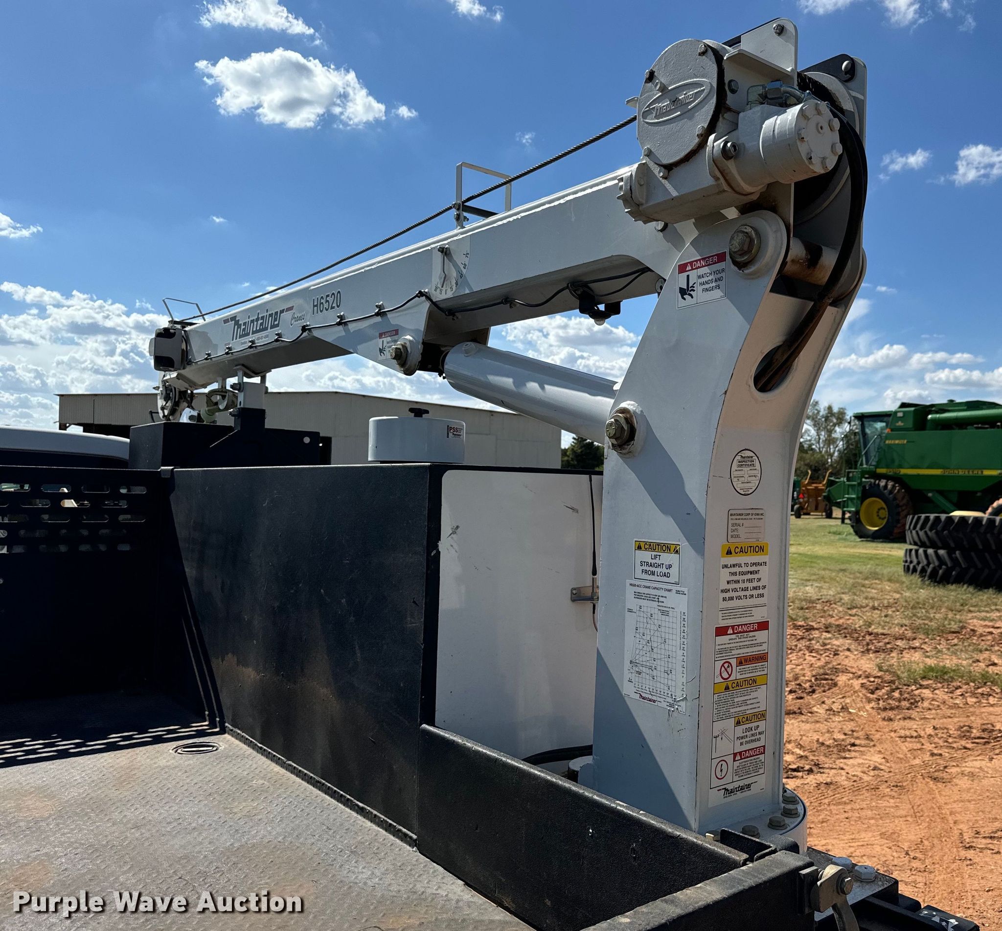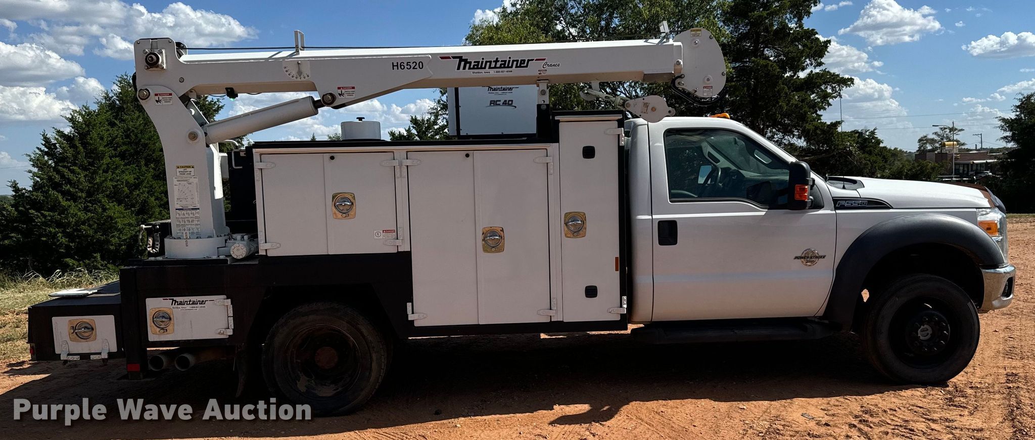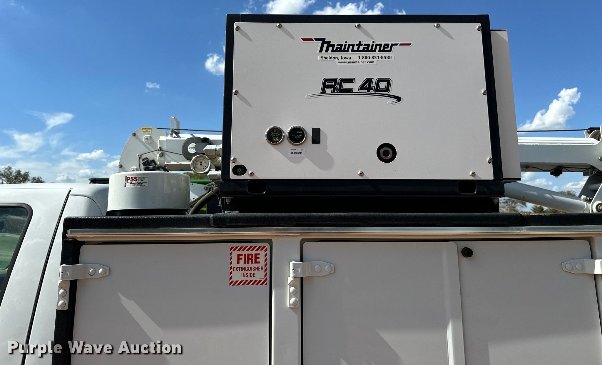 2015 Ford F550 Super Duty XL utility / service truck. Miles: 85,956 on odometer, VIN: 1FDUF5HT3FED43677. Engine Displacement: 6.7L, Cylinders: 8, Fuel type: Diesel. Transmission Automatic. Chassis Four wheel drive, Axles: Single, Suspension: Spring, Brakes: Hydraulic, PTO, GVWR: 19,500 lbs. Interior AC, Heat, Heated mirrors, Power windows, Power locks, Cruise control, Auxiliary controls, Brake controller. Features Bed Maintainer, 13' L x 95" W, Air compressor Maintainer RC40, Hours: 183 on meter, Crane Maintainer H6520, Maximum boom length: 20' Maximum lift capacity: 6,500 lbs.. Tires Size: 225/70R19.5. Kansas title. Title distribution may be delayed up to 14 days from verification of funds. AVE-PLP, Inc. Kingman, KS 67068