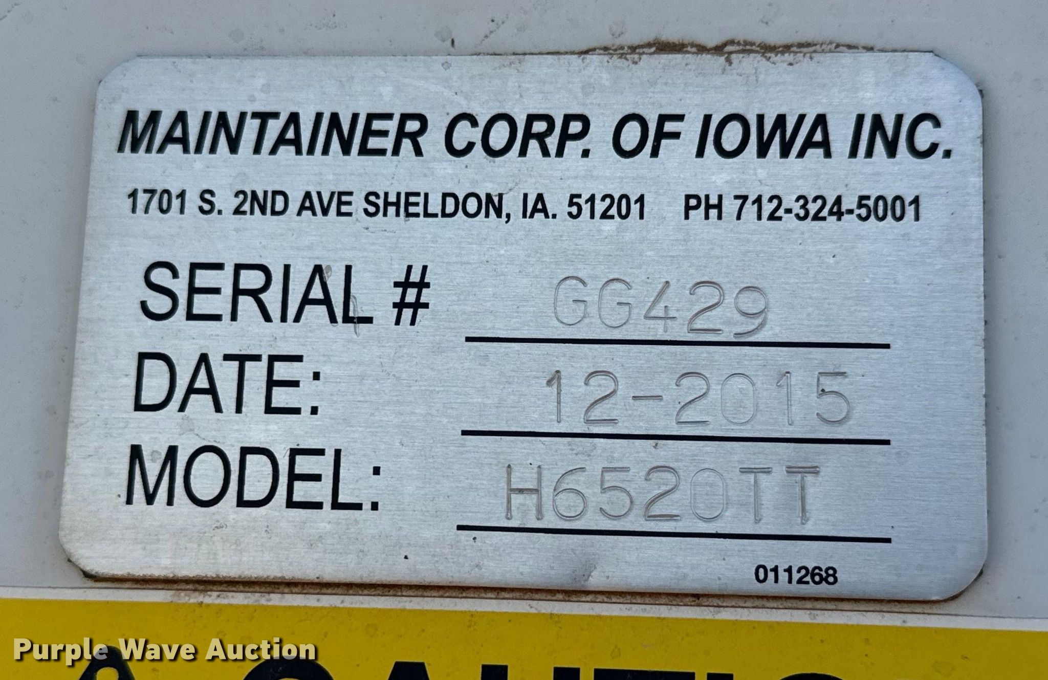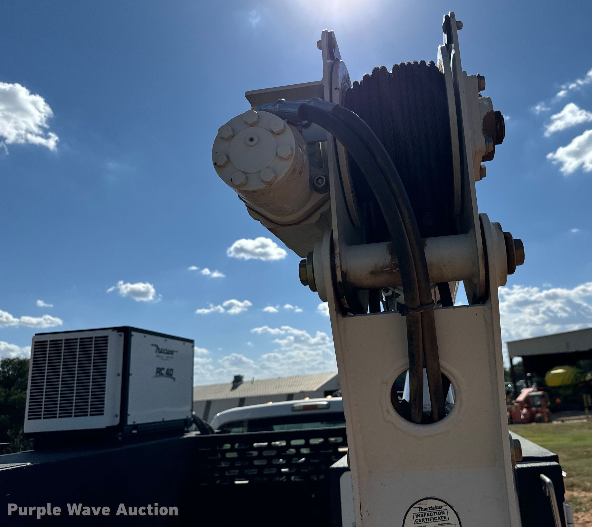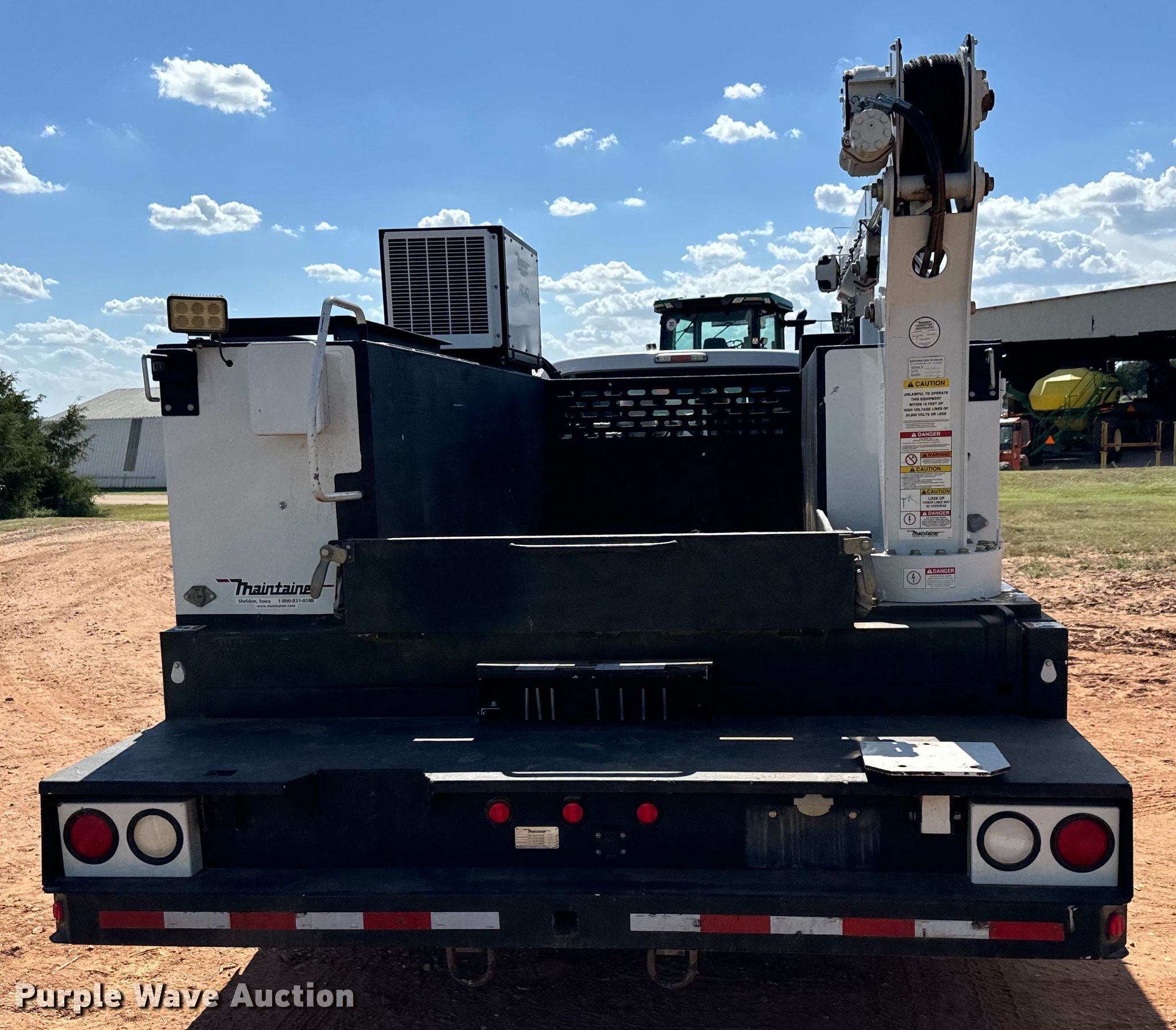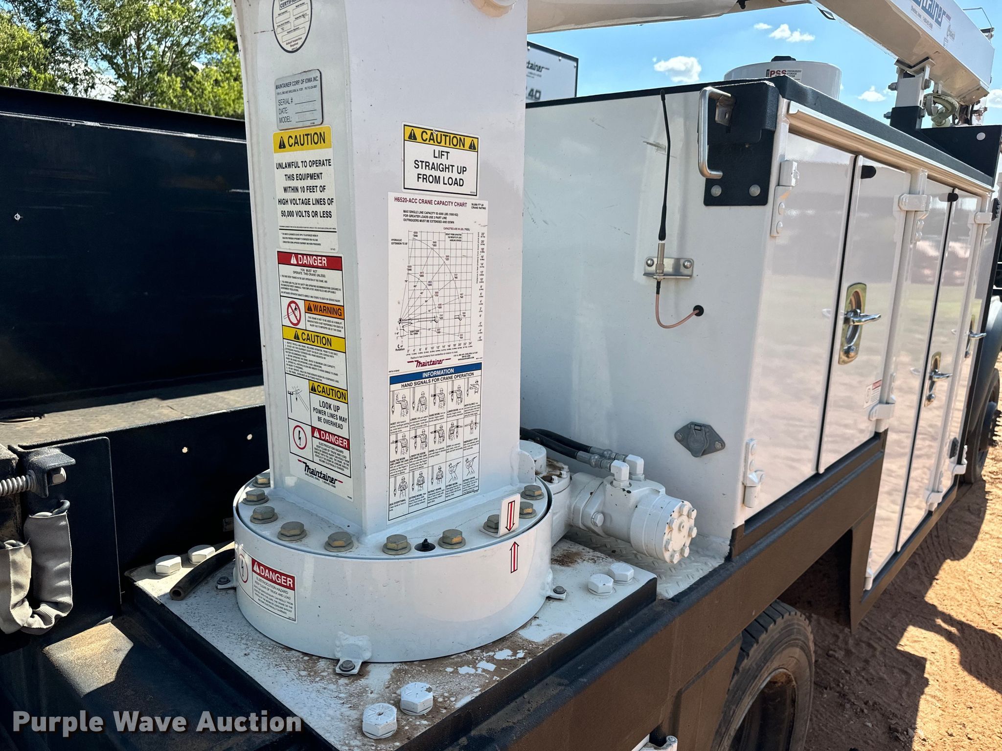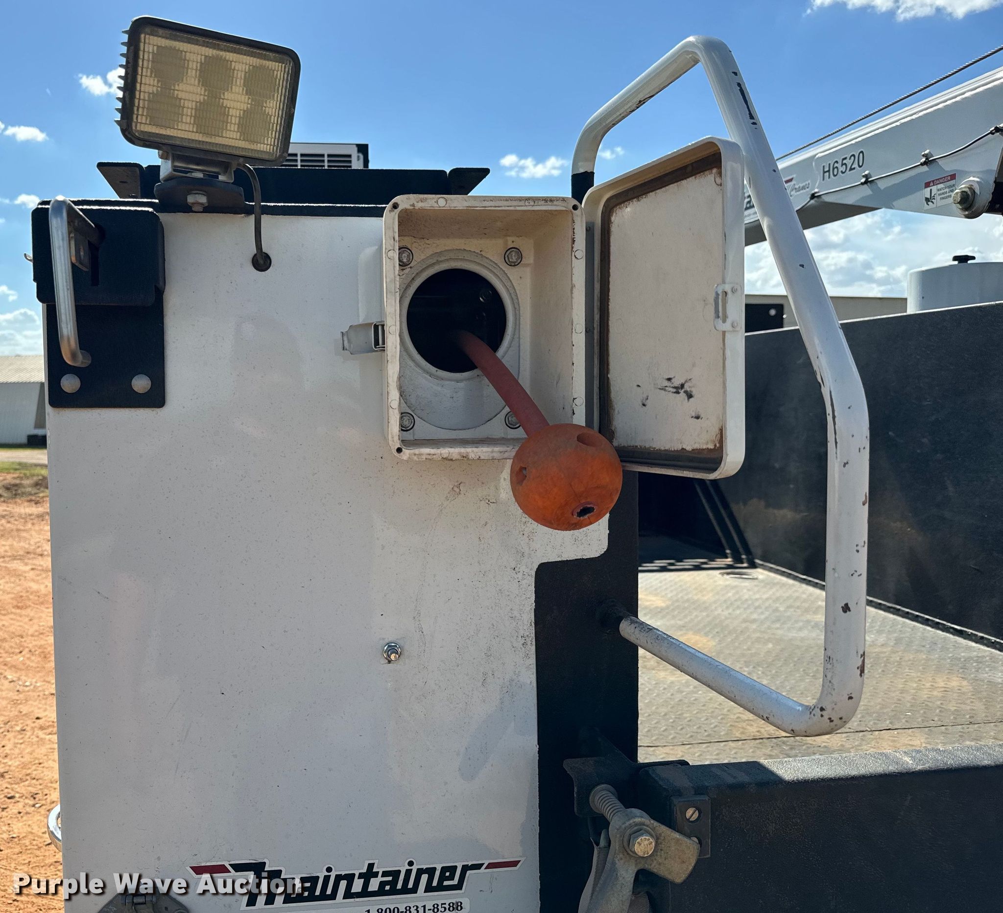 2015 Ford F550 Super Duty XL utility / service truck. Miles: 85,956 on odometer, VIN: 1FDUF5HT3FED43677. Engine Displacement: 6.7L, Cylinders: 8, Fuel type: Diesel. Transmission Automatic. Chassis Four wheel drive, Axles: Single, Suspension: Spring, Brakes: Hydraulic, PTO, GVWR: 19,500 lbs. Interior AC, Heat, Heated mirrors, Power windows, Power locks, Cruise control, Auxiliary controls, Brake controller. Features Bed Maintainer, 13' L x 95" W, Air compressor Maintainer RC40, Hours: 183 on meter, Crane Maintainer H6520, Maximum boom length: 20' Maximum lift capacity: 6,500 lbs.. Tires Size: 225/70R19.5. Kansas title. Title distribution may be delayed up to 14 days from verification of funds. AVE-PLP, Inc. Kingman, KS 67068