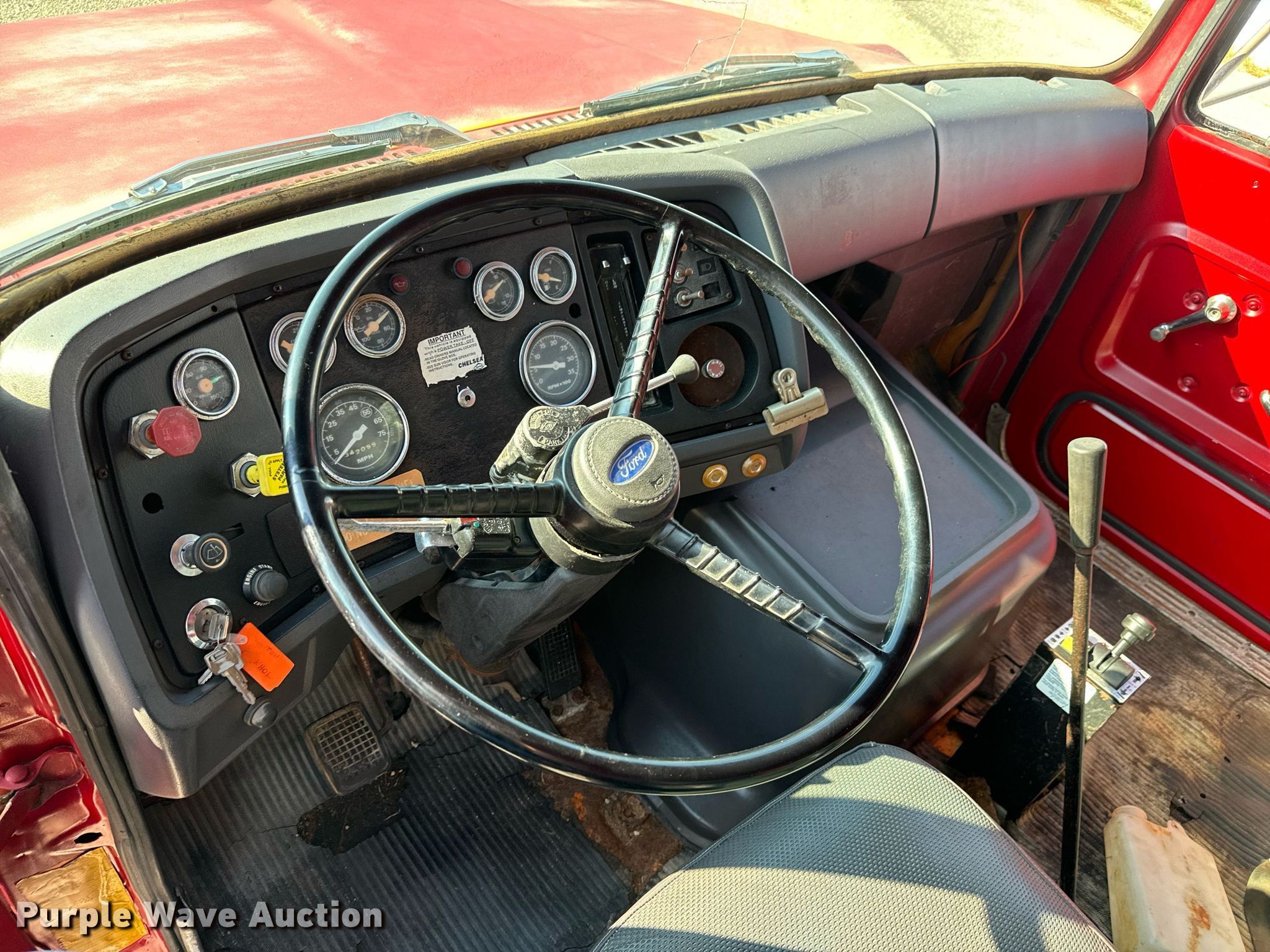 Purple Wave is selling a used Construction Dump Truck in Kansas. This item is a 1984 Ford 9000 dump truck with the following: Miles: 342,099 on odometer, VIN: 1FDXR90W8EVA09743