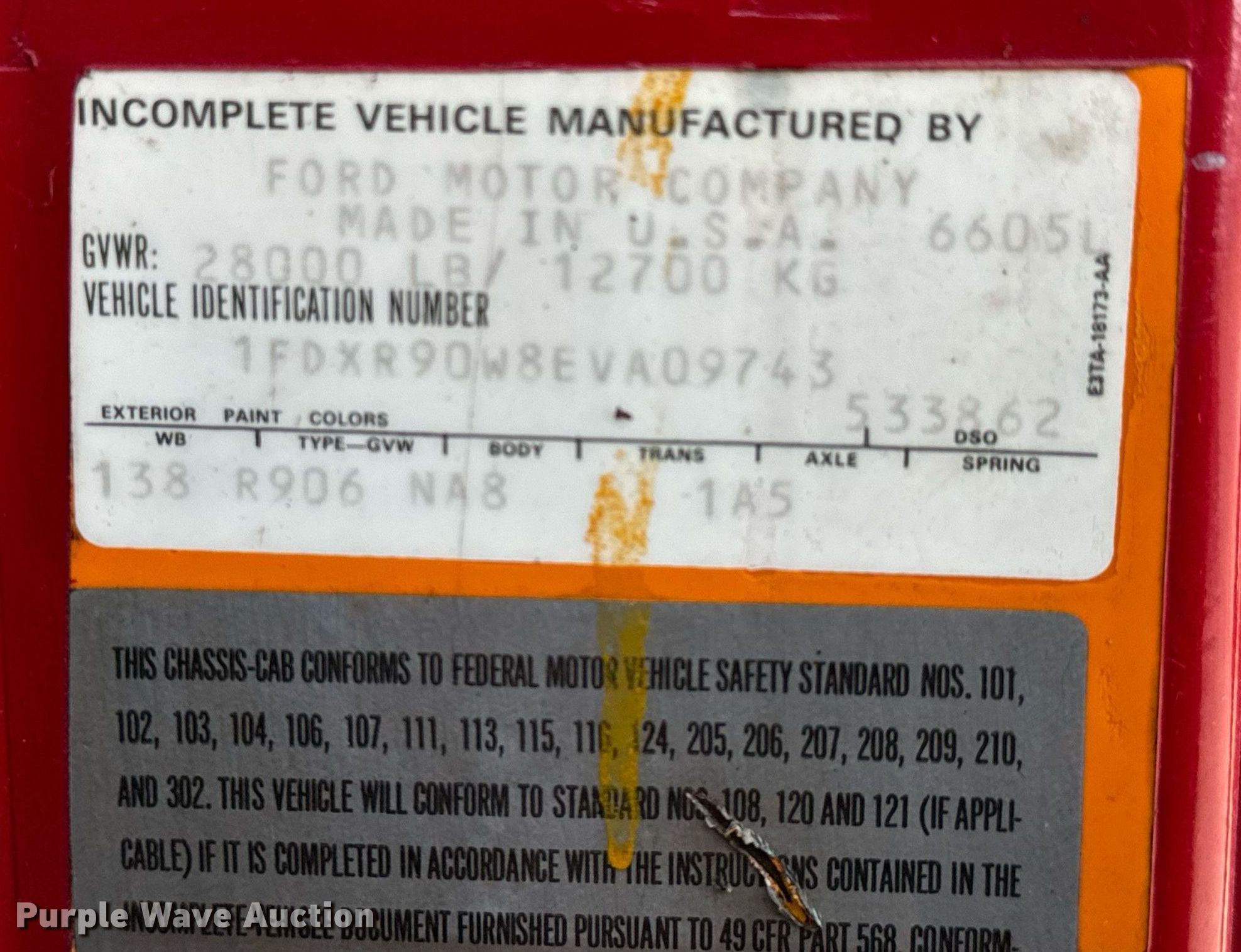 - VIN: 1FDXR90W8EVA09743