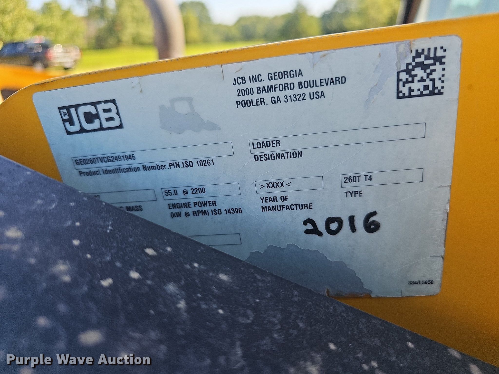 2016 JCB 260T tracked skid steer loader. Hours: 1,362 on meter, Serial: GE0260TVCG2491946. Engine Cylinders: 4, Fuel type: Diesel. Transmission Hydrostatic. Operators station Enclosed cab, AC, Heat, Bucket control: Hand. Features Auxiliary hydraulics, Quick coupler: Manual, Bucket Width: 84", Cutting edge: Bolt-on. Tracks Width: 18". 2362 Ance Creek Road. Reeds Spring, MO 65737