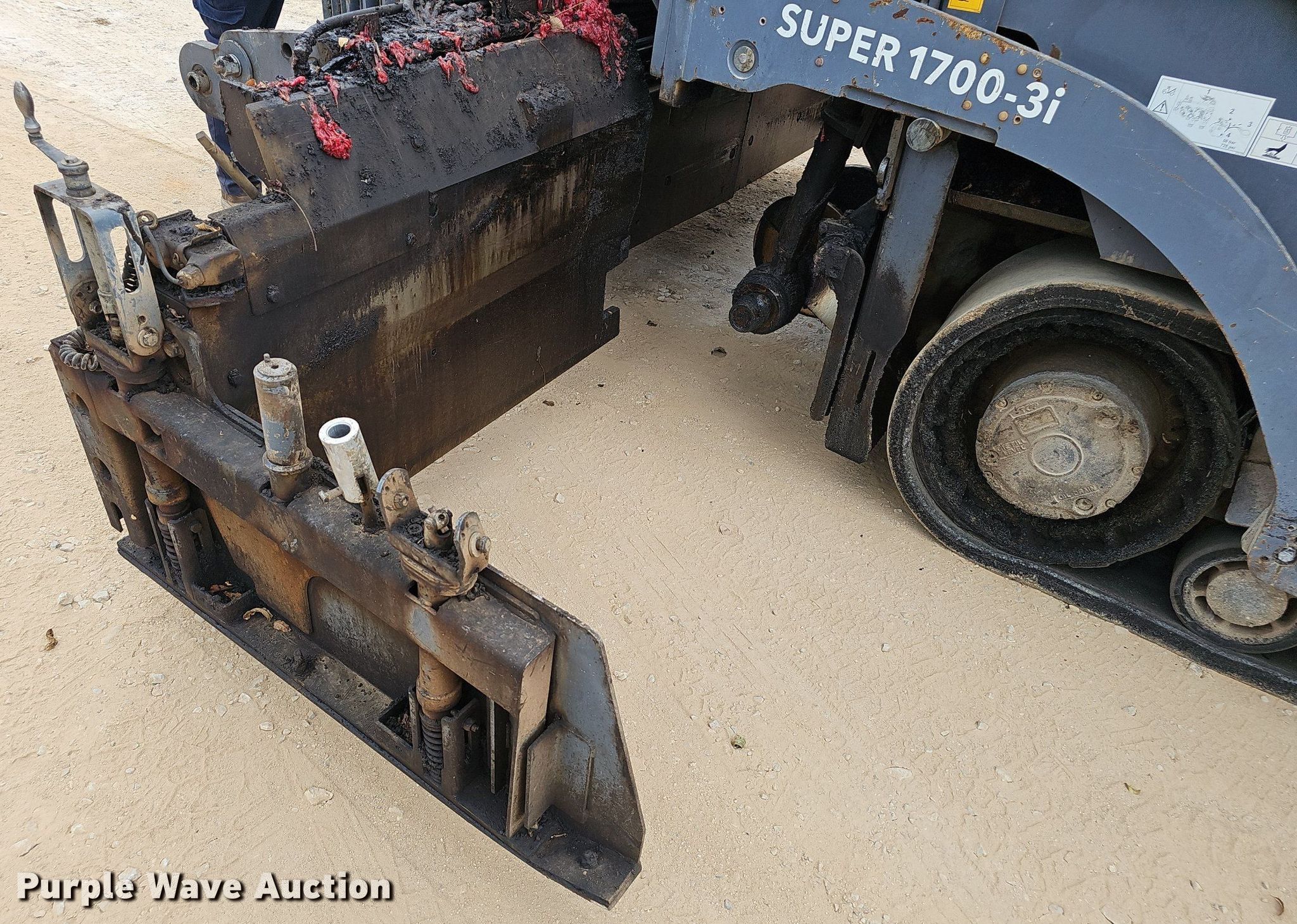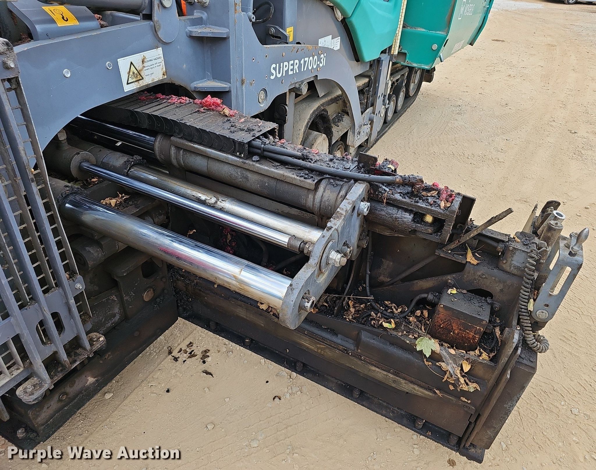 2017 Vogele Super 1700-3i paver. Hours: 4,339 on meter, Serial: 19820075. Engine Cylinders: 4, Fuel type: Diesel. Transmission Hydrostatic. Features Screed Vogele 19AB, Serial: 19AB0179, Paving width: 8' to 15', Extensions Quantity: 2, Screed heater: Electric, Material conveyor Width: 48", Ground level remote, Grade and slope controls. Tracks Width: 14", Rubber. S&K Dirtworks. Rogers, AR 72758