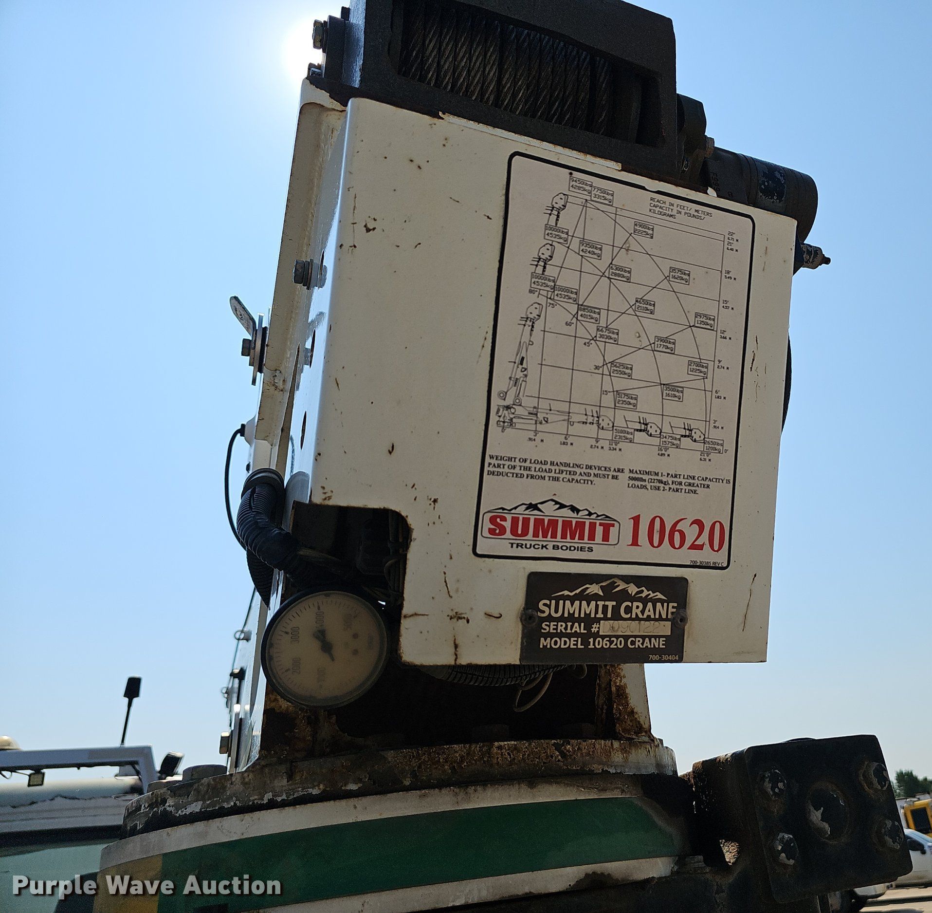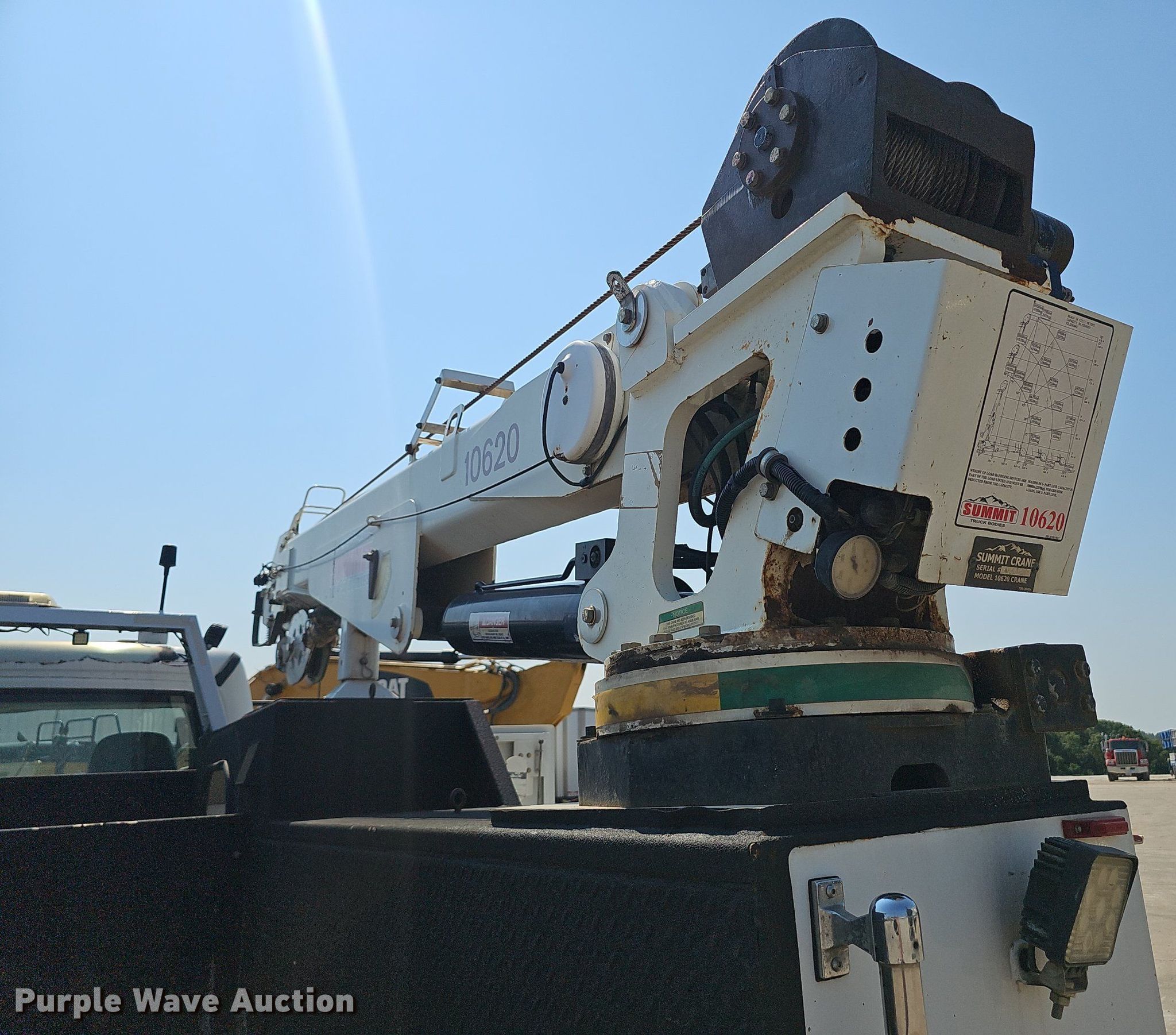 2007 Freightliner Business Class M2 utility / service truck. Miles: 292,903 on odometer, VIN: 1FVACWDC47HX87487, Unit #: 5-019. Engine Caterpillar C7 Acert, Displacement: 7.2L, Cylinders: 6, Fuel type: Diesel. Transmission Manual, Speed: 6. Chassis Axles: Single, Suspension: Spring, Brakes: Air, PTO, Wet kit. Interior AC, Heat, Heated mirrors, Cruise control. Features Bed 11' L x 98" W, Air compressor Ingersoll-Rand VHP40RMH, Crane Summit 10620, Maximum boom length: 22' Maximum lift capacity: 9,450 lbs.. Tires Size: 11R22.5. Notes Shifter knob replaced. Missouri title. Title distribution may be delayed up to 30 days from verification of funds. Emery Sapp & Sons, Inc.. Springfield, MO 65803
