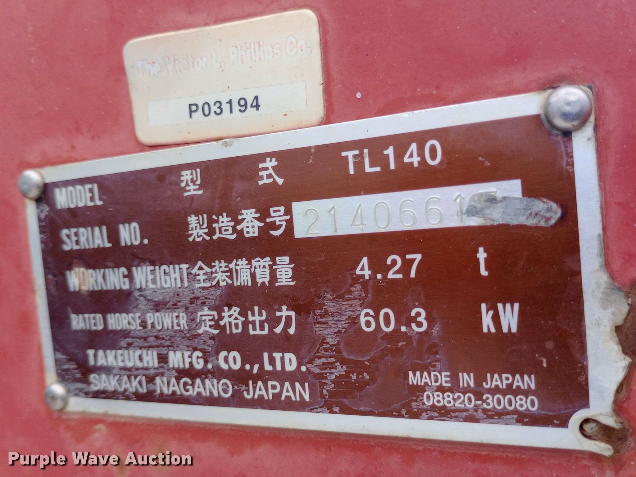 Purple Wave is selling a used Tracked Skid Steer Loader in Kansas. This item is a Takeuchi TL140 tracked skid steer loader with the following: Hours: 4,539 on meter