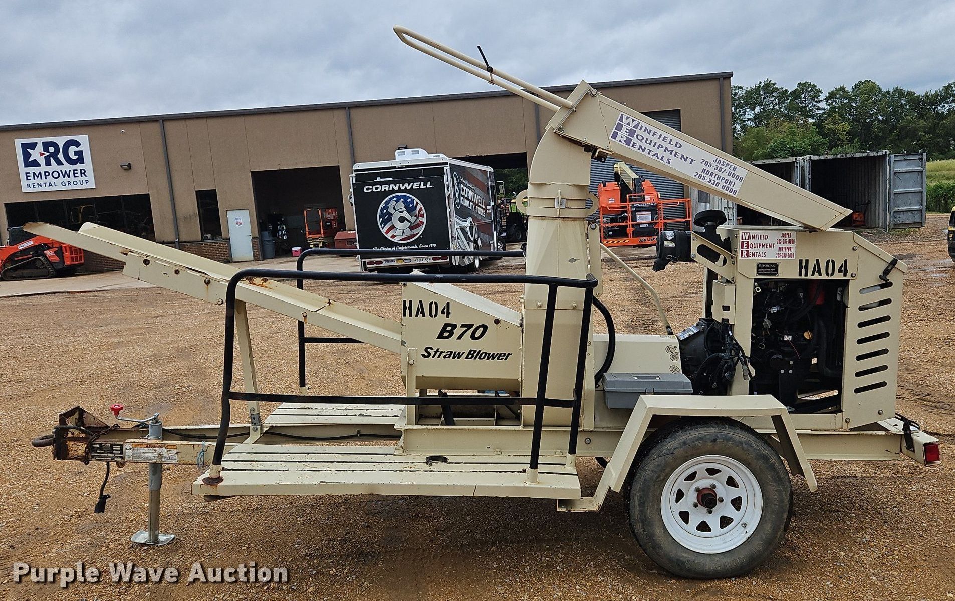 2017 FINN B70T straw blower. Hours: 206 on meter, VIN: 1F9BS1415HF135434. Engine Yanmar 3TNV88C, Fuel type: Diesel. Features Blower opening: 12" L x 19" W. Trailer 14' L x 61" W, Suspension: Spring, Axles: Single, Hitch: pintle, Tire size: 205/75R15, GVWR: 3,000 lbs. Notes Non-operational engine, blown , Non-operational unit. Empower Rental Group. Northport, AL 35476