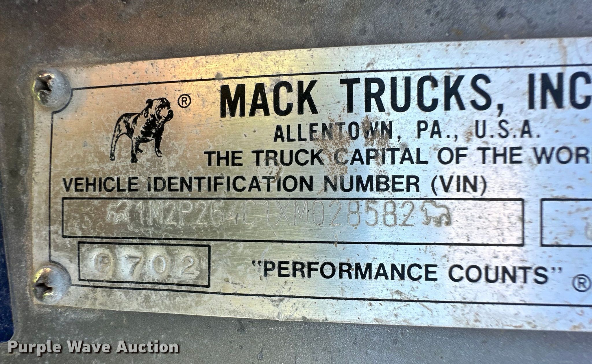 1999 Mack RD690S ready mix truck. Miles: 228,919 on odometer, Hours: 21,089 on meter, VIN: 1M2P264C1XM028582. Engine Mack, Displacement: 12.0L, Cylinders: 6, Fuel type: Diesel. Transmission Eaton Fuller 9LL, Manual, Speed: 11. Chassis Axles: 4, Tag axle Steerable, Suspension: Spring, Brakes: Air, PTO. Interior AC, Heat. Features Mixer Capacity: 11 cu.yd., Discharge: Rear, In-cab controls, Rear drum controls, Water tank capacity: 125 gallons, Chute Extensions: 3, Chute type: Steel.. Tires Size: 425/65R22.5. Notes Non-operational unit. Iowa title. Title distribution may be delayed up to 14 days from verification of funds. Croell Redi-Mix. Woodward, OK 73801