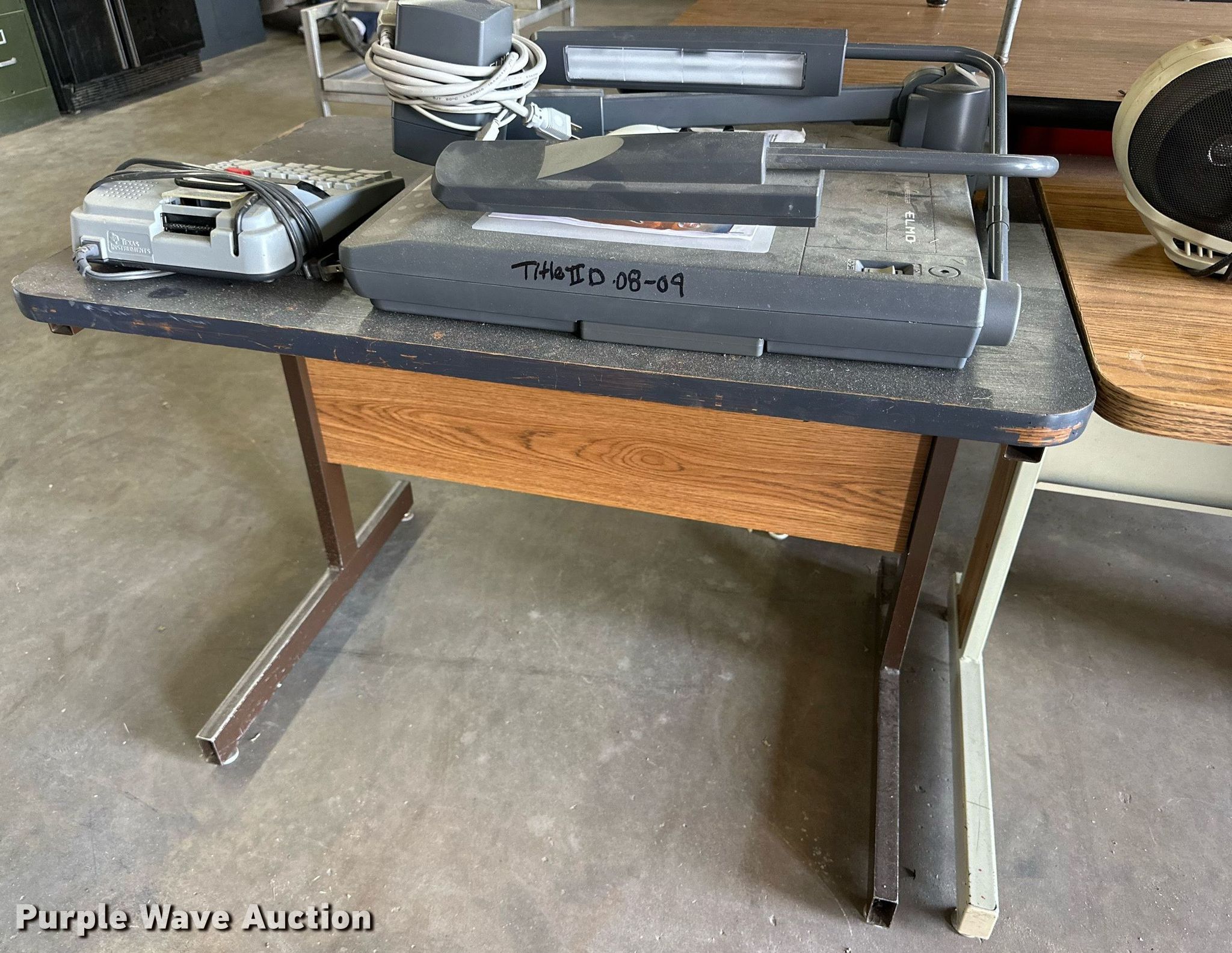 Furniture. (3) desks, Elmo stereo, Adding machine. Mangum Public schools. Mangum, OK 73554