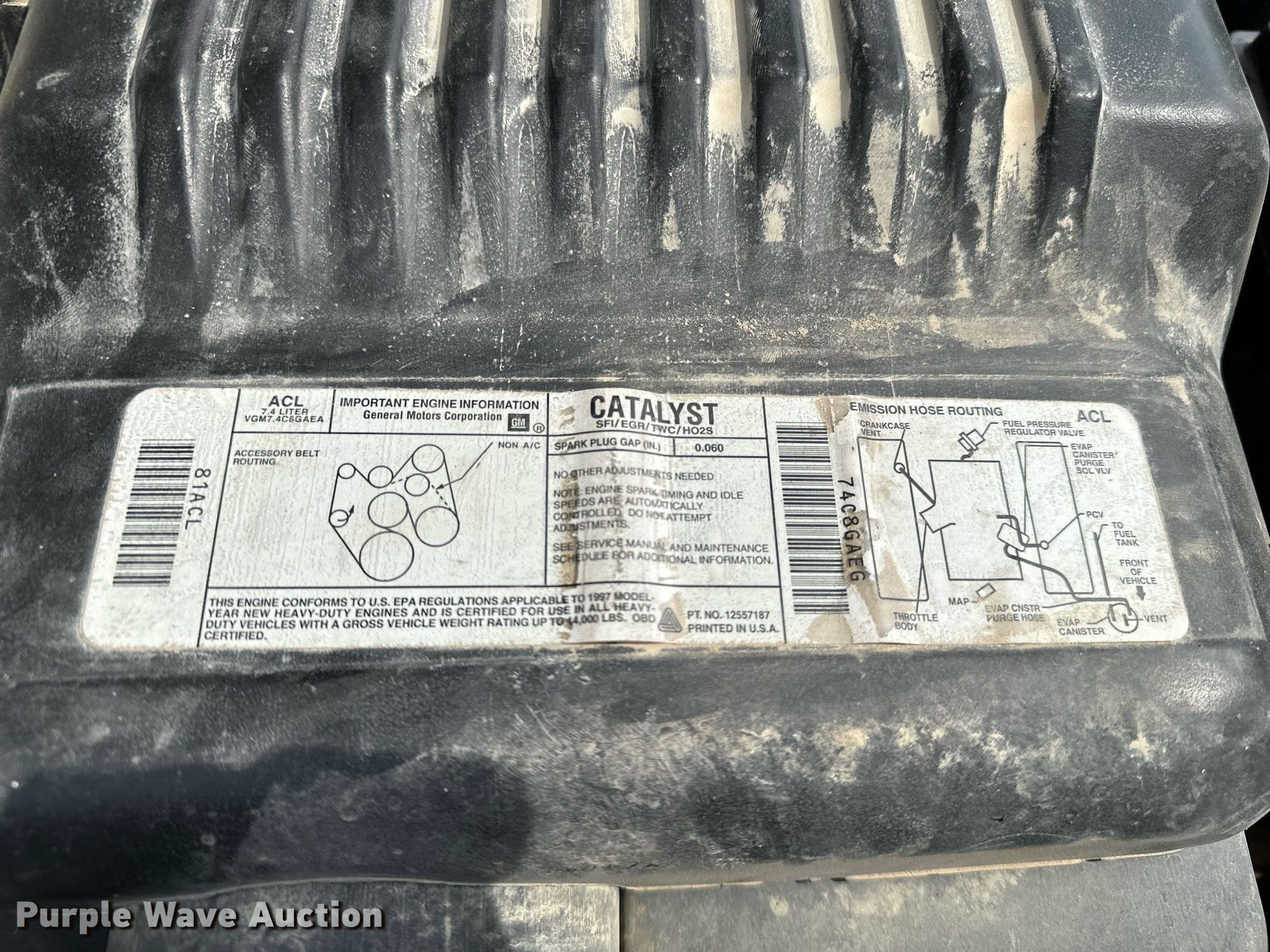 1997 Chevrolet Suburban 2500 SUV. Miles: 124,485 on odometer, VIN: 1GNGK26J6VJ362279. Engine Displacement: 7.4L V8 OHV, Cylinders: 8, Fuel type: Gas. Transmission Automatic, Four wheel drive. Interior AC, Heat, Power locks, Cruise control. Tires Size: LT245/75R16. Notes Windshield chipped or cracked, Hail damage, Possible brake issue, Fuel gauge issues, broken. Kansas title. KSU Veterinary Health Center. Manhattan, KS 66502